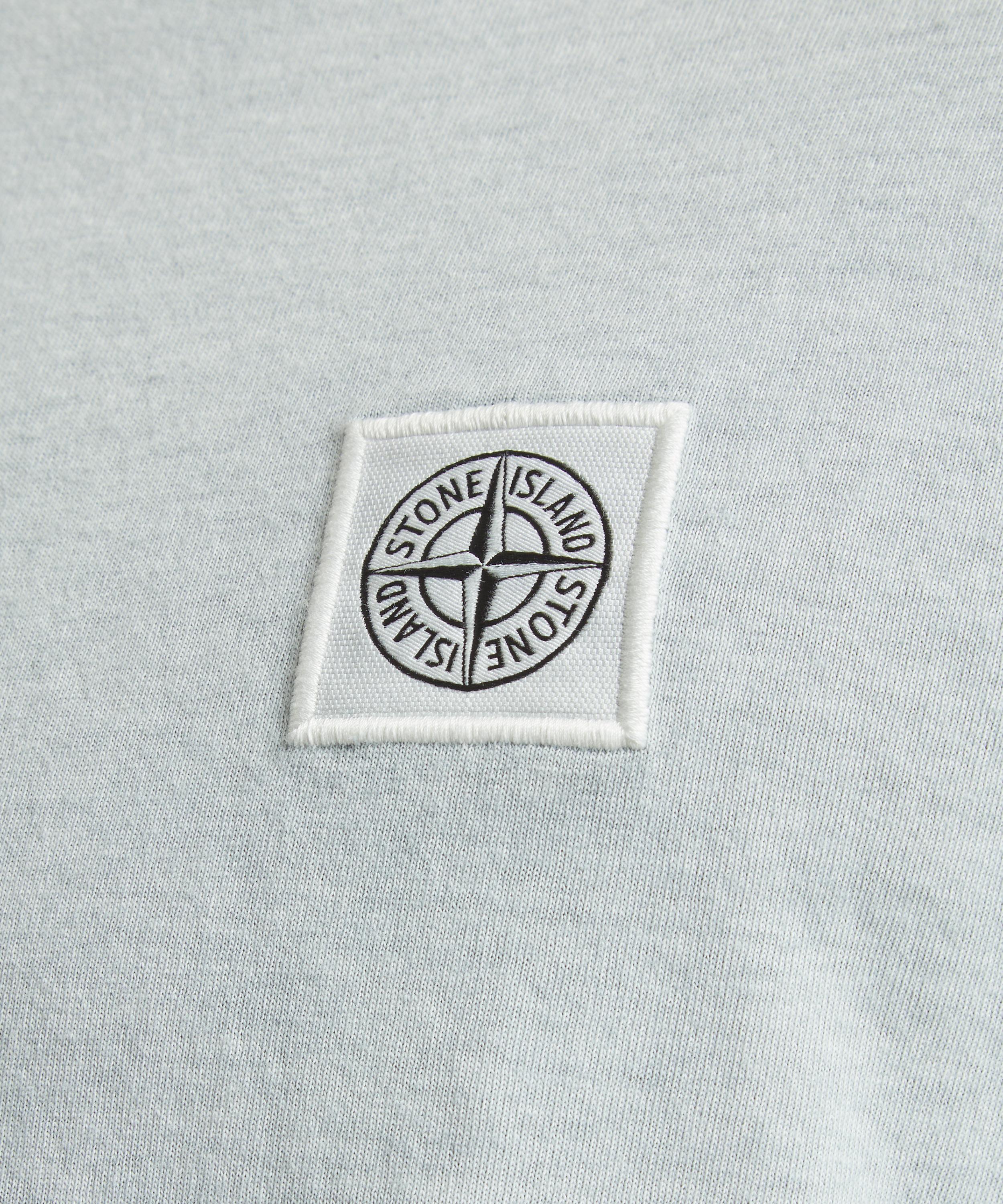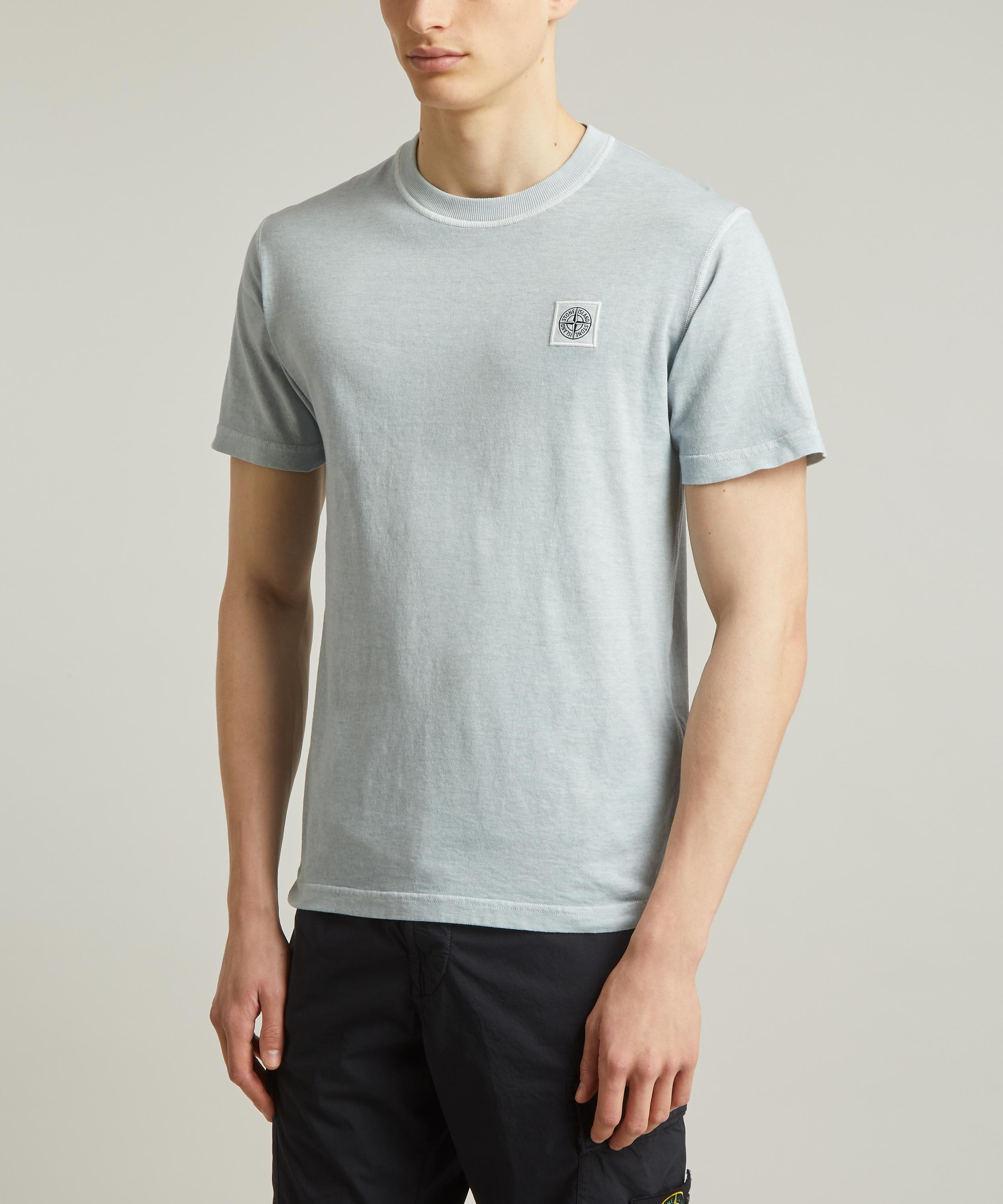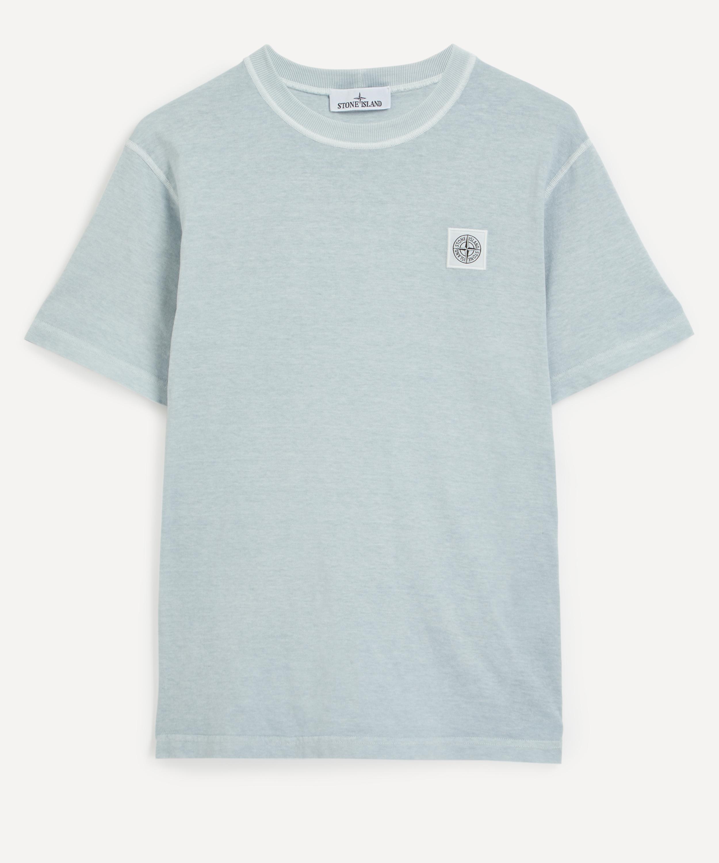 Crafted from soft cotton jersey, this pale blue t-shirt has been treated with the ‘Fissato’ effect, a water-soluble treatment process and garment dyeing technique, which is favoured for its three-dimensional appearance. Cut to a classic slim fit with short sleeves and a ribbed crew neckline, it’s finished with a signature Stone Island Compass patch logo on the chest.