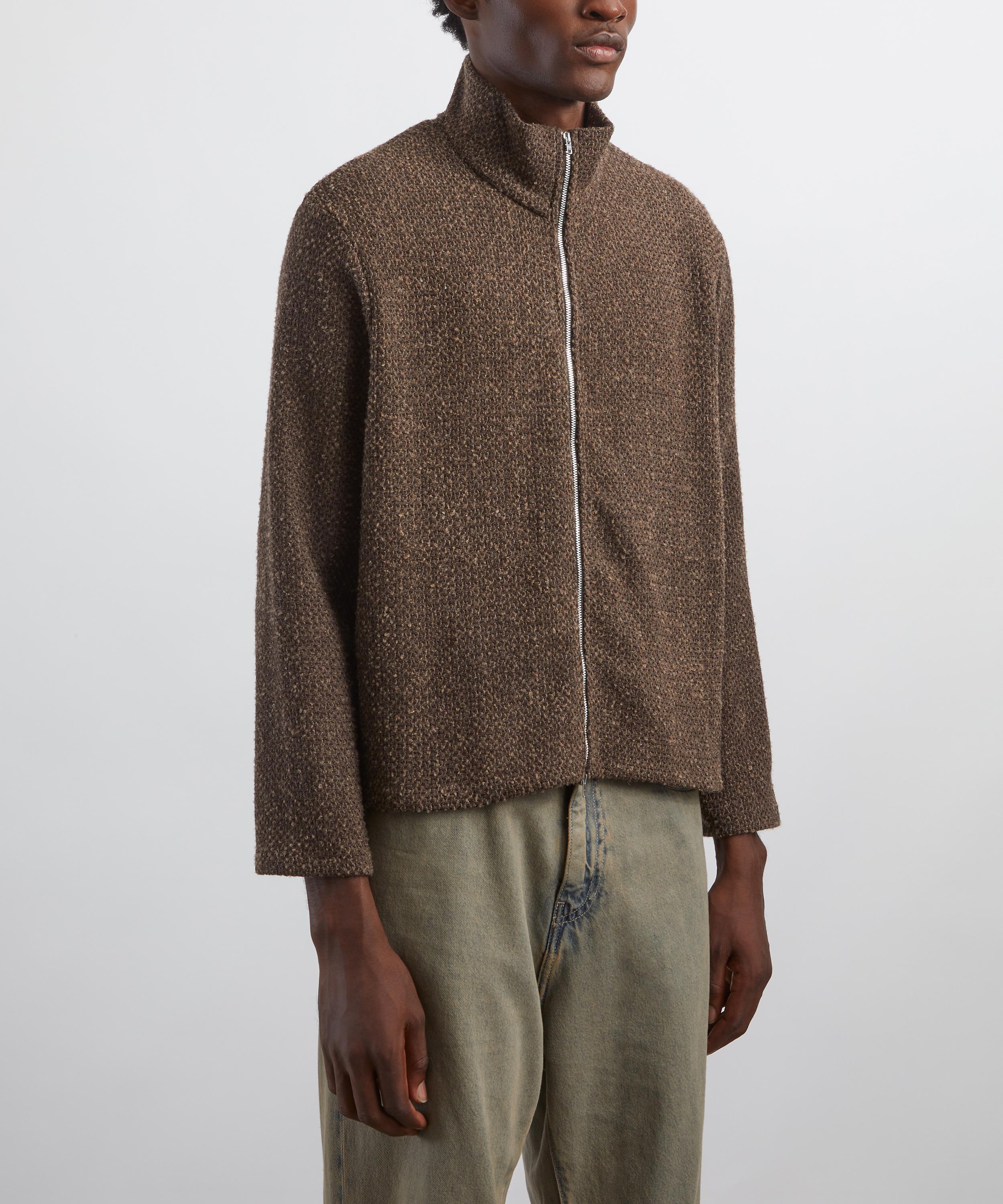Crafted from a textured Italian fabric blended with virgin wool, the Shrunken Polo features a short, boxy silhouette with a funnel neck collar and a two-way zip fastening - making it an ideal layering piece for year-round wear.
