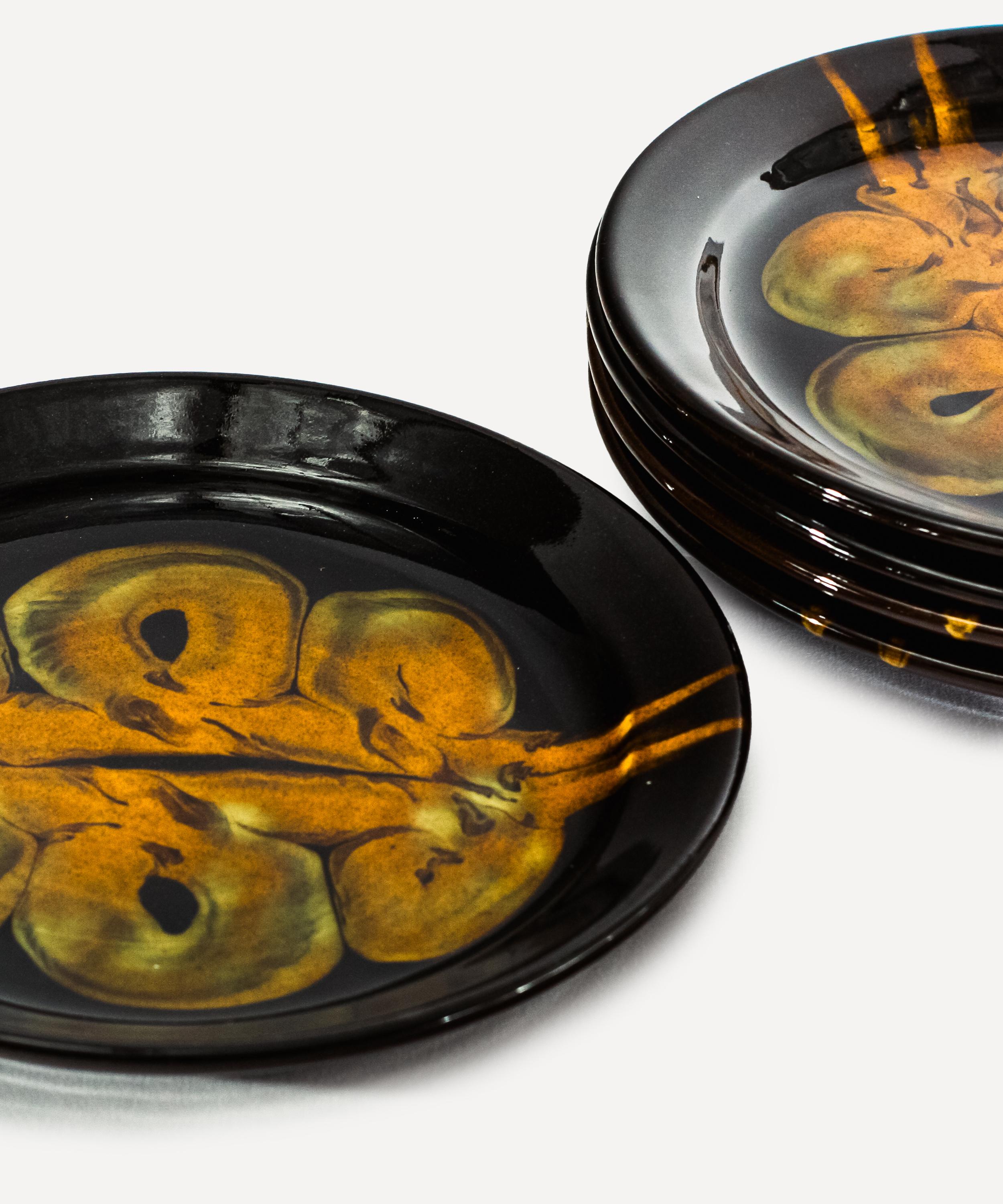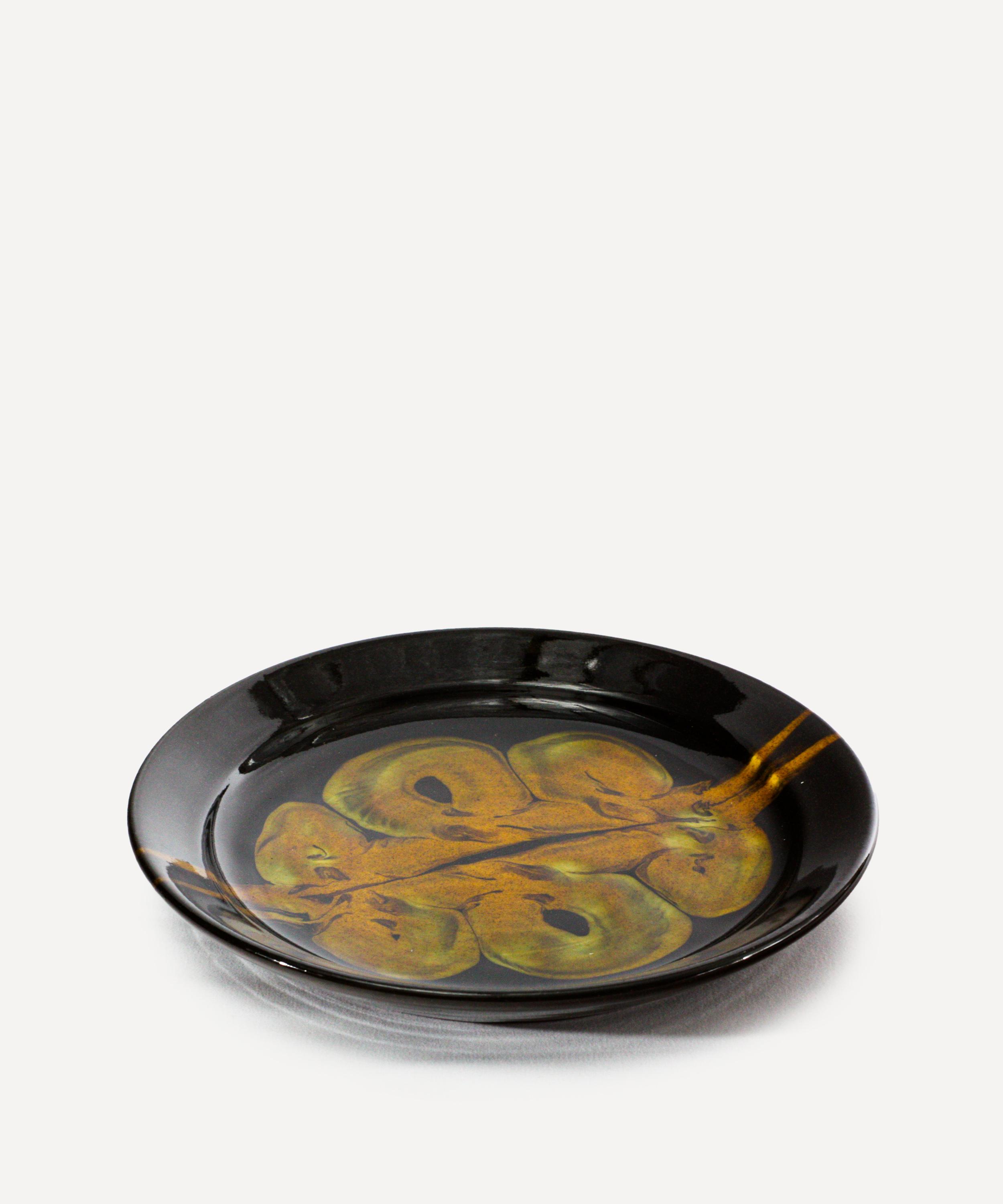 With inspiration spanning medieval pottery, 18th century English slipware and contemporary ceramics, each piece is beautifully handcrafted by Parry in his home studio in South East Wales. Using a red earthenware clay, the plate is hand thrown on a potters wheel and decorated using slips, before being glazed and fired in an electric kiln. The throwing and slipping process allows movement and spontaneity to translate into each design, for an idiosyncratic addition to your kitchen tablescape.