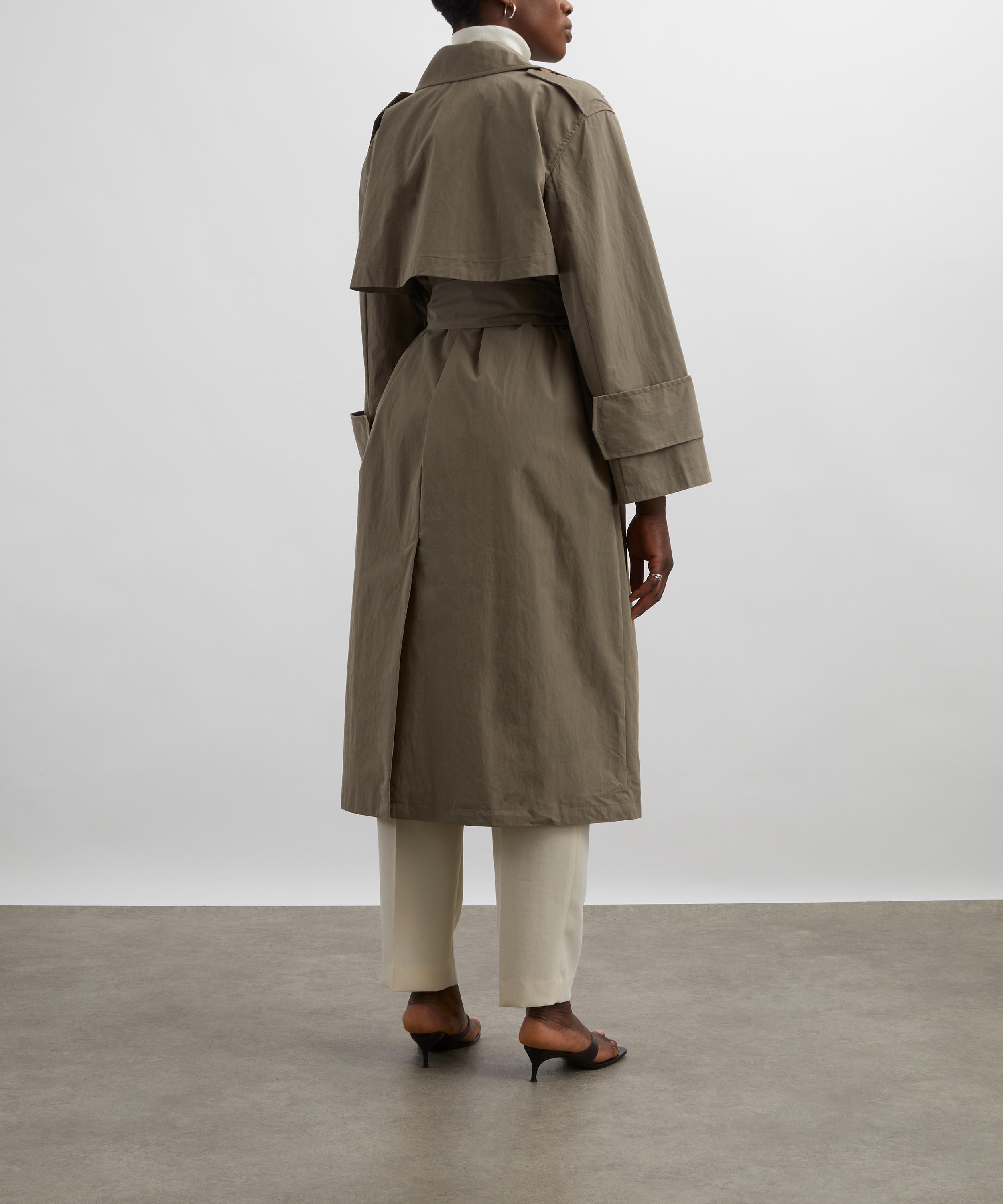 Cut from a mud-hued cotton blend, this classic trench coat features double-breasted closure, full-length sleeves, and is complete with discrete buttoning to the inside for a tailored fit. Perfect for transitional dressing, this coat is sure to become your outerwear go-to this season.Composition & Care