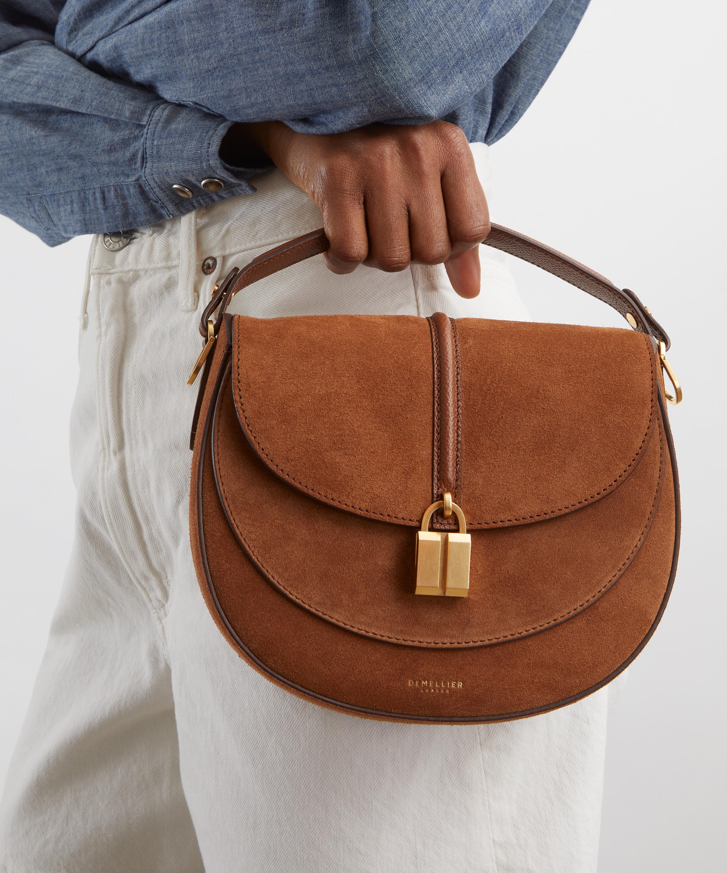 Crafted with integrity from velvety suede by skilful artisans, it’s defined by a softly curved saddle silhouette accentuated with a bombe leather trim and a brushed gold-plated magnetic padlock closure. Inside, it features a practical front flap and a main compartment, including an interior slip pocket for valuables. Complete with a detachable top handle and an adjustable strap, it can be styled over the shoulder, carried by hand or worn cross-body.