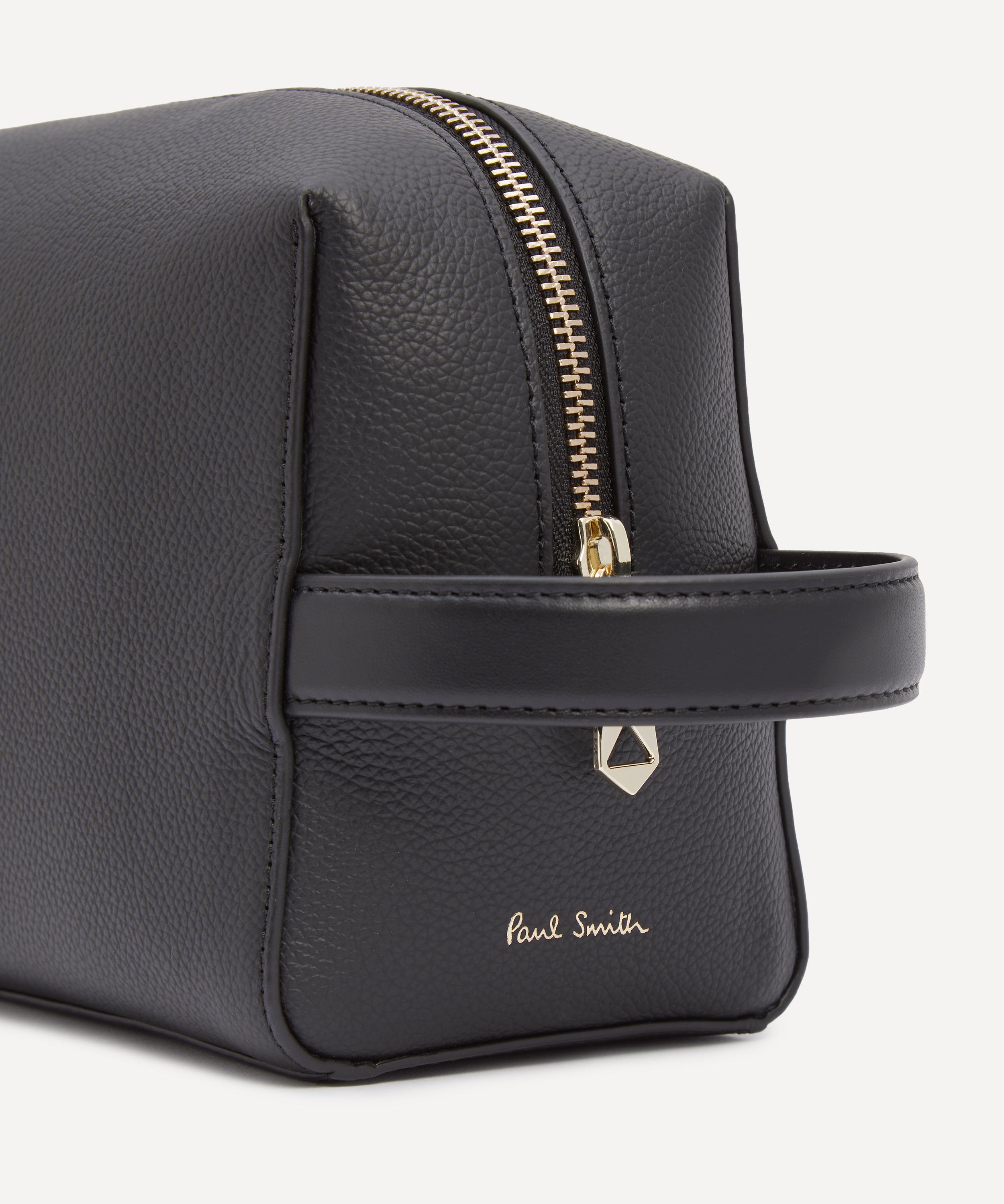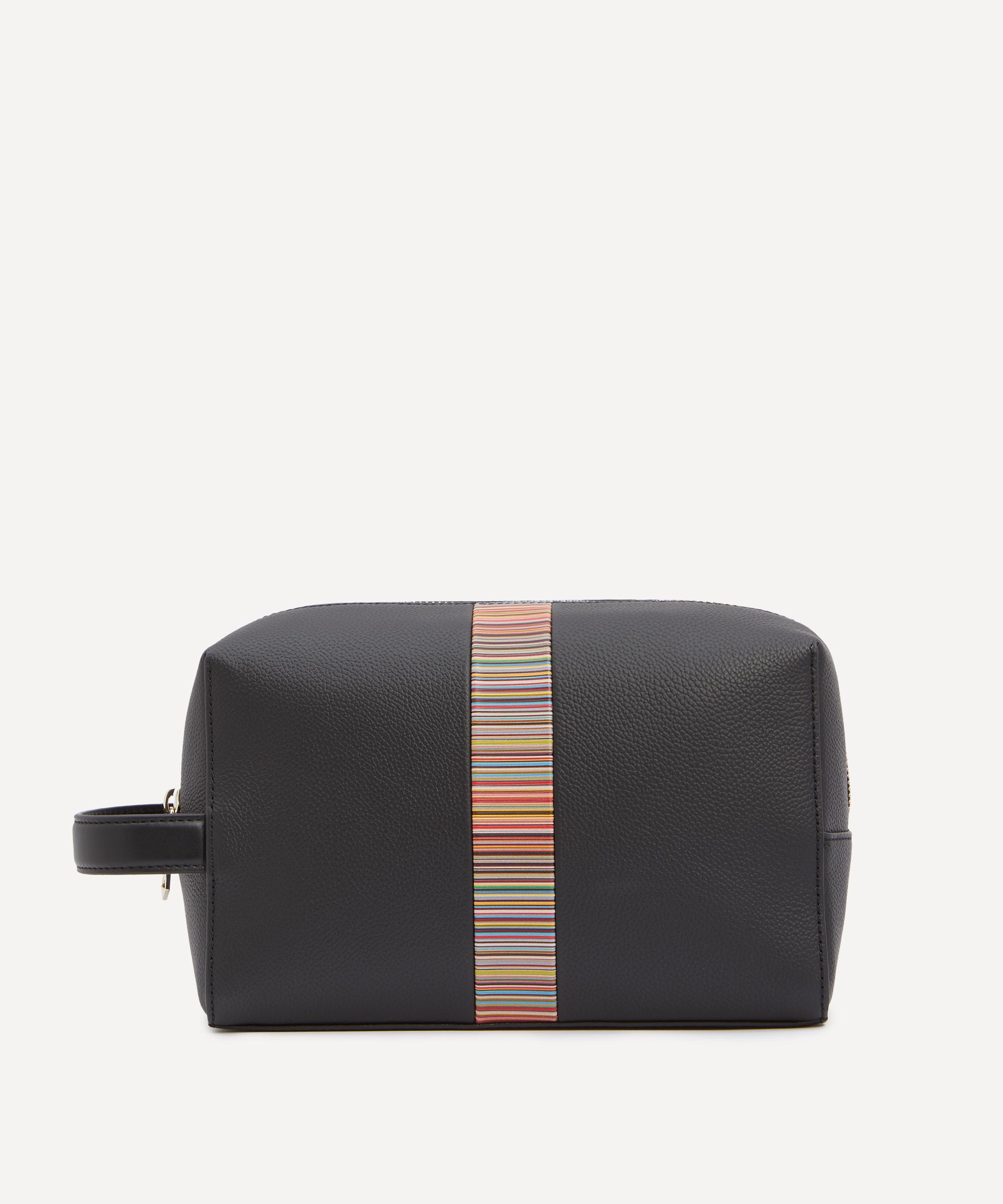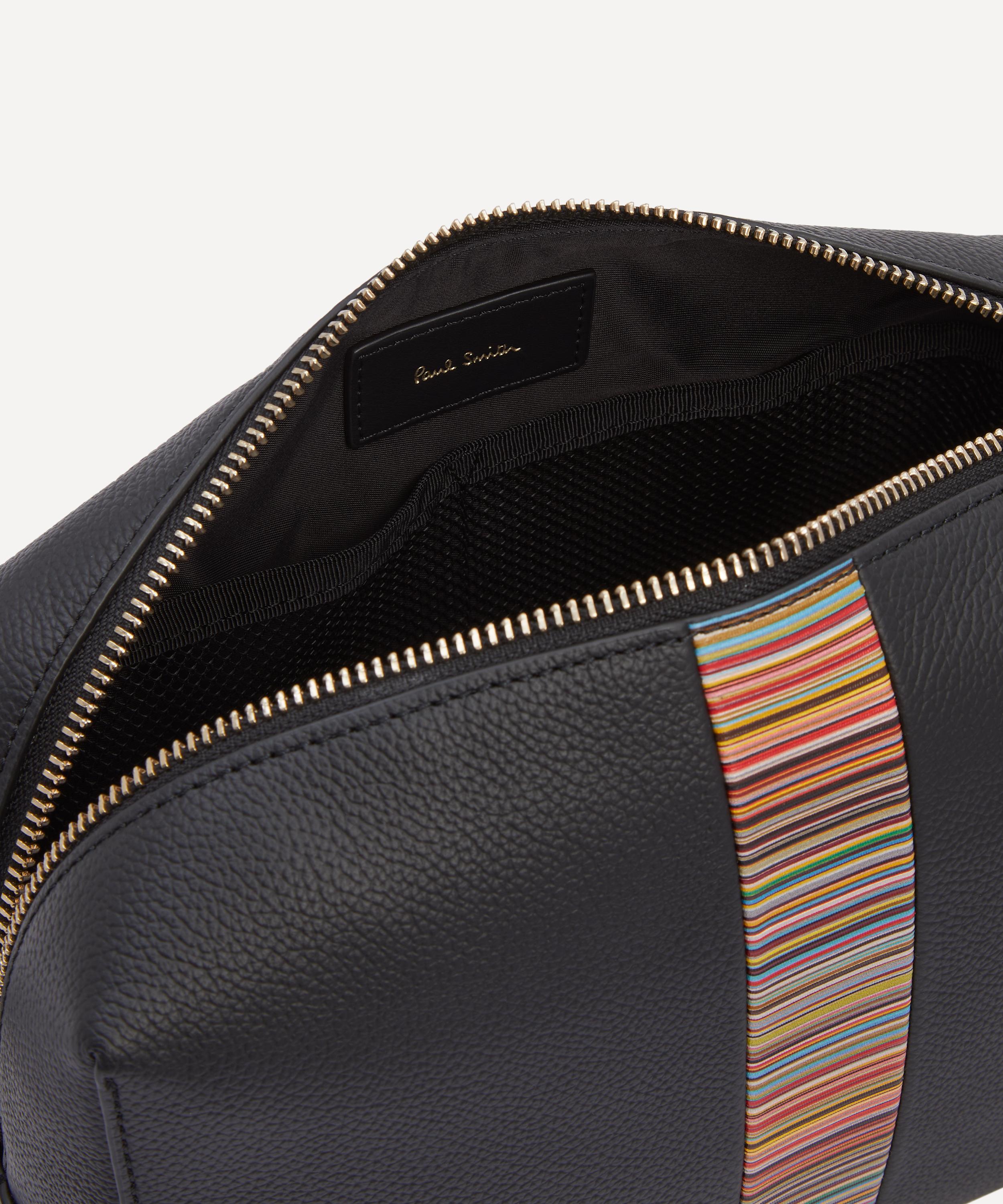 Incorporate quintessential British style into your everyday with this premium leather wash bag from Paul Smith - perfectly sized to house all your weekend essentials. Made from grained black leather, it features a stitched Signature Stripe insert for an added touch of flair.