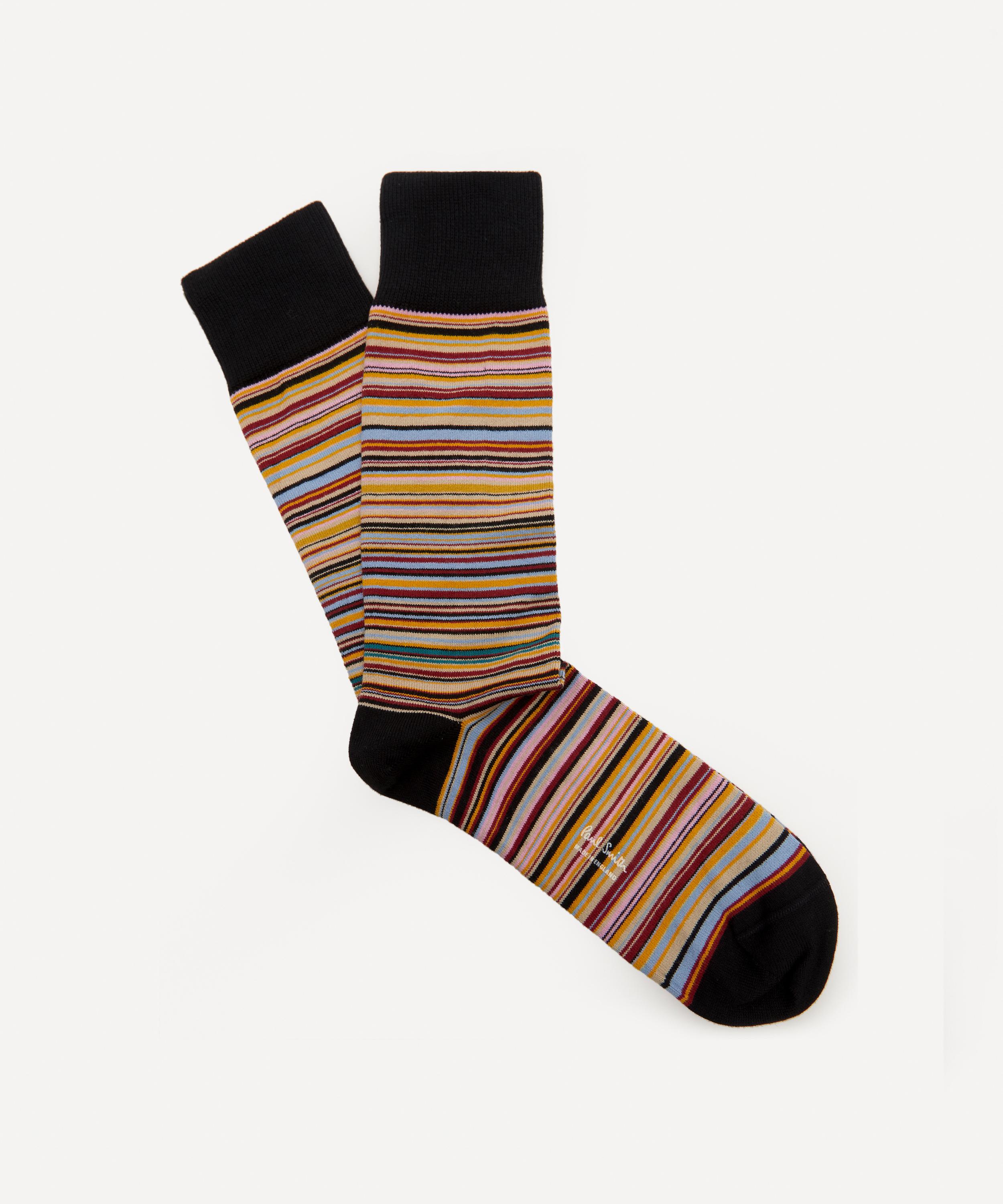 Made in England from a soft cotton-blend, these socks feature a colourful stripe design typical of the brand’s whimsical perspective. Complete with ribbed cuffs and presented in a black gift-box, they will add an upbeat finish to everyday looks.