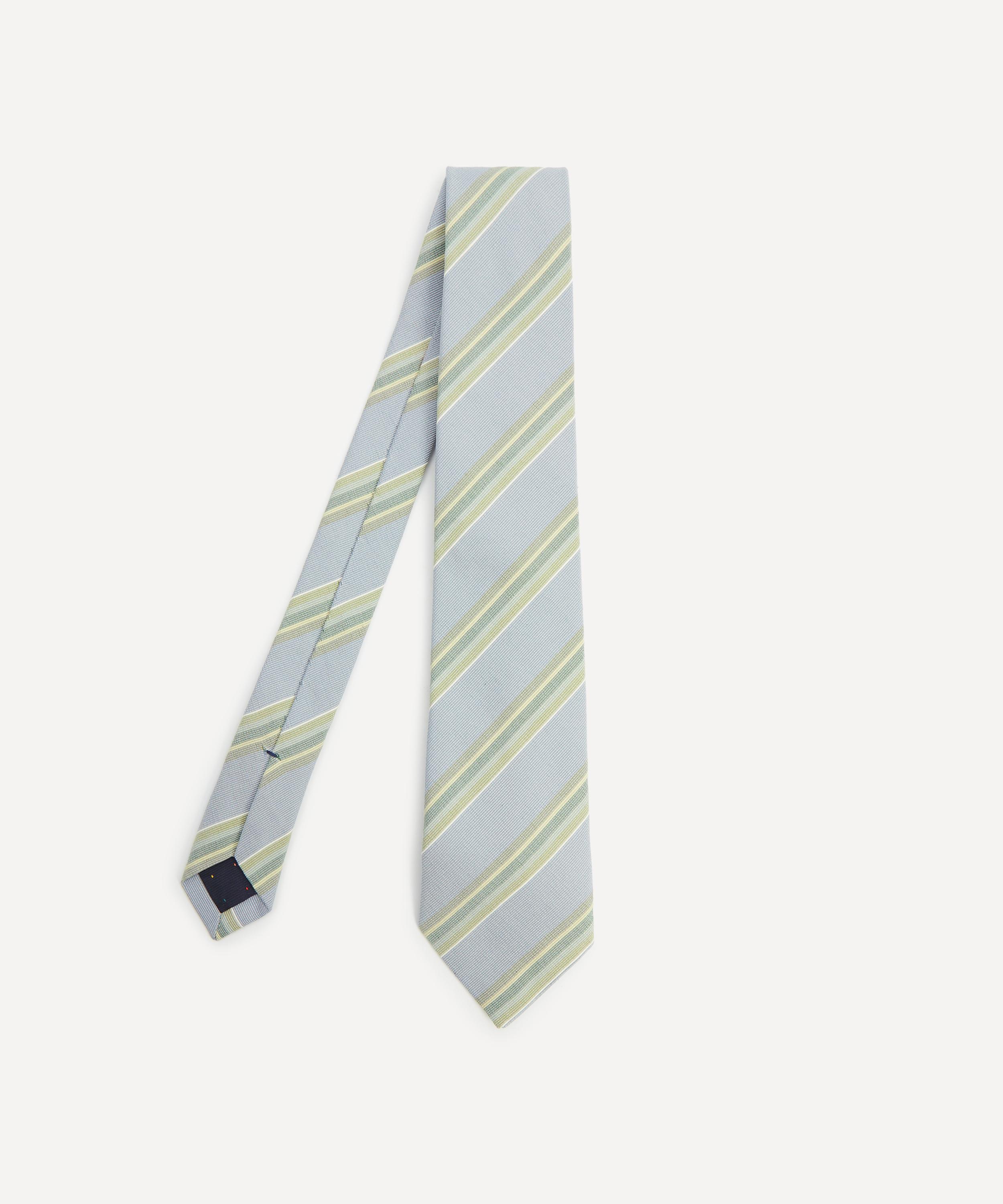 Crafted in Italy from premium silk, this classic tie is characterised by its striped print in a lime-green and light blue colourway, and comes complete with contrast lining and an Artist Stripe tie loop for a statement look.