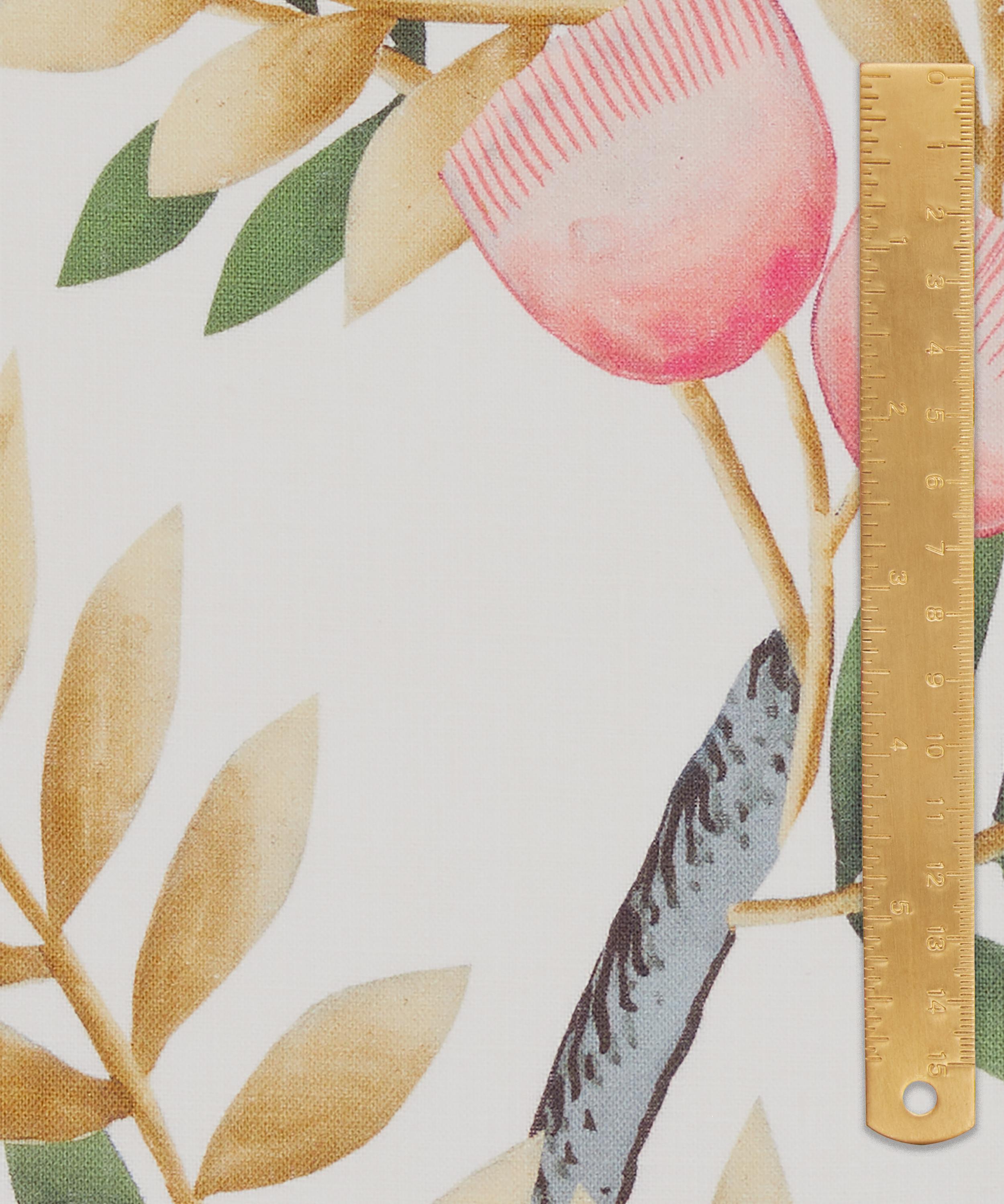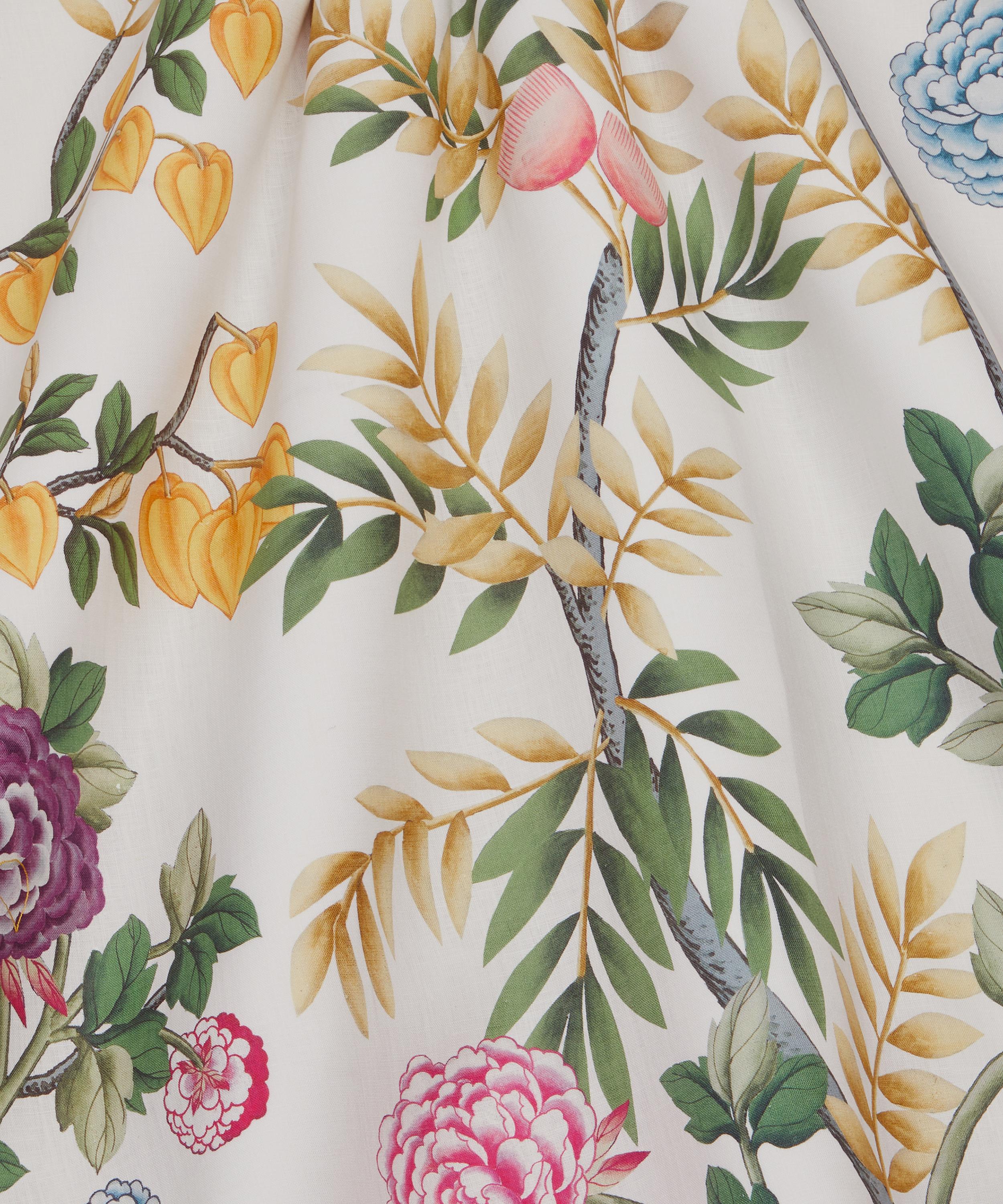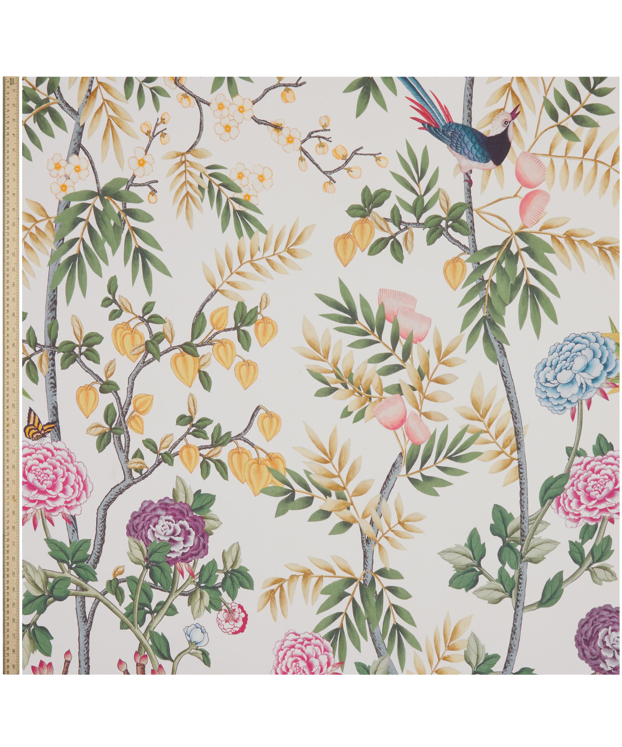 For this print, experts in traditional Chinese silk painting techniques were commissioned to create an artwork using metallic silk paper. Reworked into a scenic panel by the Liberty Design Studio, Silk Tree features a joyful canopy of trees and bamboo branches, decorated with birds, butterflies, Persian silk tree flowers, Chinese physalis, amaryllis, and peonies. The design is expertly printed in Italy onto our Marlowe linen – a superlight, crisp base designed to beautifully highlight our fine-scale prints. Made from pure linen, this is a great option for drapery, window dressings or even a striking, statement curtain panel for interiors, creating maximum light and brightness.