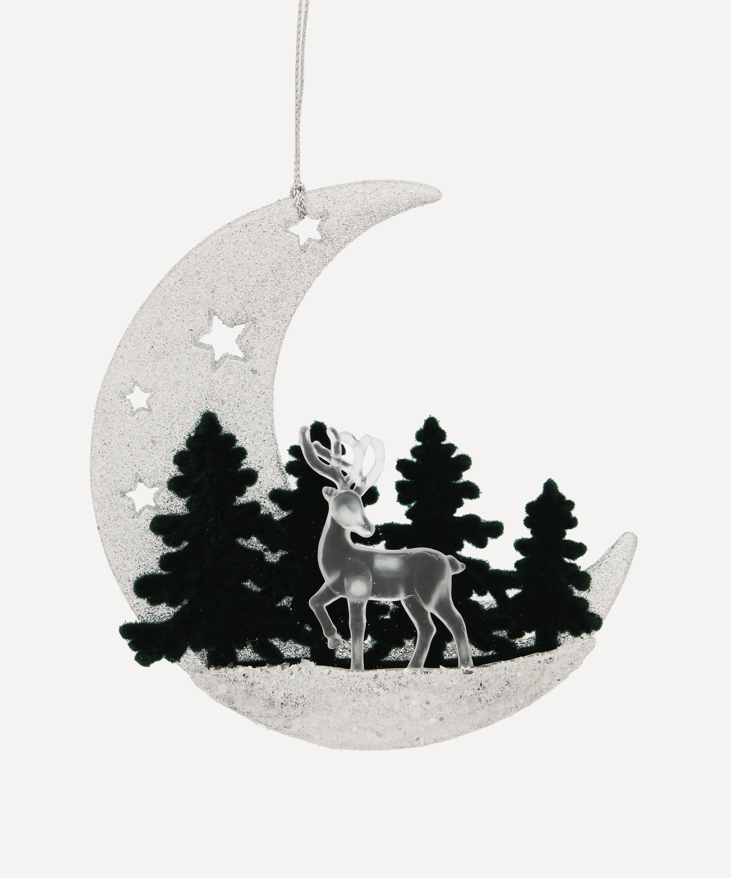 Add a touch of whimsical charm to your evergreen pine with the Silver Glitter Crescent Moon ornament, exuding opulence and magic through its shimmering silhouette.