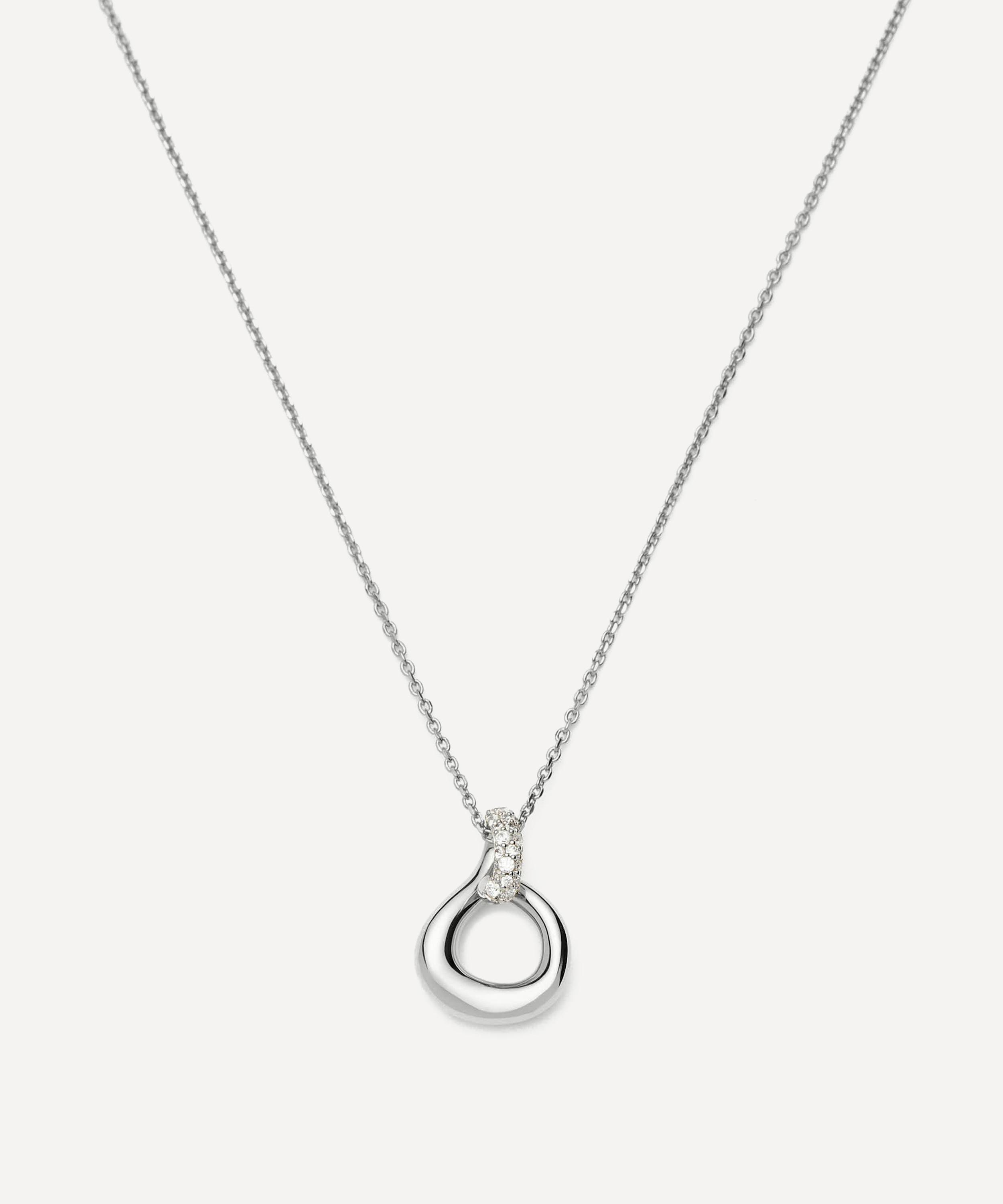 Make a unique style statement and elevate your everyday jewellery line-up with the Molten Snow Twisted Pendant Necklace from Missoma. Crafted from rhodium-plated silver, it features fine cable chain and twisted pendant, giving it a sculptural look with a frosting of snow pavé to mimic ice crystals. Artfully handset, this highly skilled technique is usually only seen in the most delicate of fine jewellery pieces. Style it solo, incorporate it into a curated stack or try wearing it with the matching Molten Snow Stud Earrings and the Molten Snow Small Hoop Earrings for maximum impact.
