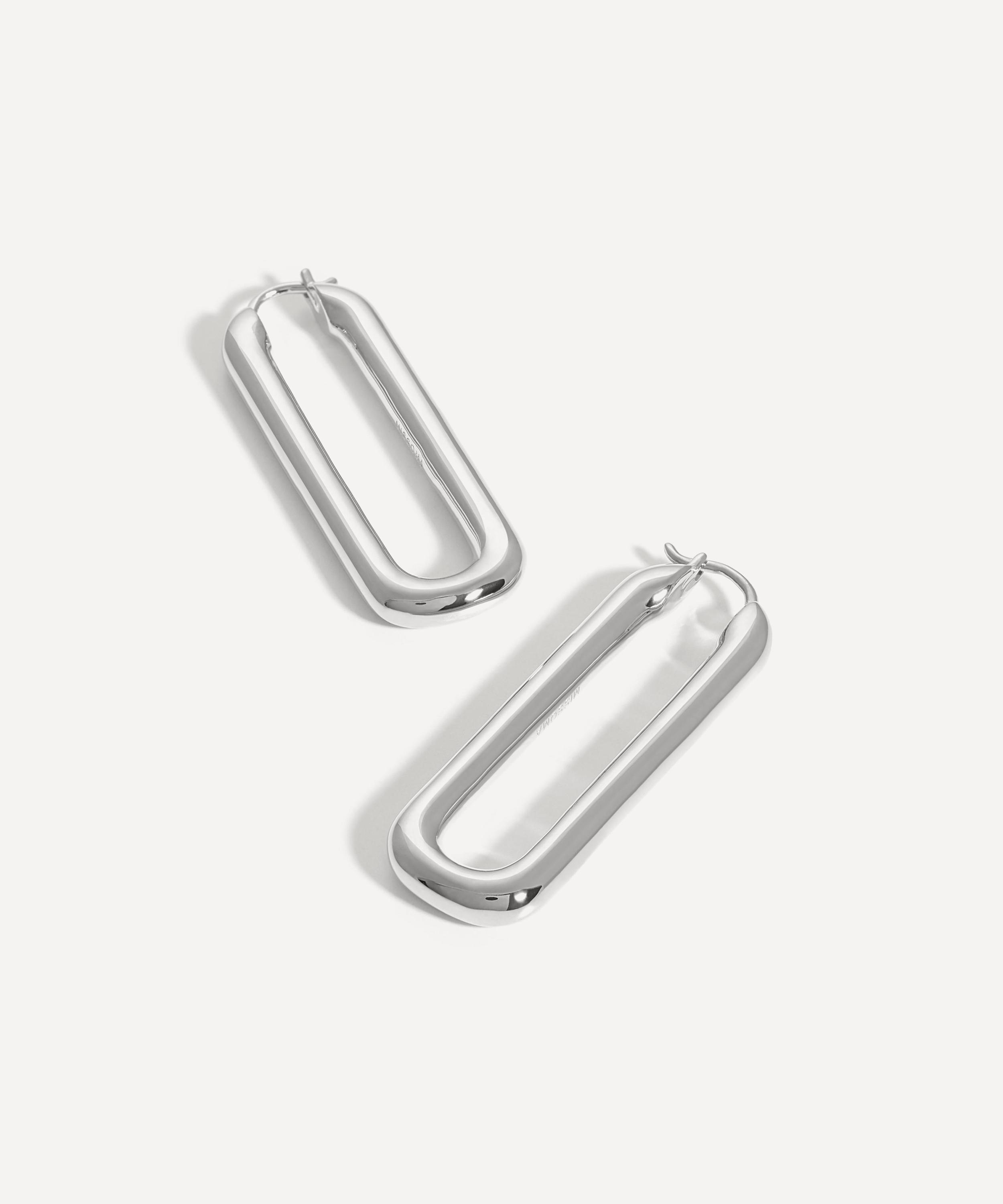 A reimagined take on the classic hoop, Missoma’s ovate hoop earrings add a subtle statement to your ear curation. Crafted in silver-plated brass, each earring features a vintage-inspired ovate shape, in a high-polished finish. Style them as part of a stack, or wear them solo for a minimalistic approach.