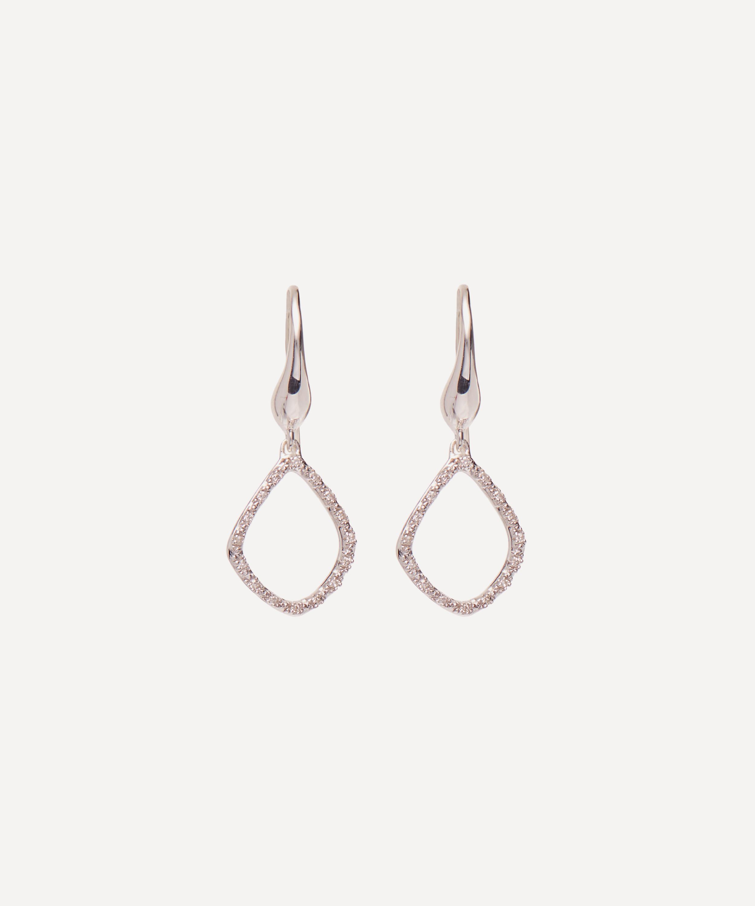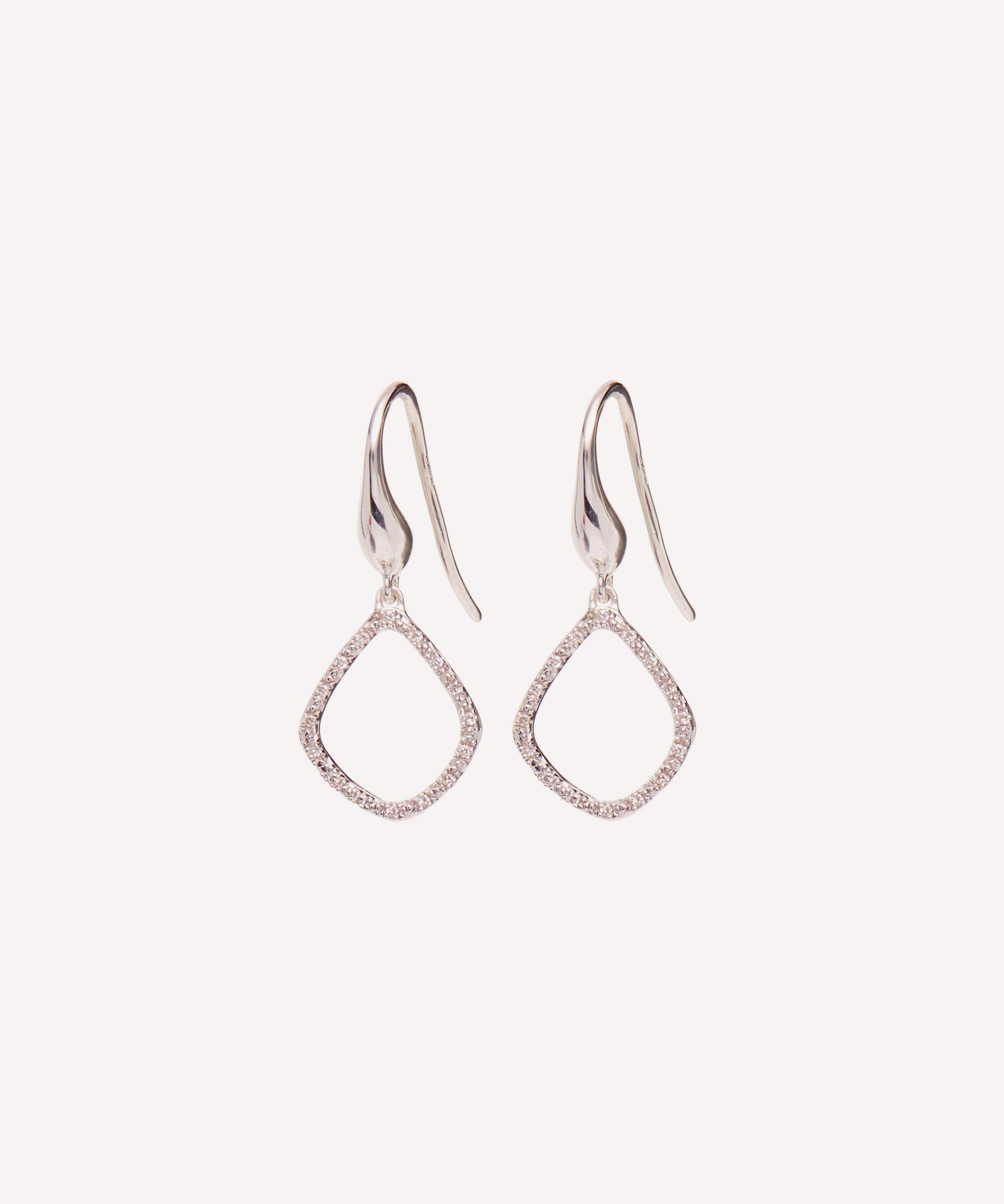 Inspired by the waves and curves of architectural structures, these sparkling drop earrings feature an open kite-shaped silhouette with subtle irregularities that perfectly capture the organic aesthetic of the collection. Crafted from polished sterling silver, each earring is encrusted with a glittering array of pave diamonds for a light-catching, show-stopping finish. Style them alone for understated elegance or wear them alongside an assortment of stud earrings for a contemporary evening-ready look.