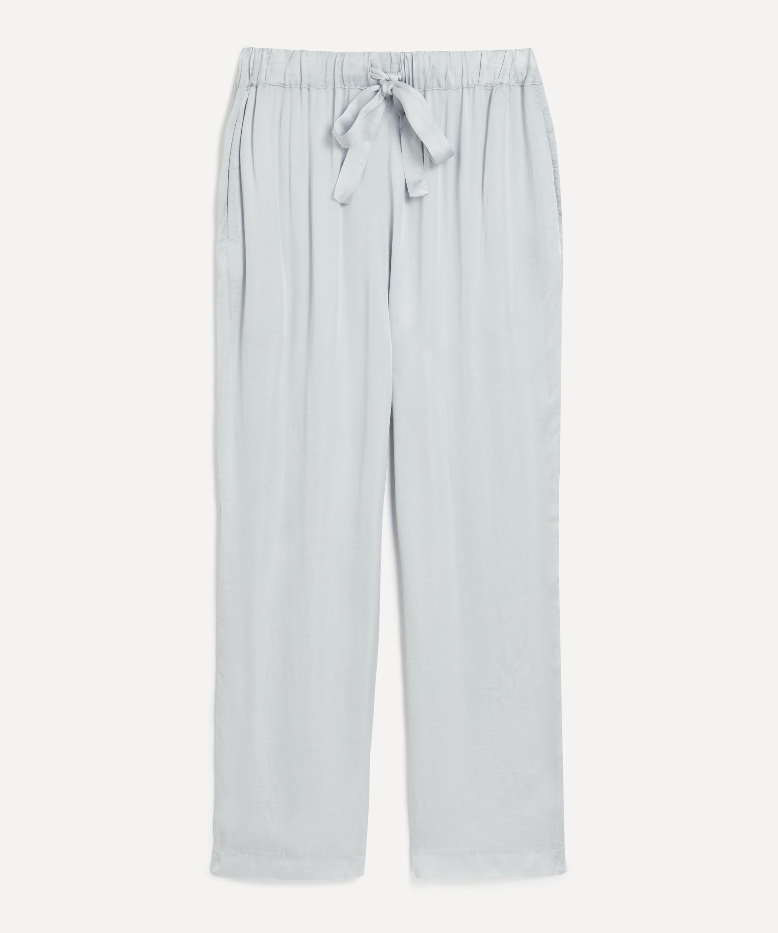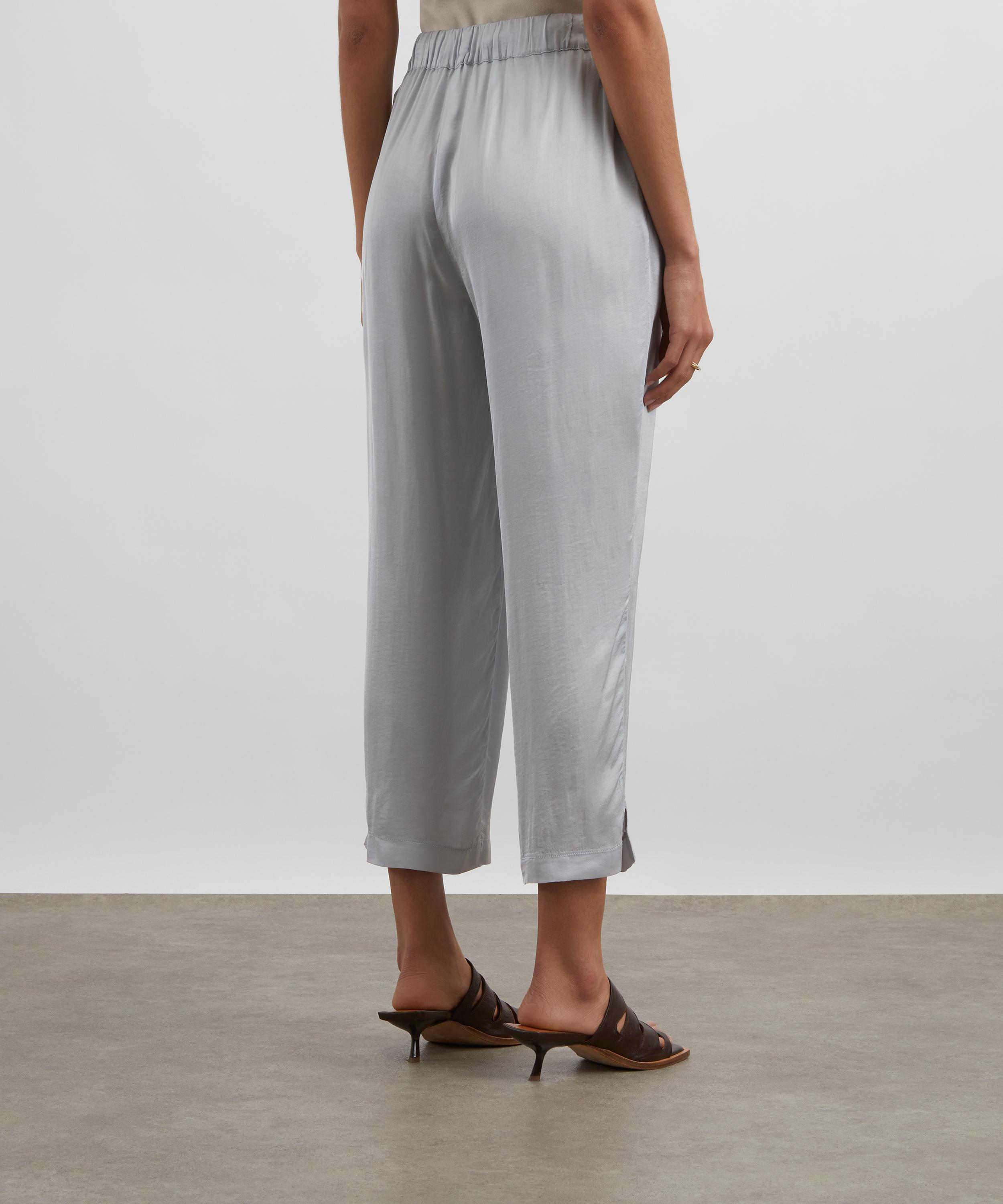 Lightweight and airy, these sleek satin trousers are designed with a relaxed, cropped leg silhouette, featuring side pockets and an elasticated drawstring waistband for all-day comfort.