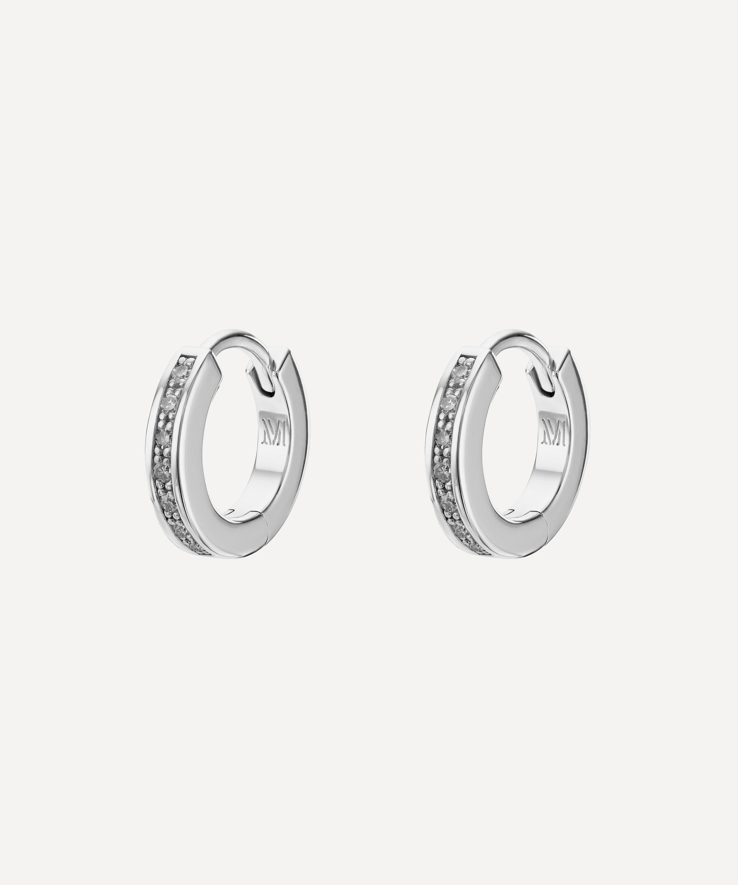 Each of these delicate earrings is characterised by a high-polished huggie hoop set with seven glittering pavé white diamonds. Complete with a simple hoop lock backing, they are endlessly versatile - try stacking multiple together or teaming them with an assortment of mismatched studs and drops for a trend-led, contemporary finish.