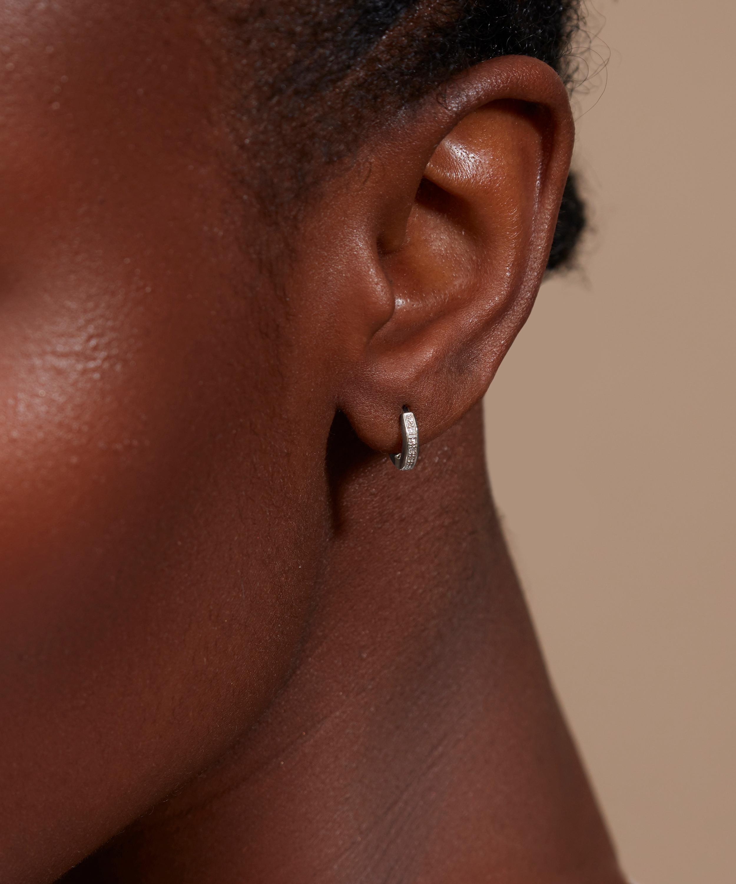 Crafted from sterling silver, these skinny diamond huggie hoop earrings are an understated jewellery box essential that will slot seamlessly into any ear curation.