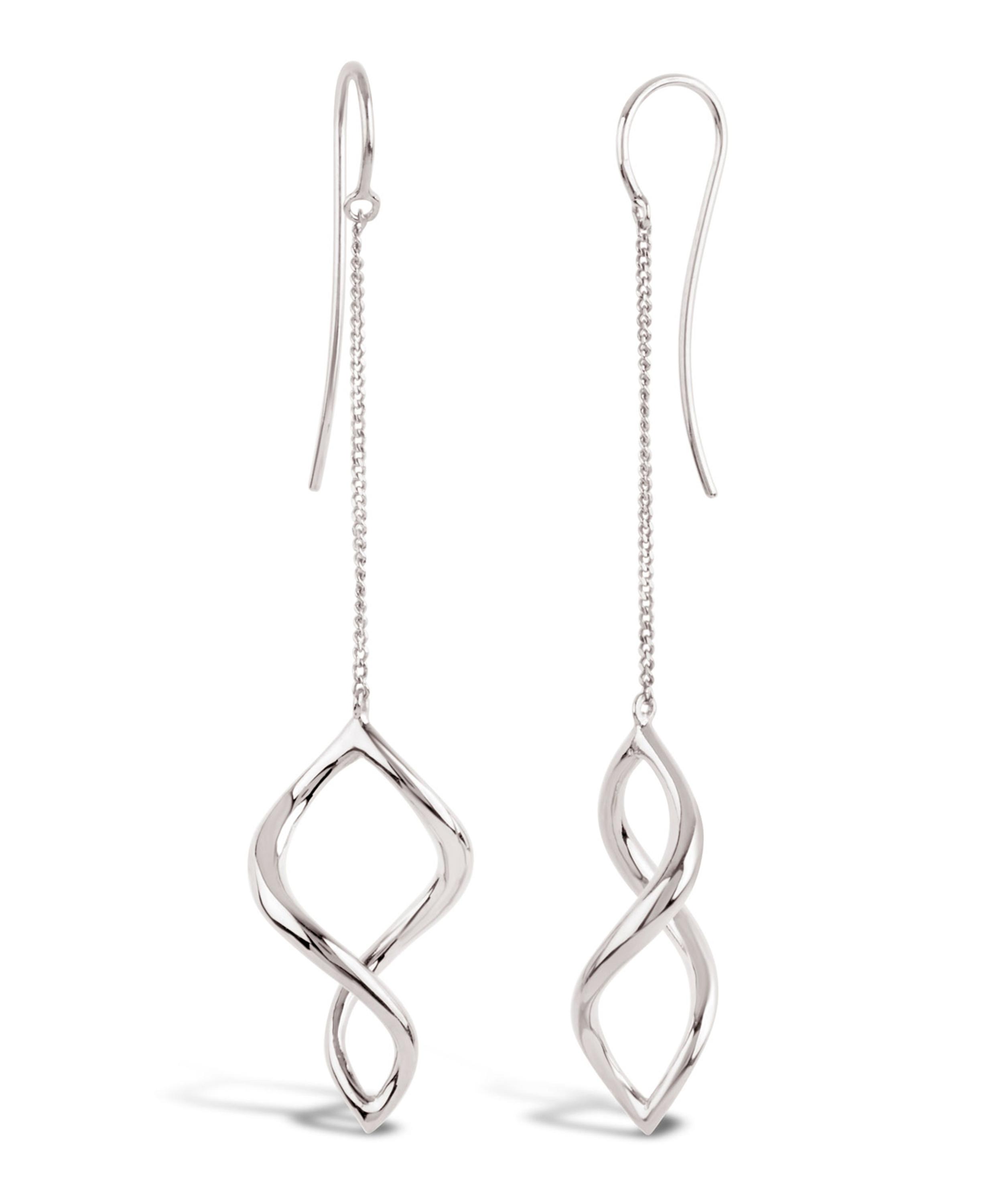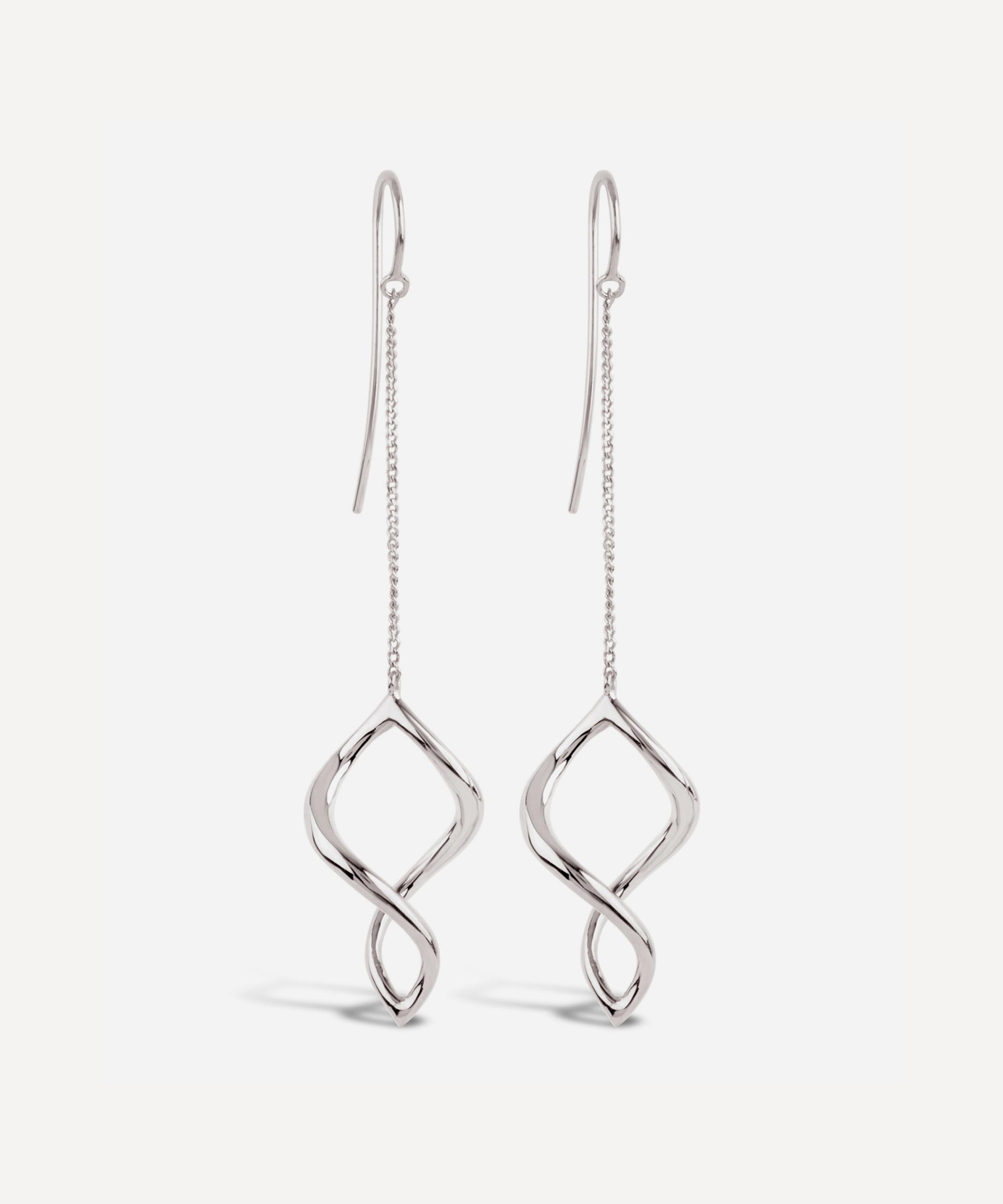 Solid precious metals are painstakingly carved, annealed and twisted together to form the undulating silhouettes of Dinny Hall's Twist collection. Handmade from high-polished sterling silver, each of these understated earrings features a long chain drop that descends into a large, twisted hoop with a sculptural teardrop silhouette. Try styling them with an assortment of diamond studs and helix hoops for a contemporary curation that's perfect for everyday wear.