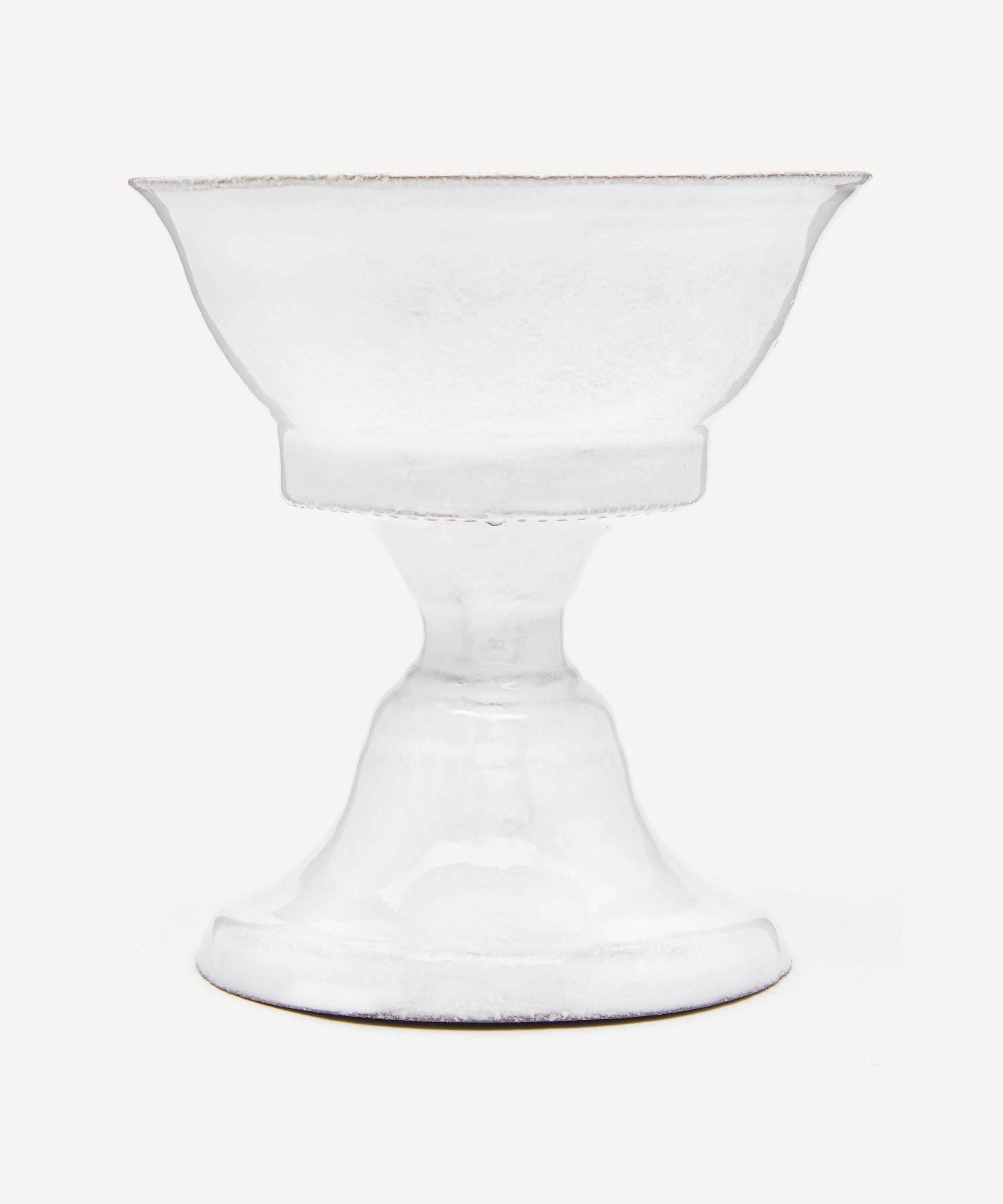 This bowl on a stand from Astier de Villatte is a testament to the Parisian brand’s spiritual ethos and fascination with folk art and abandoned objects.