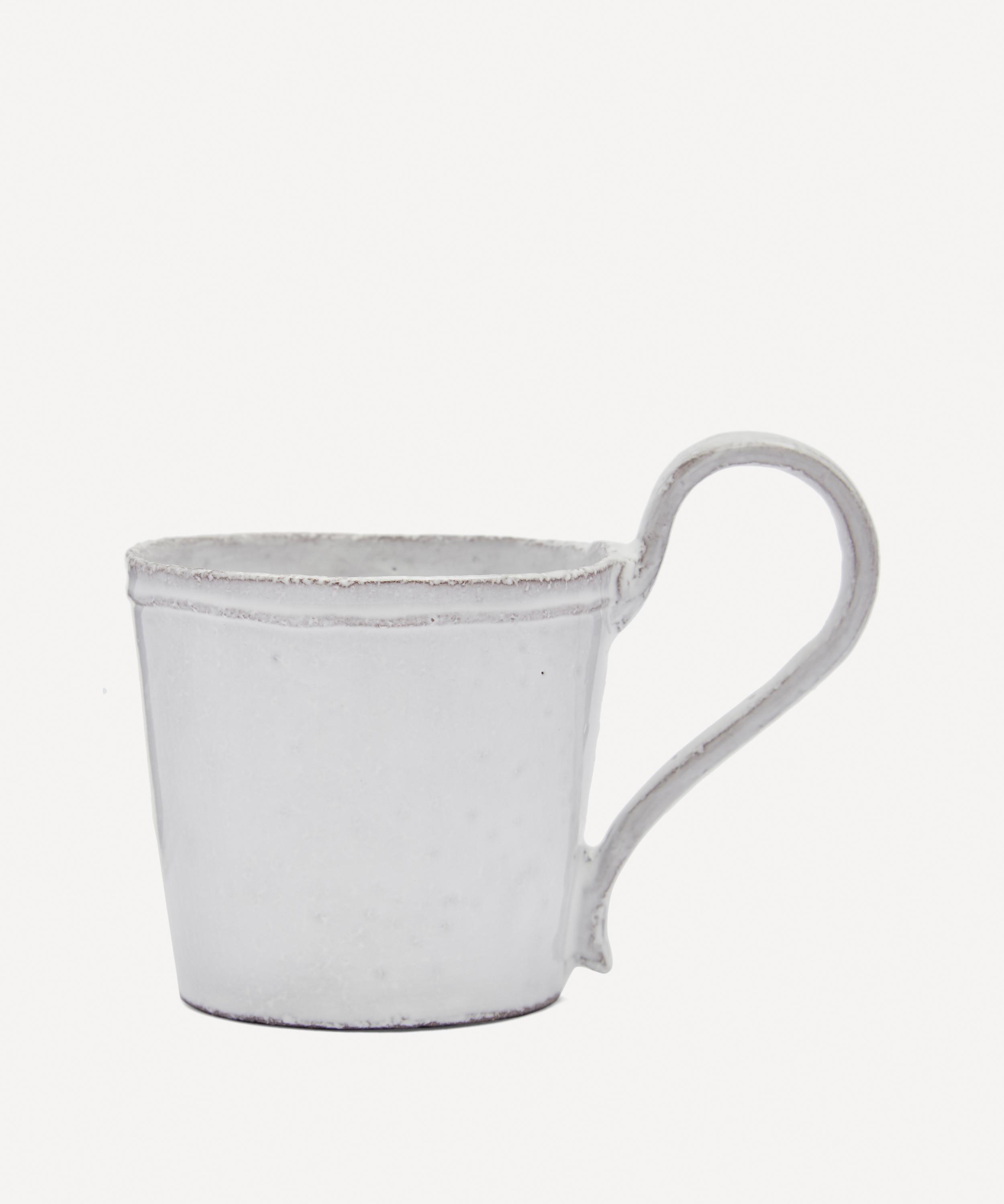 Votary of pre-industrial fabrication, Astier de Villatte is celebrated for being the one and only studio in Paris to hold and harbour the traditions of artisanal ceramic production. Restoring the ancestral systems of moulding and stamping, the Simple tea cup is made using techniques from the Middle Ages which involve moulding a sheet of handmade clay, double firing the ‘biscuit’ piece and glazing the product in white enamel – a lengthy process that requires a drying time of up to one month. Characterised by exposed clay, subtle indentations and an oversized handle, the tea cup is engraved with the brand’s signature crest - depicting an interlacing A & V - alongside the initials of one of the 40 master artisans who created it. Each handmade piece tells a beautiful story, it romances and imparts a sense of nostalgia into its owner. Arrange with other mugs in the collection to breathe an air of authenticity into your afternoon tea setting.
