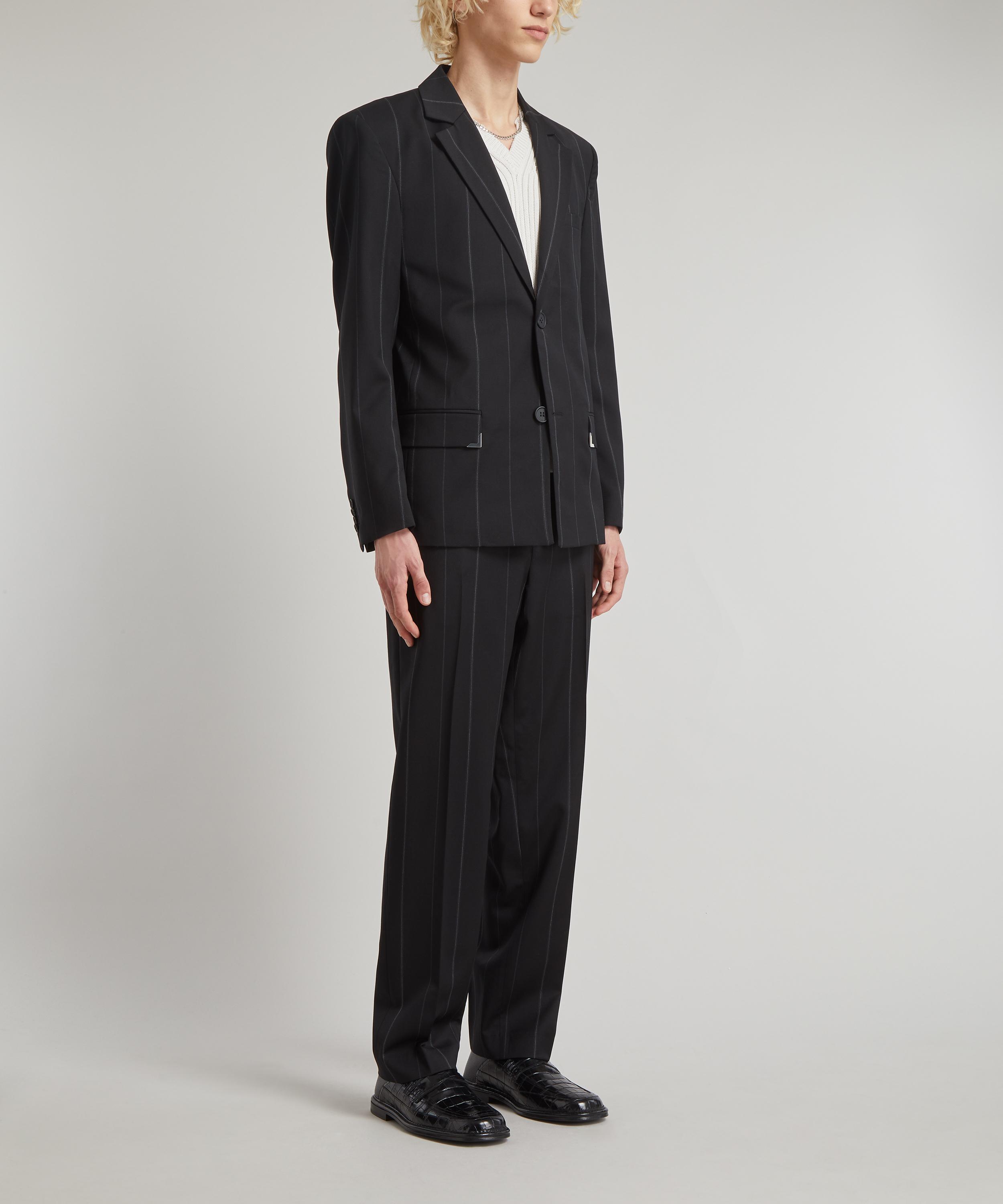 Showcasing the Danish label’s meticulous eye for material and fit, this blazer jacket is cut from a lightweight wool-blend, pinstripe fabric to a boxy fit, with sharp shoulder-pads, notched lapels, single-breasted button fastenings and two front flap-pockets, complete with metal-embossed corners. An effortlessly sleek style, wear it over a knitted V-neck jumper teamed with matching suit trousers and patent loafers for a smart edit with contemporary flair.