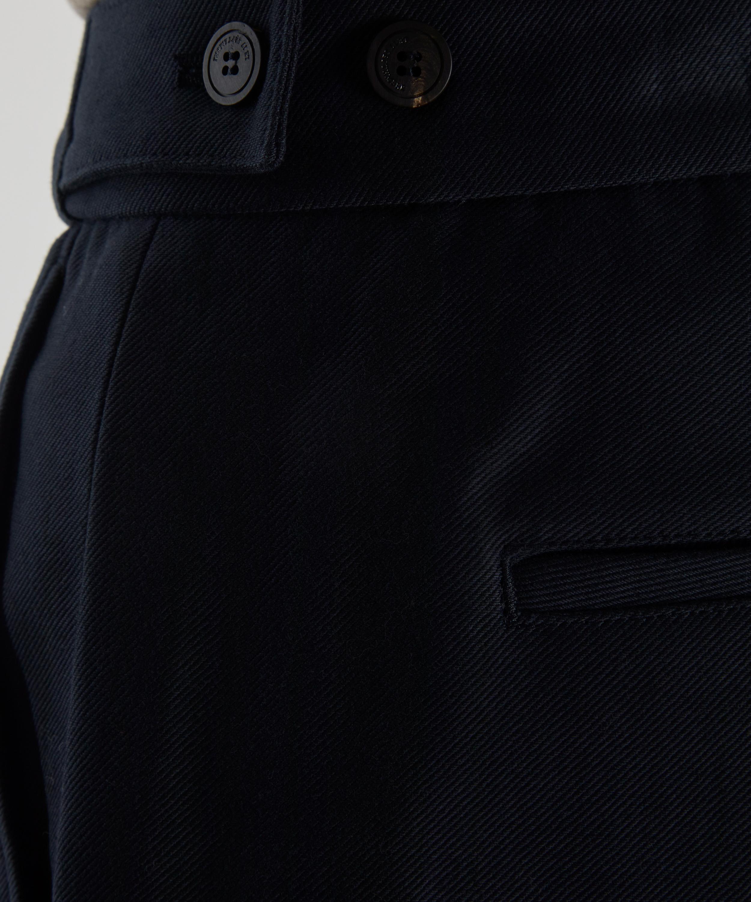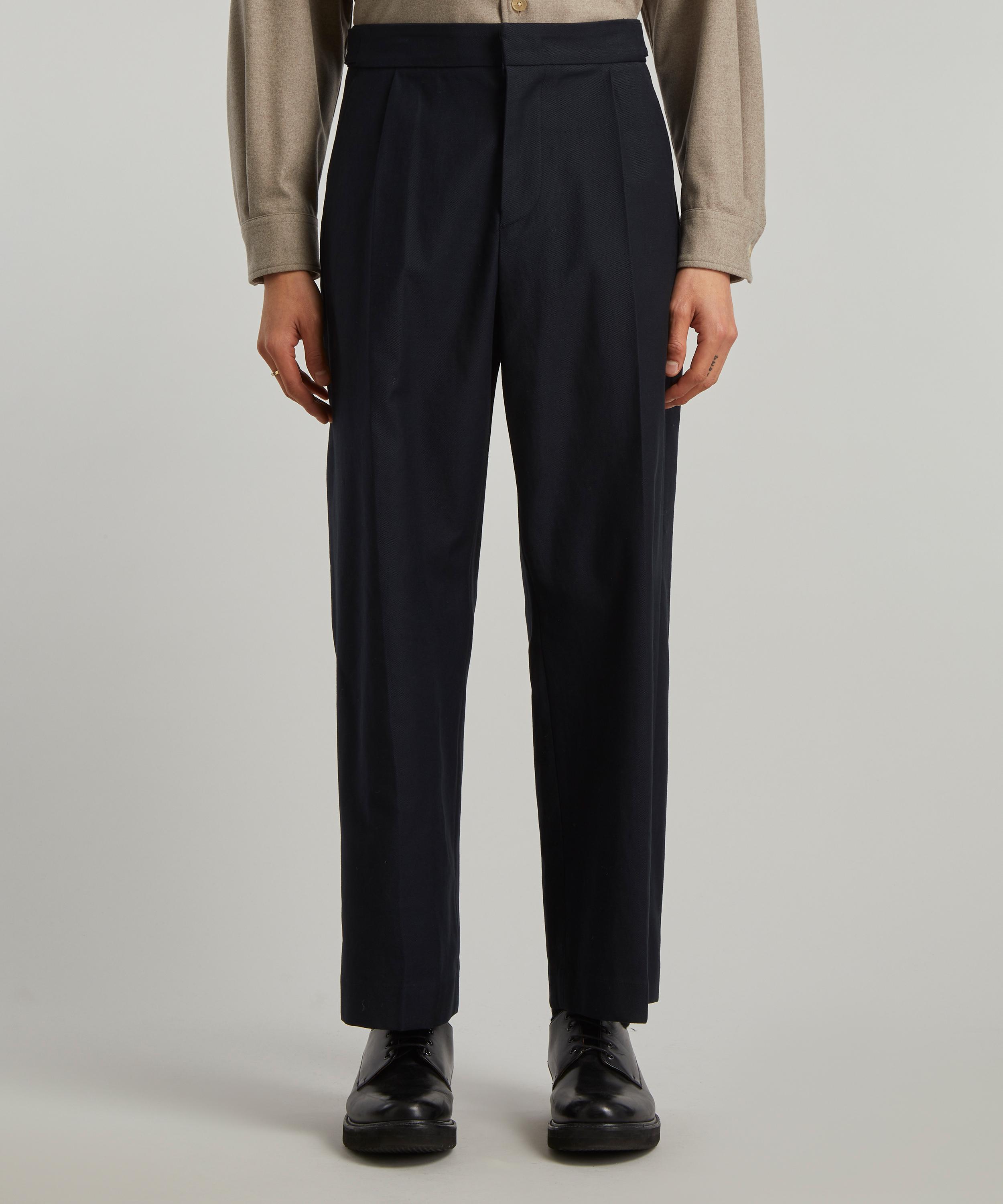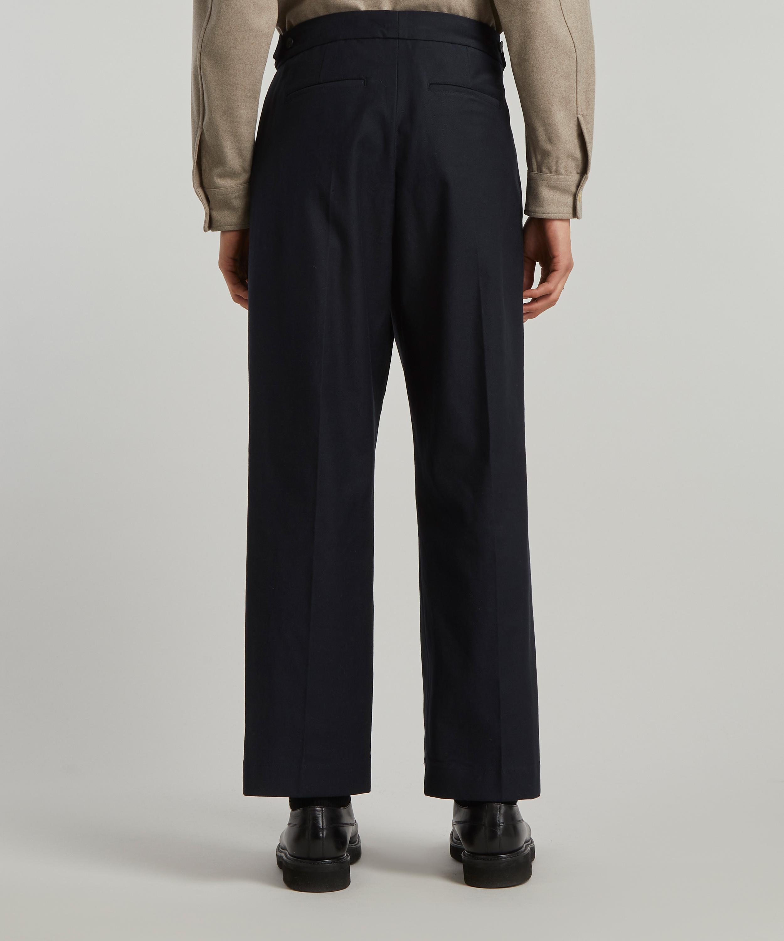 These formal navy trousers from Le17septembre perfectly encapsulates the Korean label’s considered approach to quality craftsmanship. Cut to a regular-fitting silhouette, these tailored trousers are crafted from a durable cotton-blend, complete with a central single-pleat, side slip-pockets, rear welt-pockets and waist adjusters on the side for fitted finish every time.