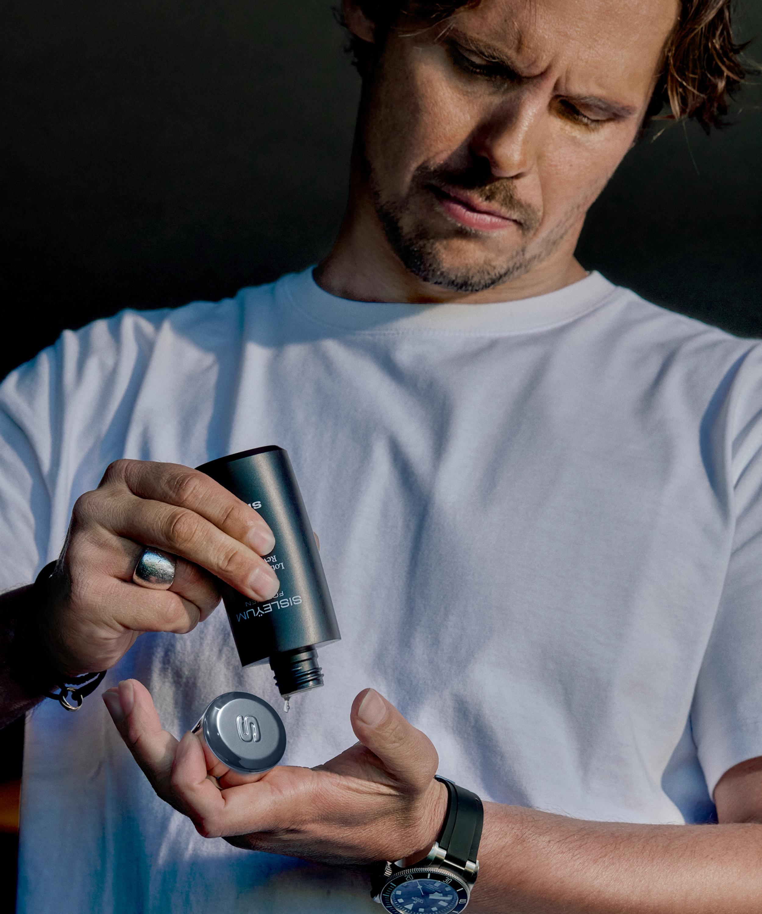 Take a small amount of Sisleÿum for Men Revitalizing Toning Lotion in the palm of your hand and apply to clean, dry skin by gently patting. Can be used as an aftershave lotion to soothe feelings of irritation. Use daily morning and evening, before the Sisleÿum for Men Anti-Aging Mattifying Gel-Cream or Comfort Cream.