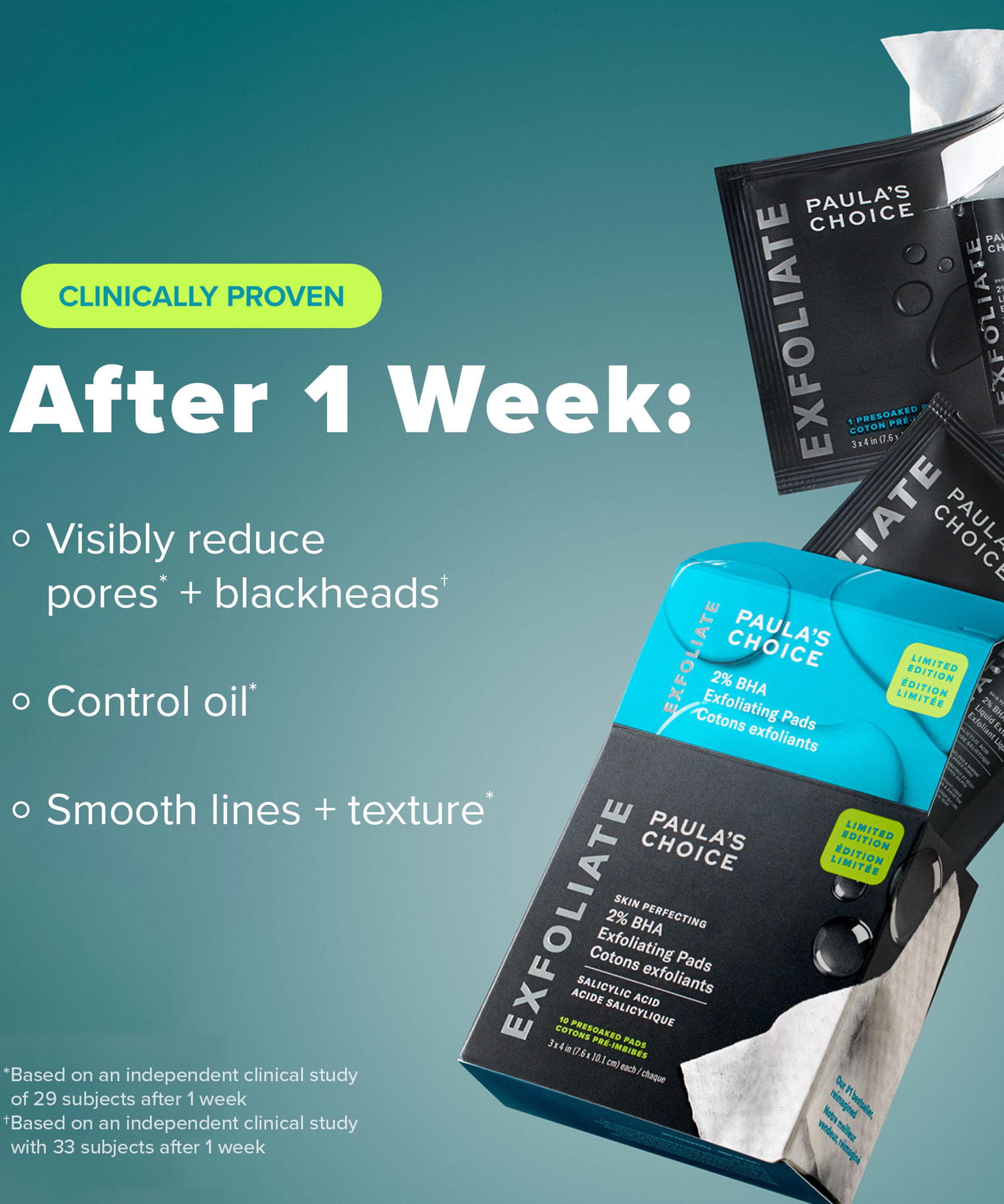 Pre-soaked in Paula’s Choice’s bestselling BHA formula, infused with a powerhouse blend of salicylic acid and green tea, the skin’s moisture barrier is instantly restored whilst pores are unclogged and skin irritation is reduced.