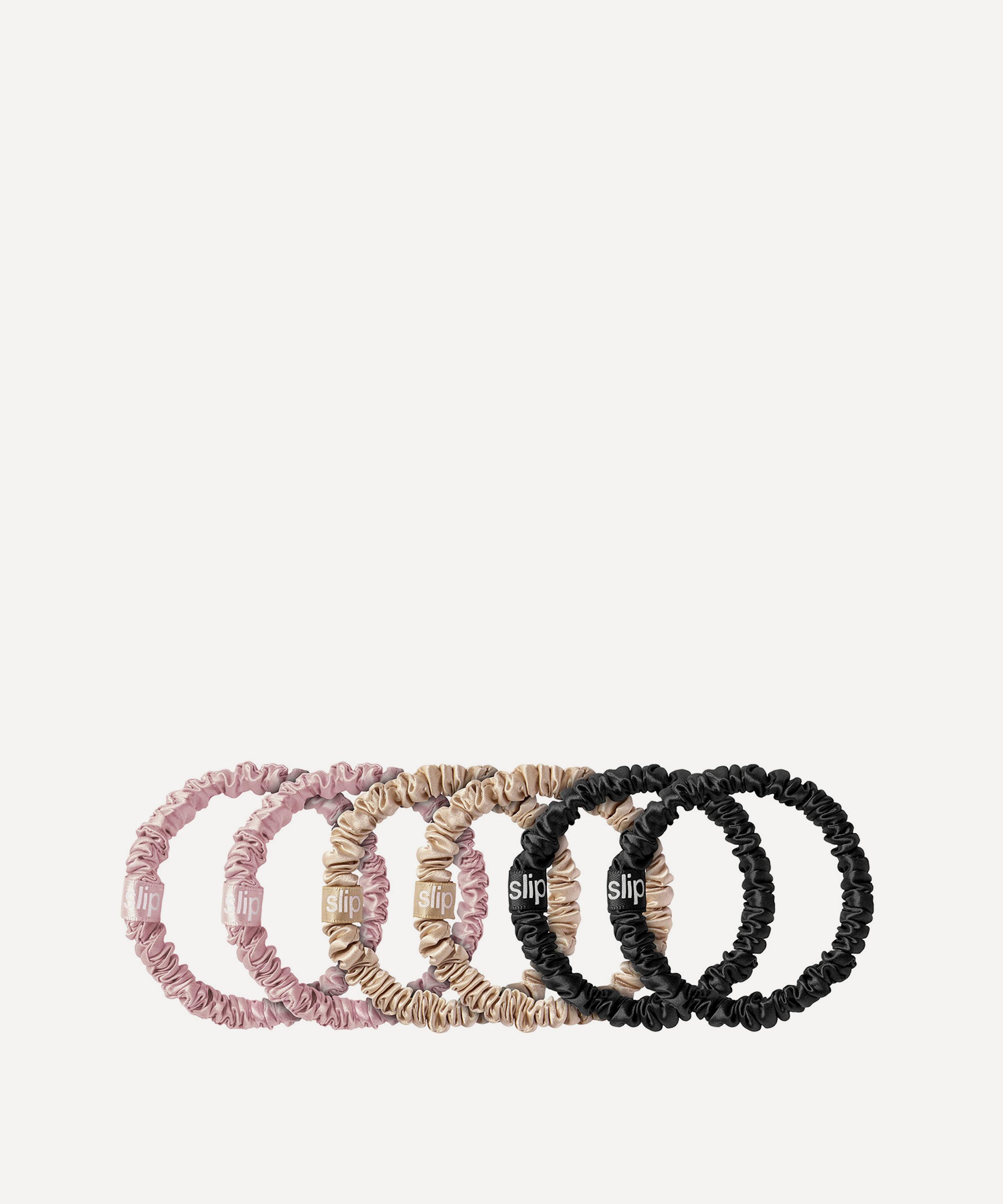 Originally developed for the award-winning pillowcase, skin-loving slipsilk™ is an innovation in silk which is gentle on skin and hair to preserve optimum health and shine. Covered with the highest grade 22 momme long fibre mulberry silk, Slip's elasticated hair tie is specially designed to comfortably hold hair taut without creasing, pulling, damaging or causing disturbance to styling. This pack of six features an assortment of colours that'll always match your outfit.