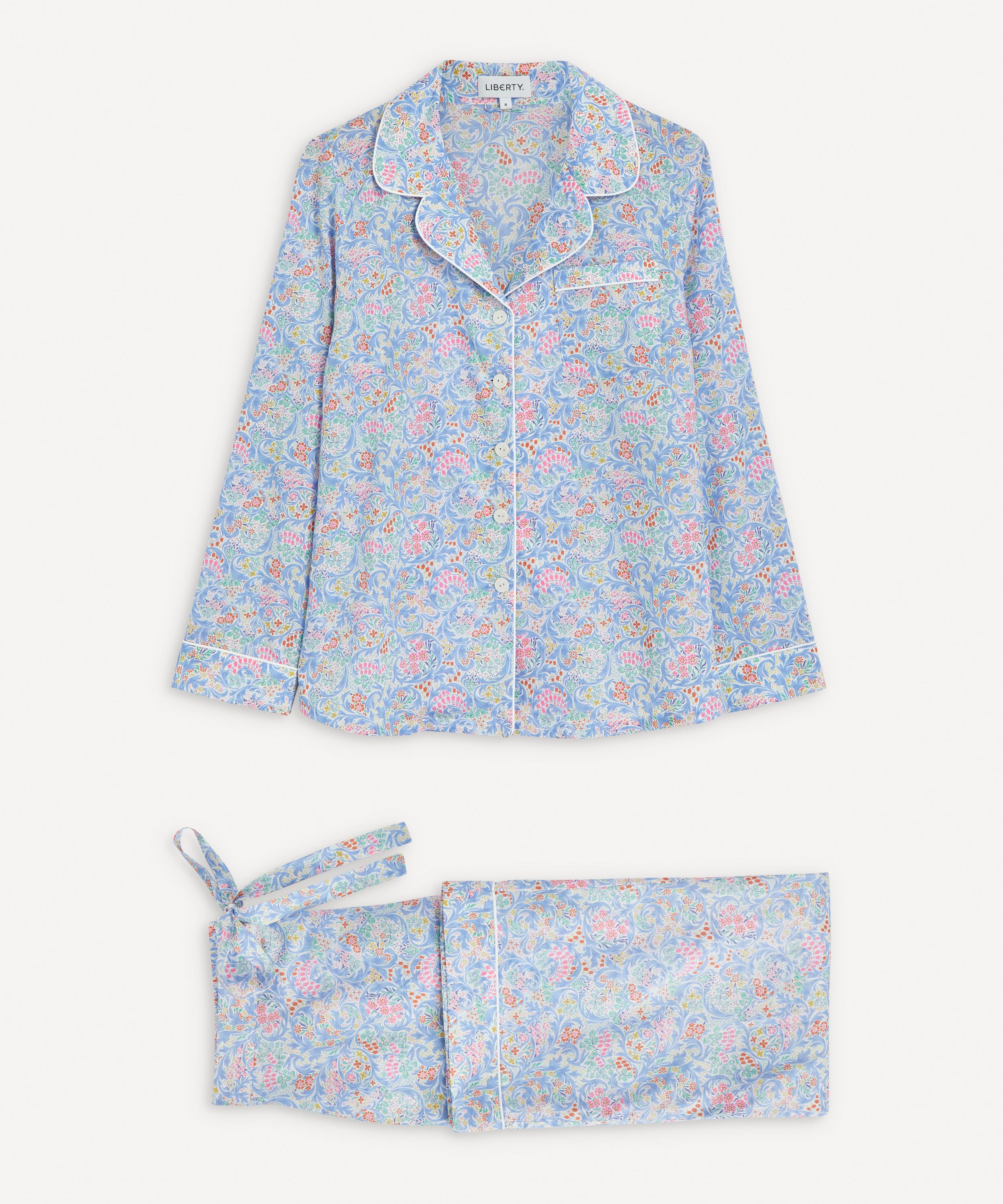 Tana is a true Liberty signature – a light, fluid revelation of a fabric that we’ve been perfecting for over a century, ultra-smooth to the touch and ideal for keeping cosy yet cool at night. Finished with elegantly piped trims, notched lapels and a chest pocket, the traditional two-piece pyjama set spotlights our Sleeping Beauty print – derived from an 1895 Liberty artwork, this delicate design is formed from a meadow of tiny archive swatches that combine into a swirling floral that evokes fantastical fairytale worlds.