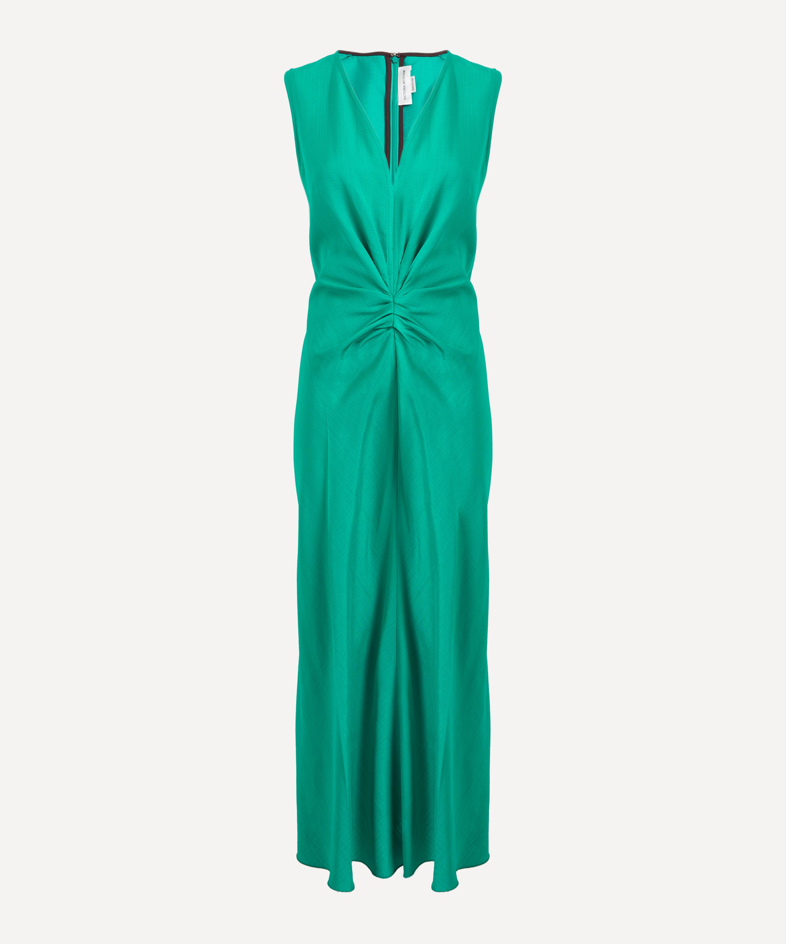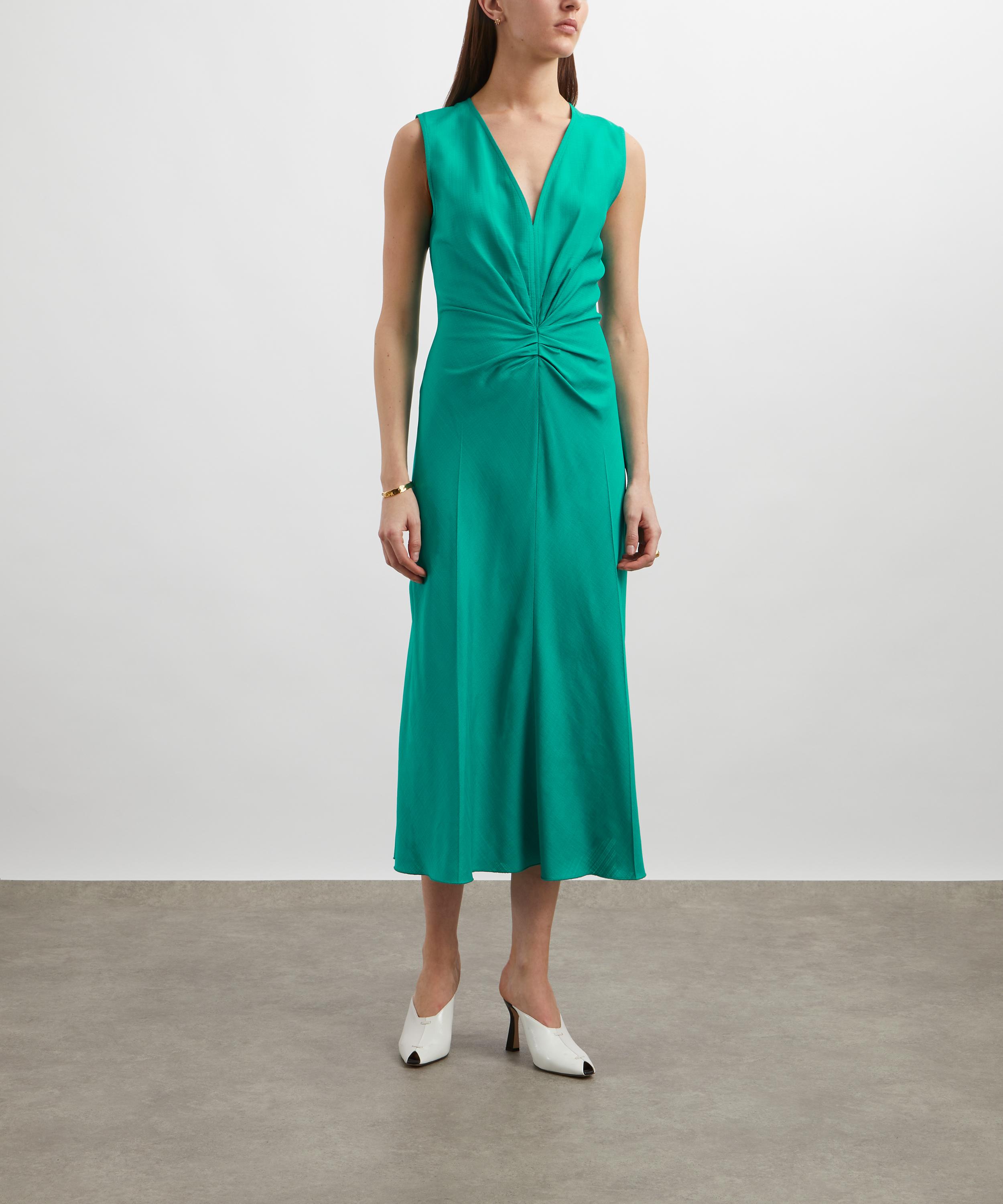 The Sleeveless Gathered Waist Midi Dress from Victoria Beckham exudes effortless elegance, serving as the foundation of the modern woman's wardrobe with its timeless design and sophisticated silhouette.