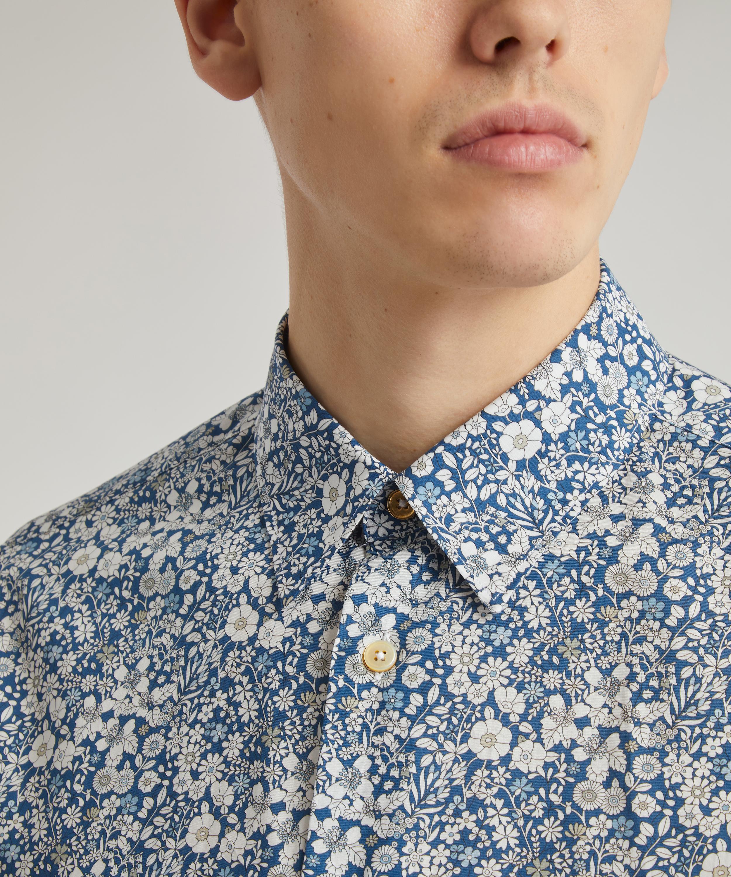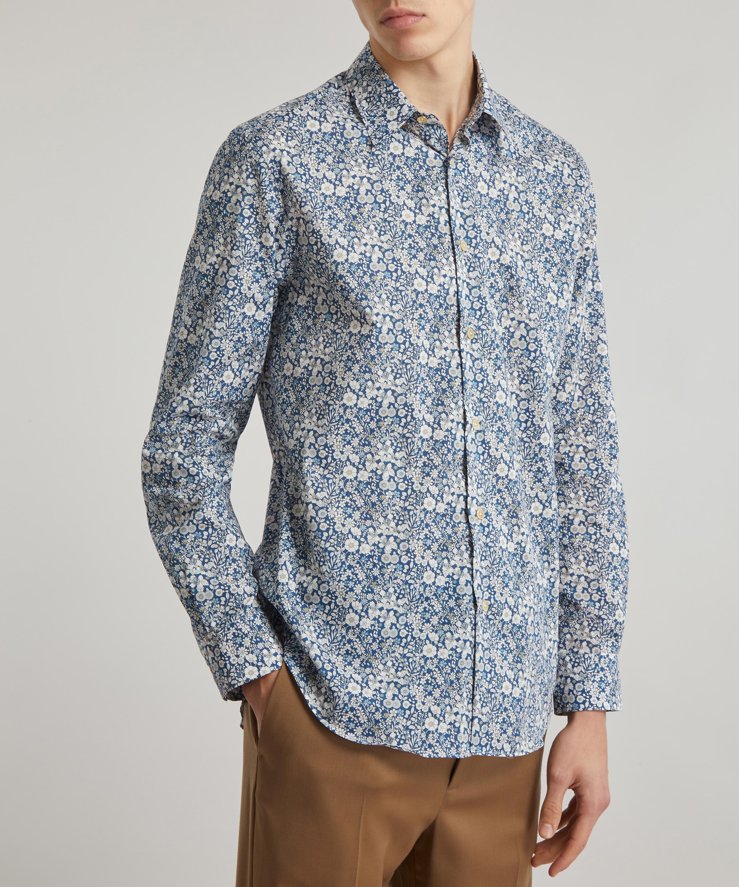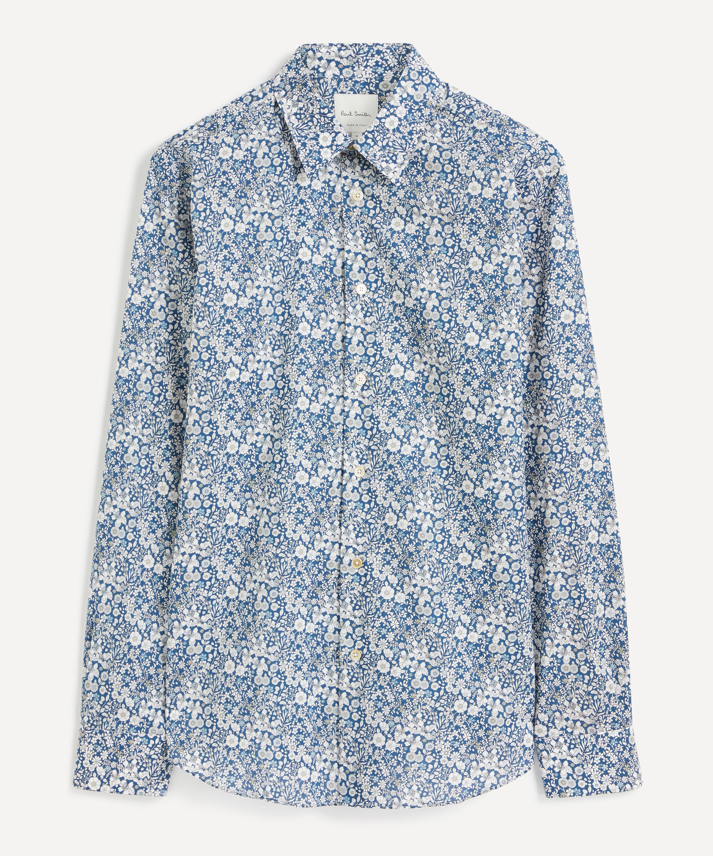 Blooming with sophistication, this slim-fit shirt from Paul Smith is adorned all-over in a floral Liberty print fabric. Cut from organic cotton, its placket is embellished with mother-of-pearl buttons, and a contrast top-button in gold.