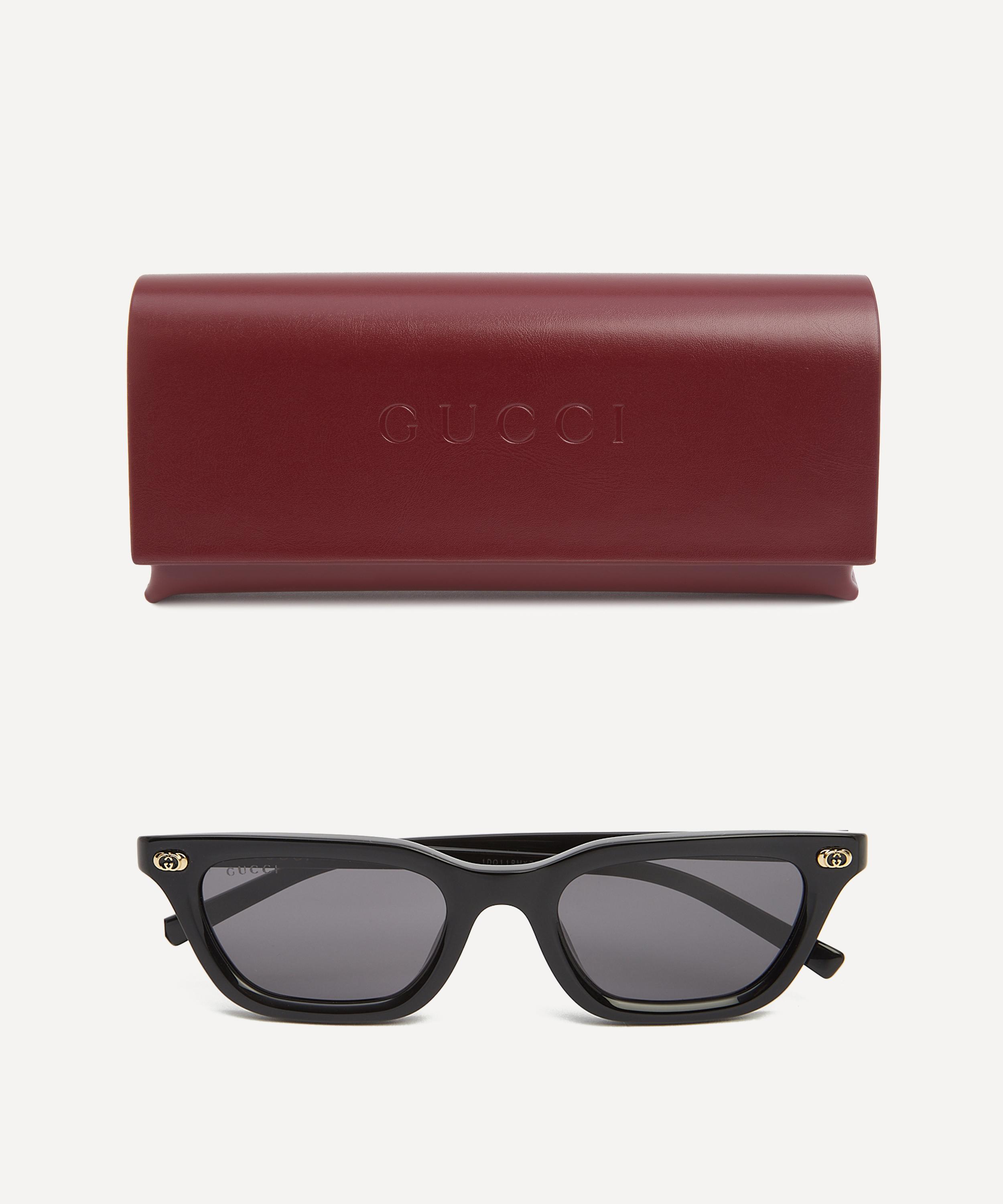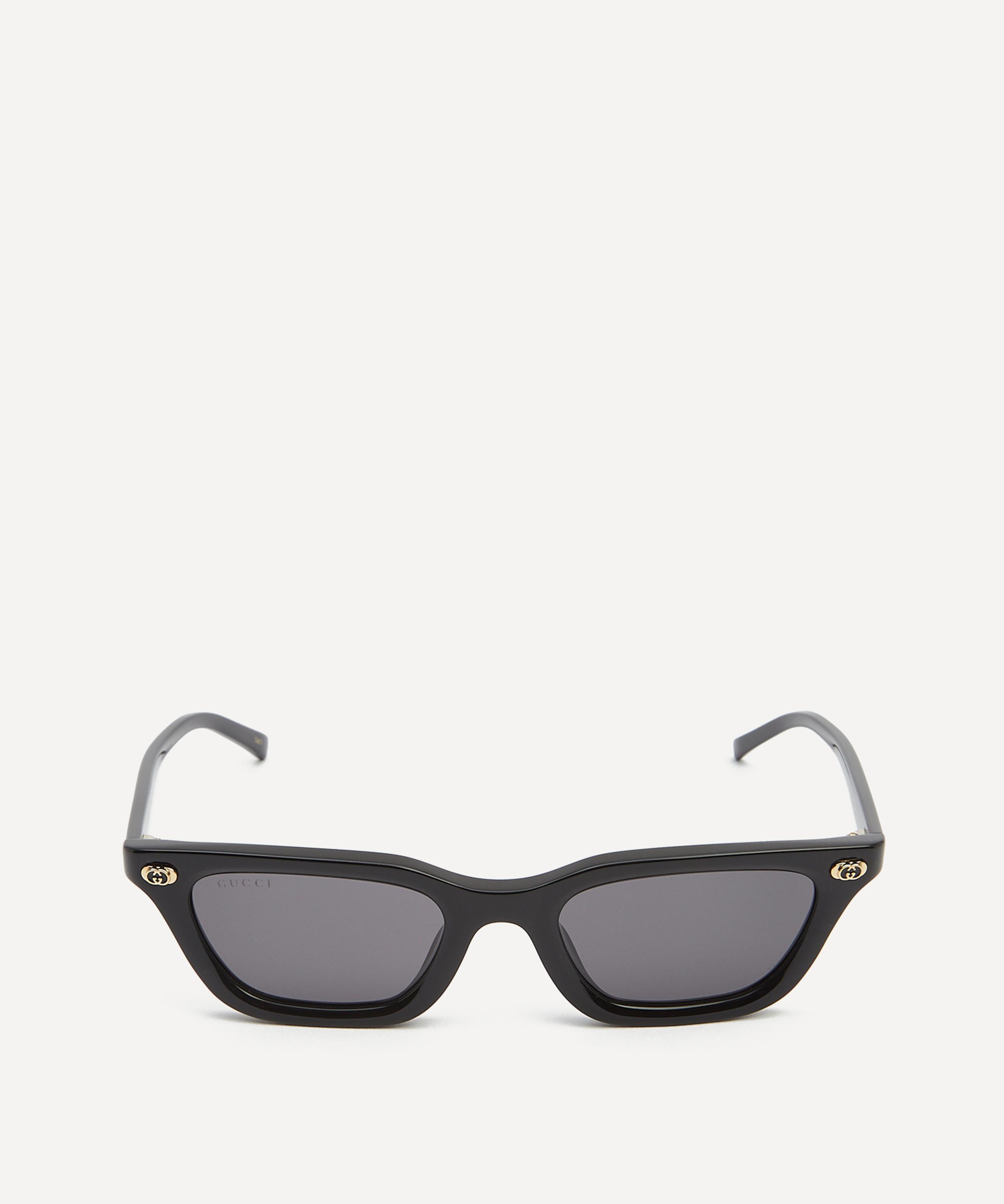 Crafted from glossy acetate in a classic black colourway, this elegant pair feature a slim square silhouette fitted with grey tinted lenses, and are complete with the fashion house's iconic interlocking G logo proudly adorning the front for an authentic finish