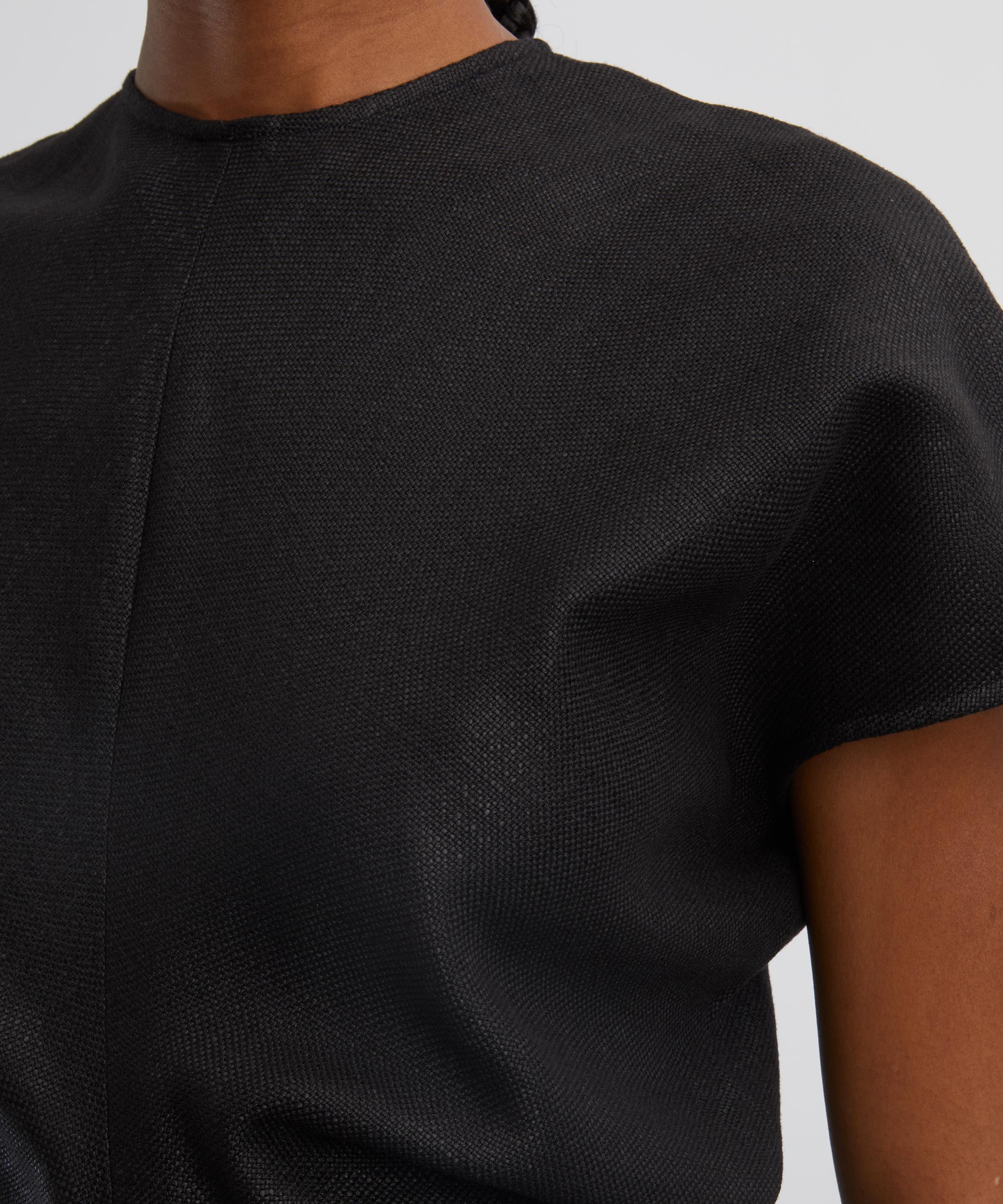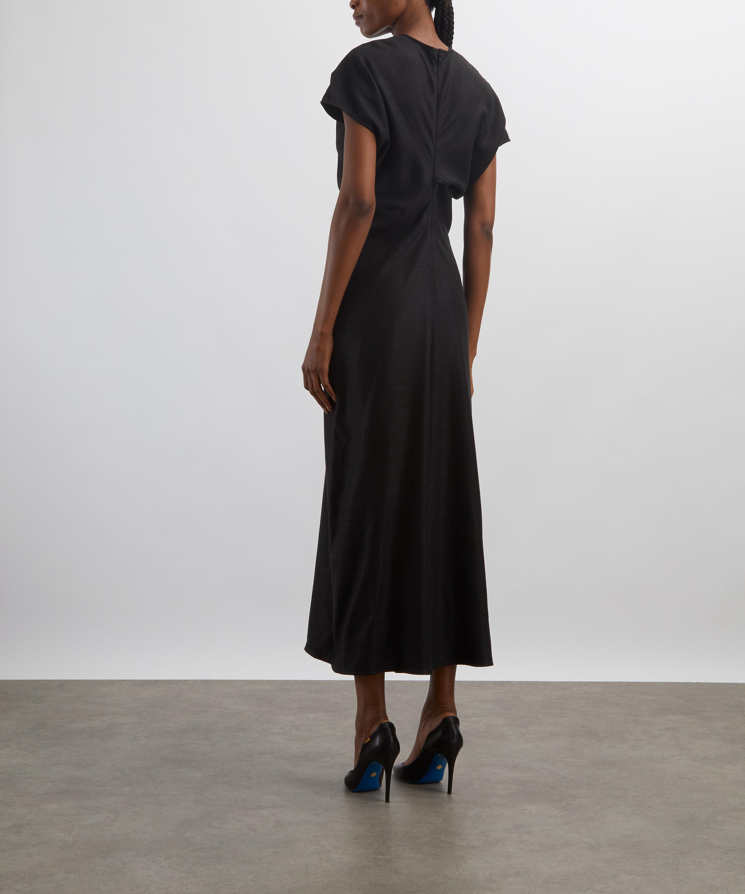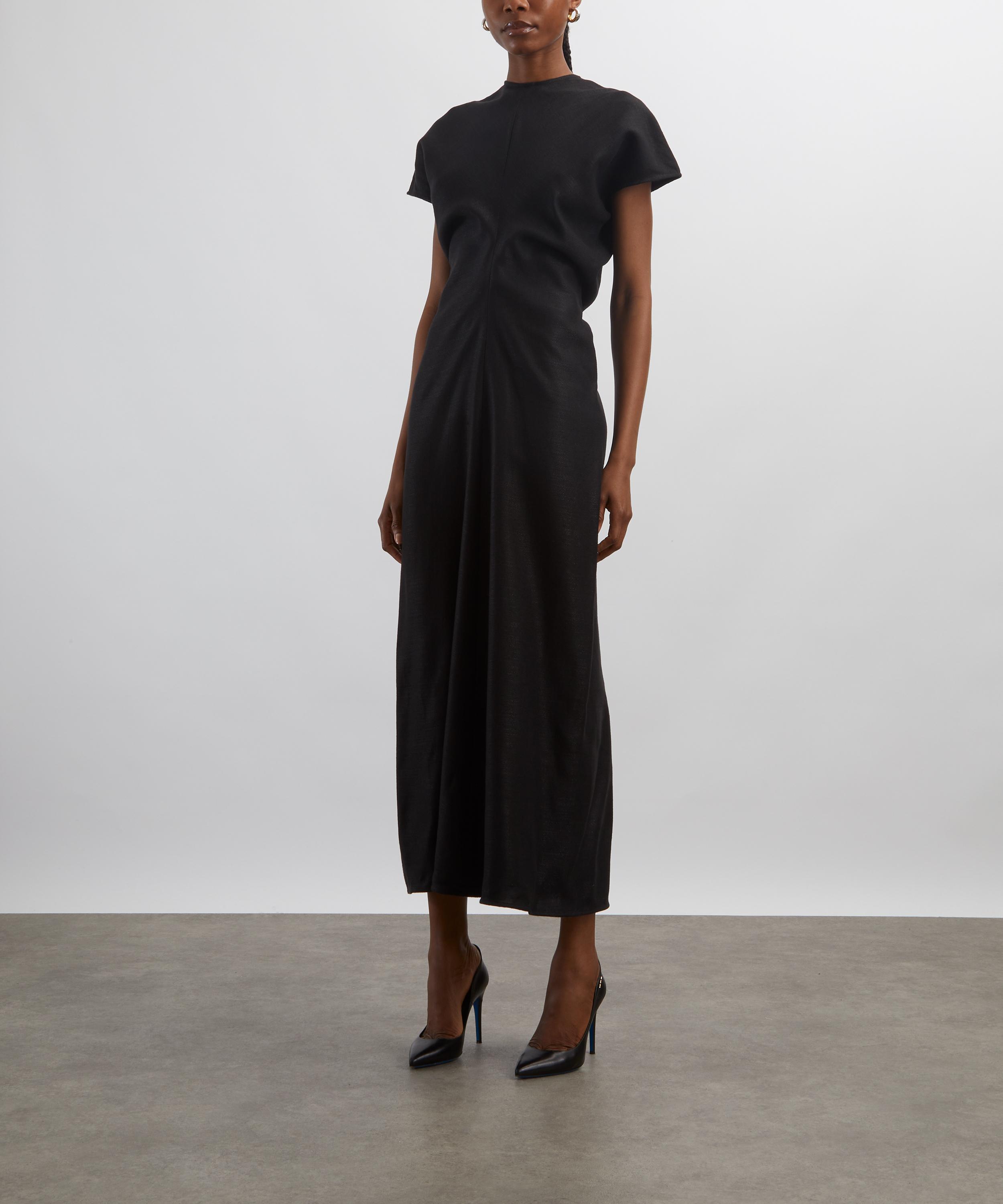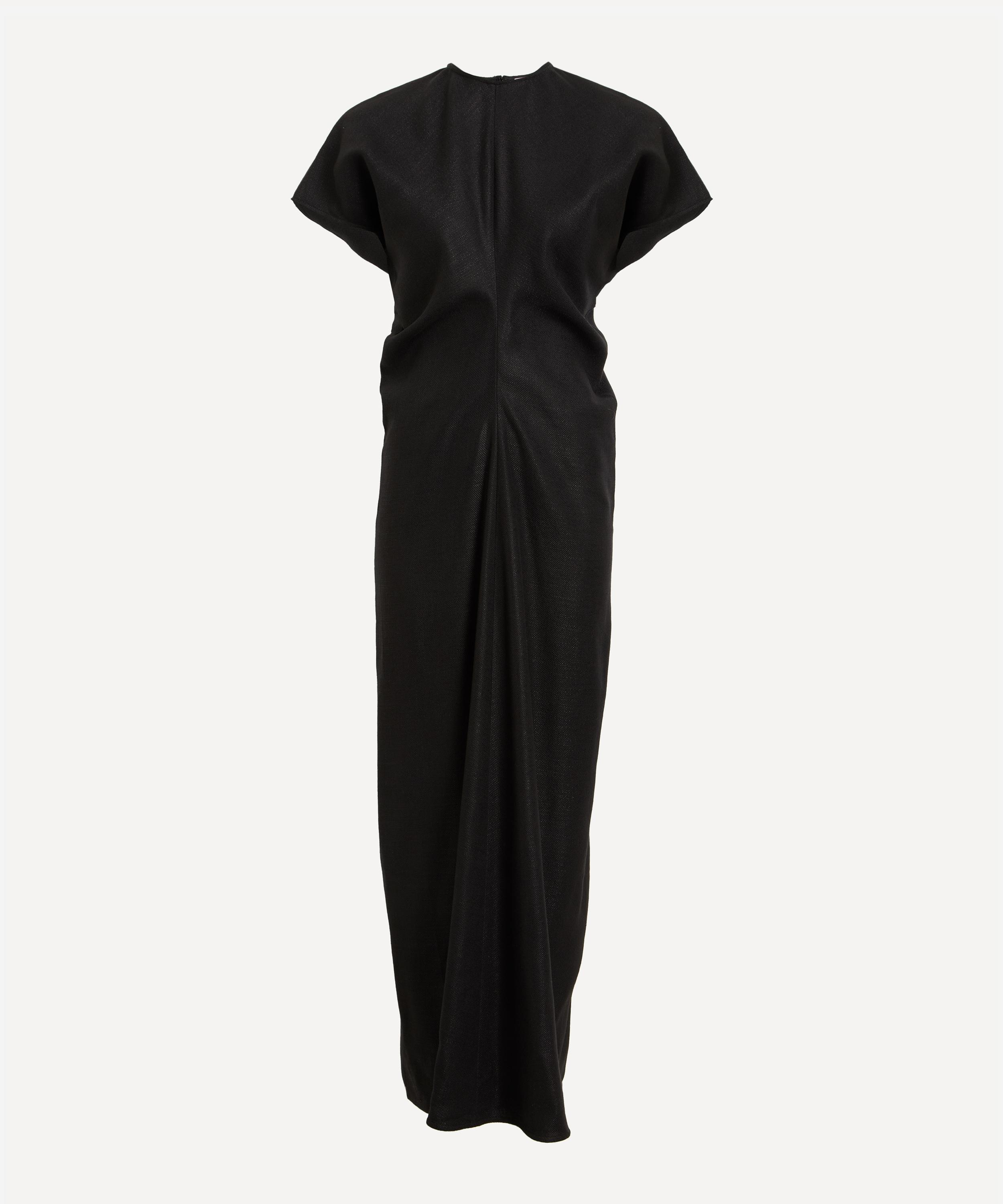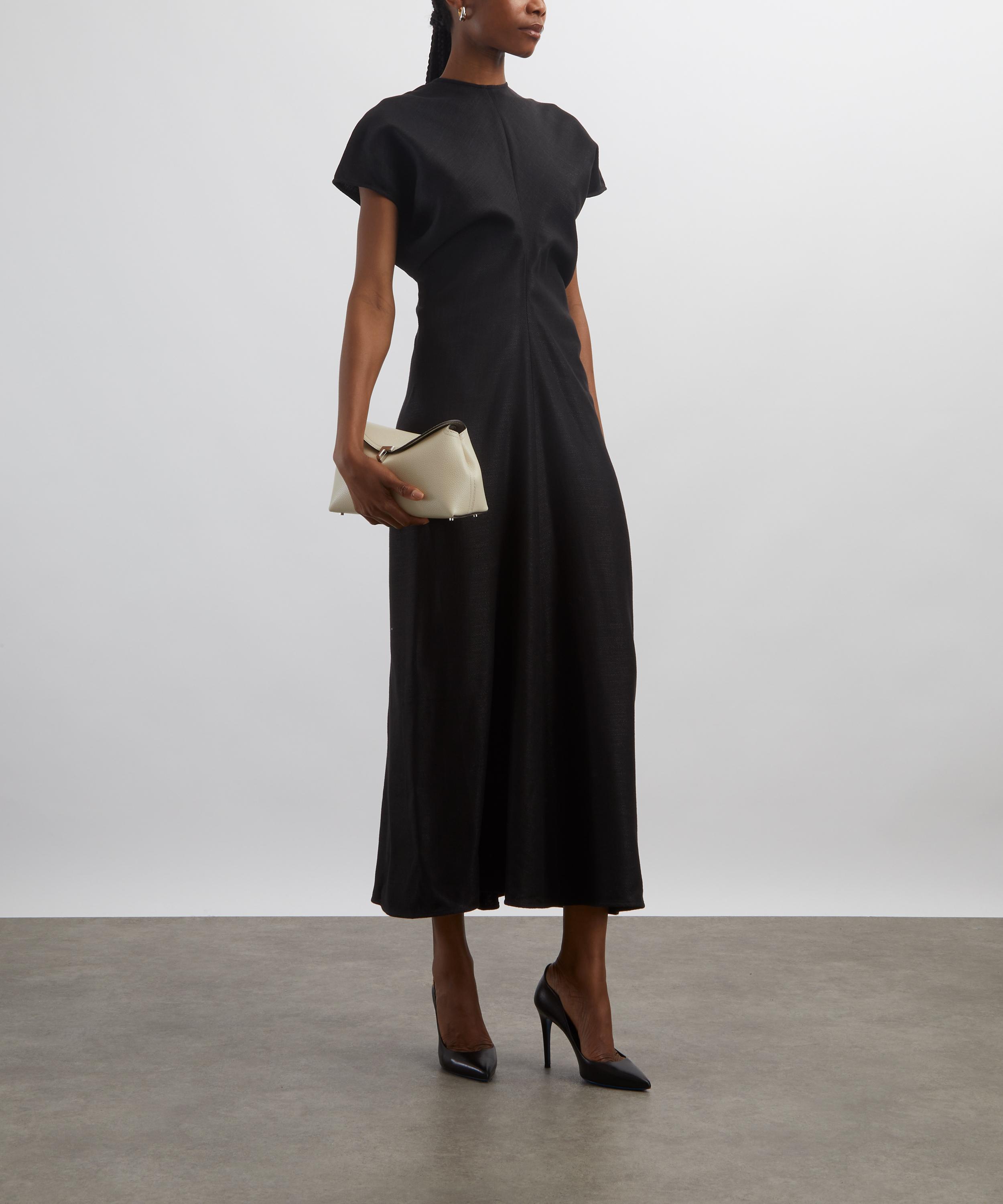 Woven in a rustic basketweave, this ankle-grazing TOTEME dress blends textural elegance with fluid construction. Short cap sleeves and curved panels sewn to create a signature slouched waist lend the silhouette gentle structure and ease, embodying the brand’s refined, relaxed aesthetic.