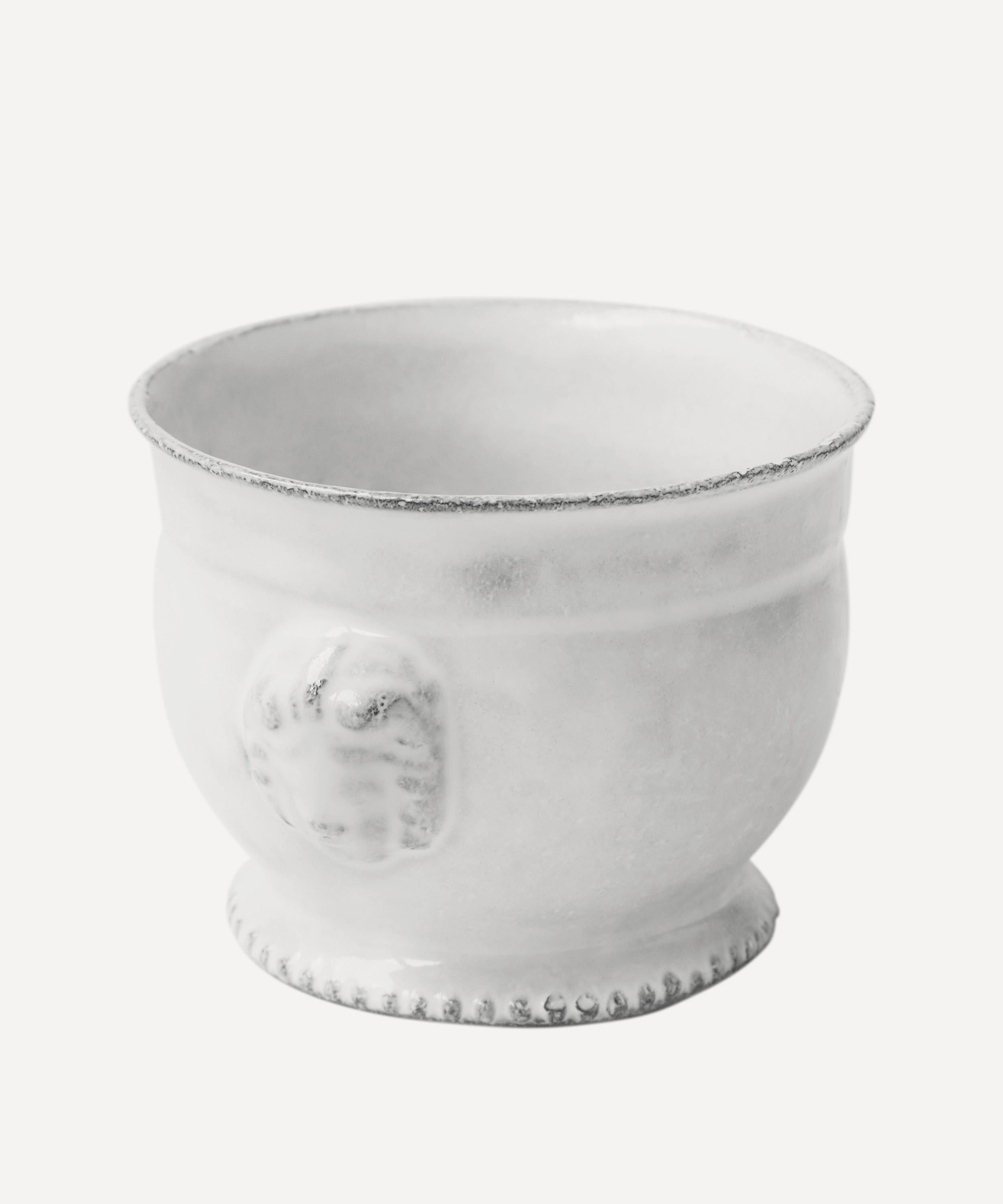Votary of pre-industrial fabrication, Astier de Villatte is celebrated for being the one and only studio in Paris to hold and harbour the traditions of artisanal ceramic production. Restoring the ancestral systems of moulding and stamping, this bowl is made using handcrafting techniques from the Middle Ages which involve moulding a handmade sheet of clay, double firing the ‘biscuit’ piece and glazing the product in white enamel – a lengthy process that involves a drying time of up to one month. Characterised by an antique macaron stamped on each model, this bowl is engraved with the brand’s signature crest - depicting an interlacing A & V - alongside the initials of one of the 40 master artisans who created it. Each handmade piece tells a beautiful story, it romances and imparts a sense of nostalgia into its owner. Arrange alongside glazed bowls and plates in the collection to breathe an air of authenticity into your table setting.