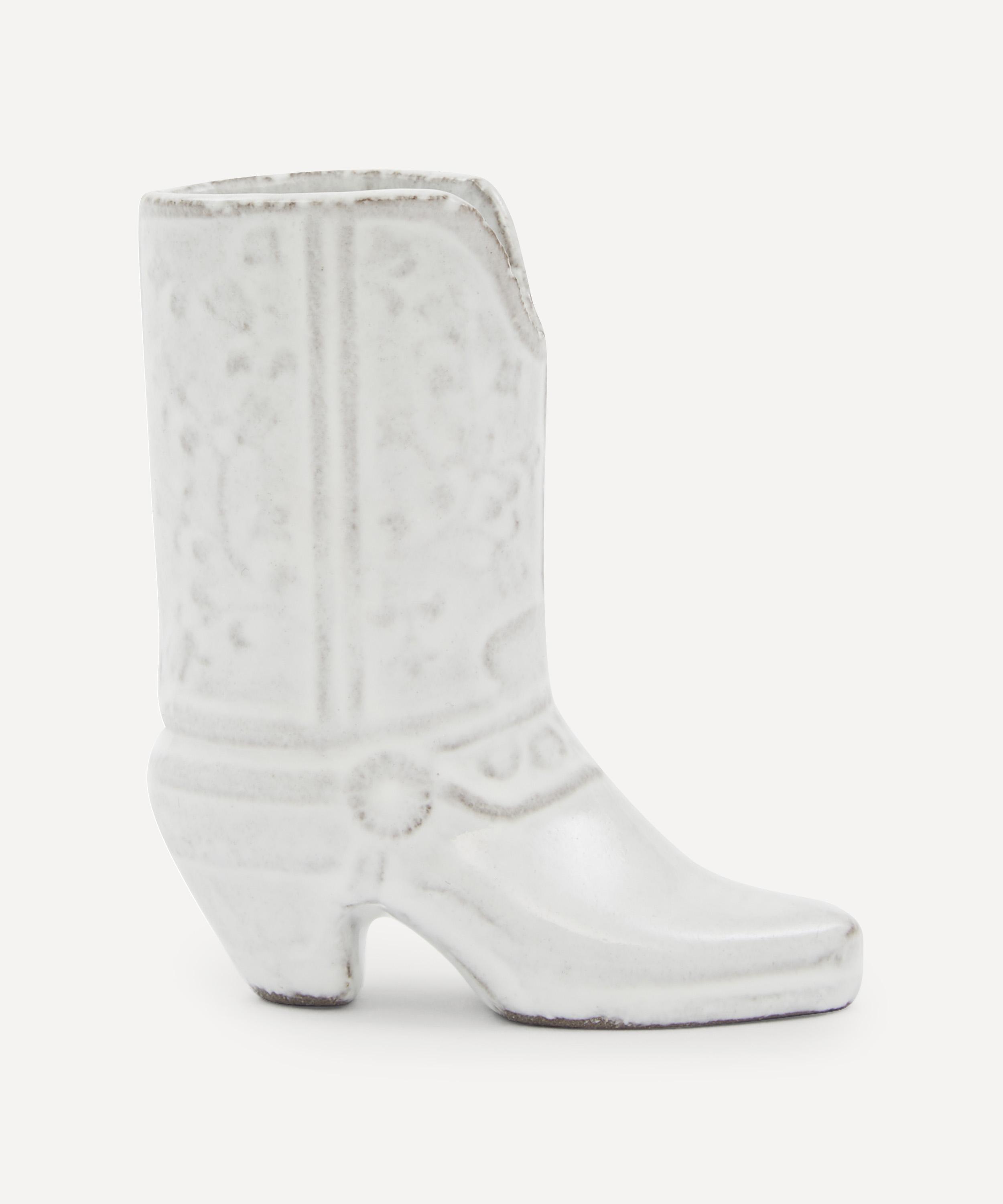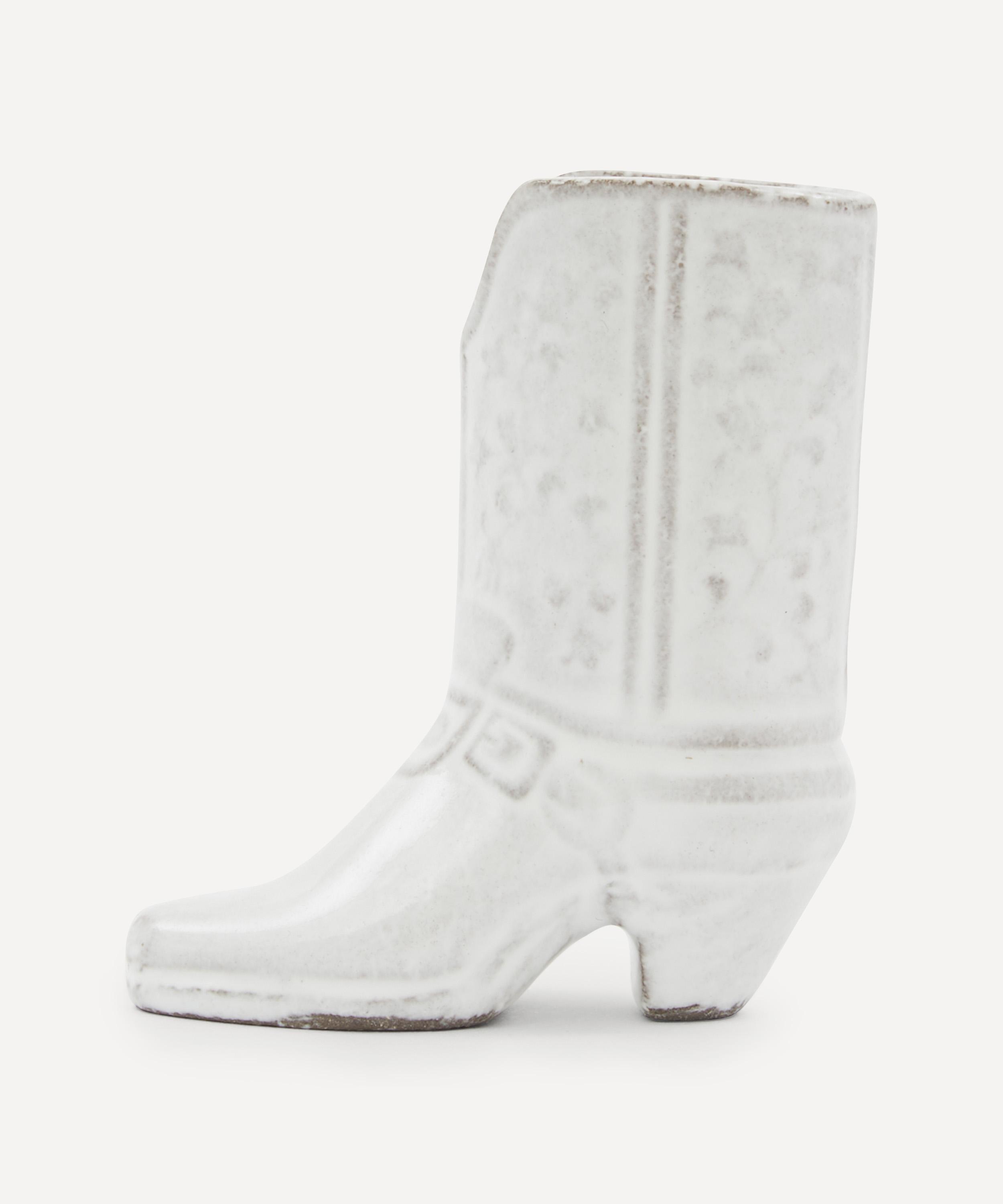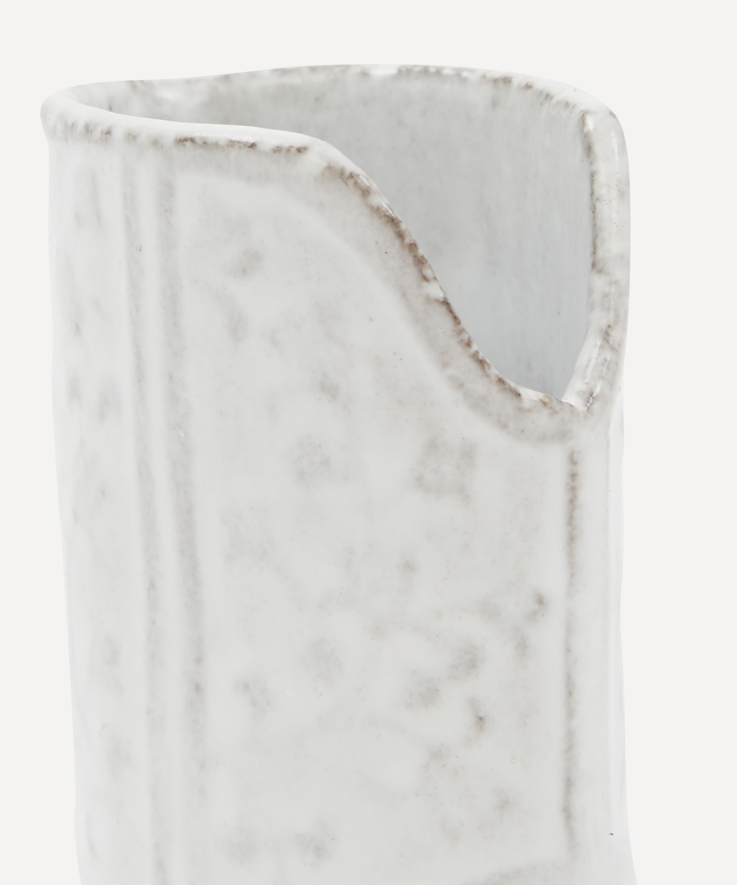 Votary of pre-industrial fabrication, Astier de Villatte is celebrated for being the one and only studio in Paris to hold and harbour the traditions of artisanal ceramic production. Restoring the ancestral systems of moulding and stamping, the small Austin vase is made using techniques from the Middle Ages which involve moulding a sheet of handmade clay, double firing the ‘biscuit’ piece and glazing the product in white enamel – a lengthy process that requires a drying time of up to one month. Characterised by a boot, the vase is engraved with the brand’s signature crest - depicting an interlacing A & V - alongside the initials of one of the 40 master artisans who created it. Each handmade piece tells a beautiful story, it romances and imparts a sense of nostalgia into its owner. Use this perfectly imperfect vase to display verdant fronds or vibrant bouquets.