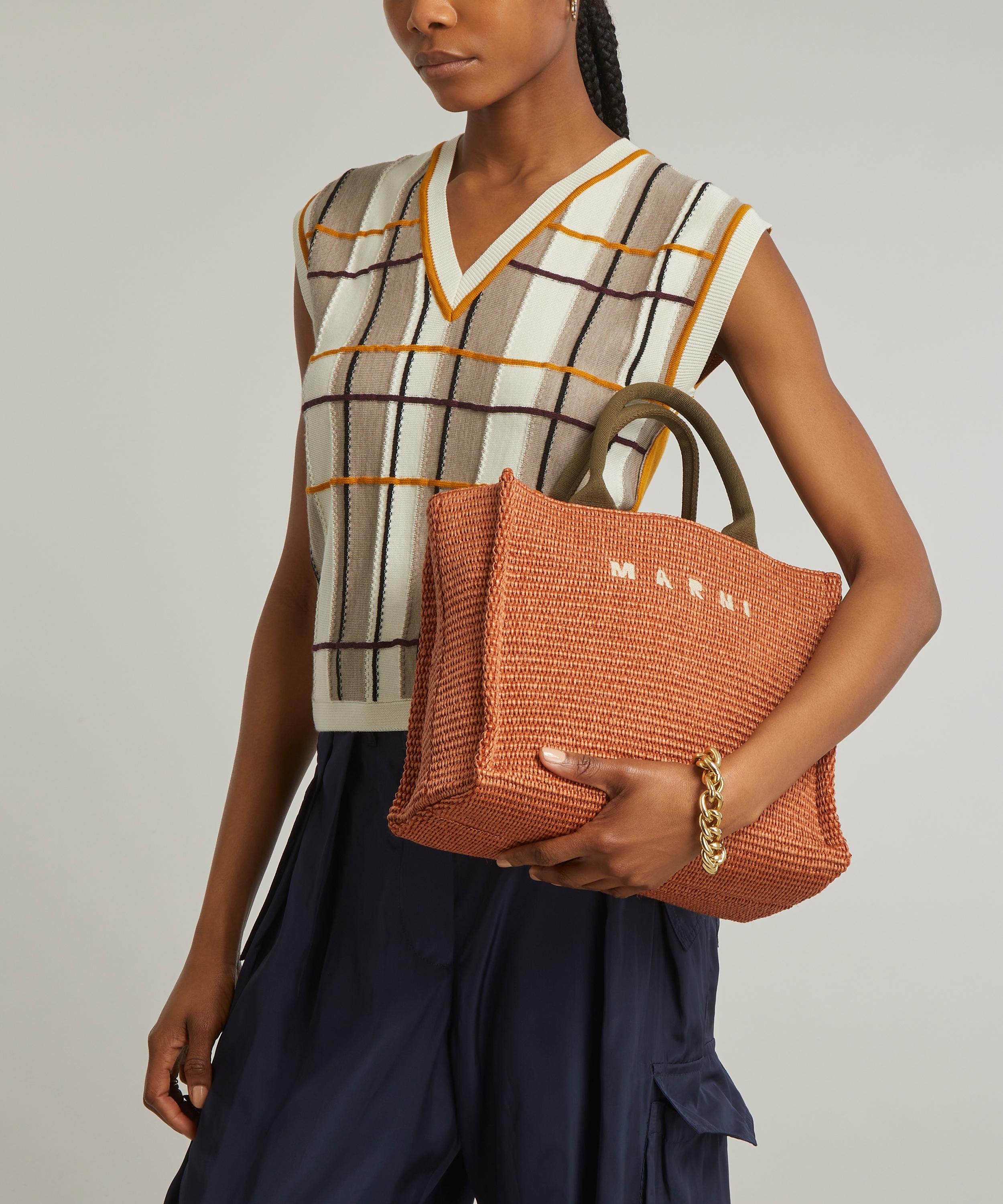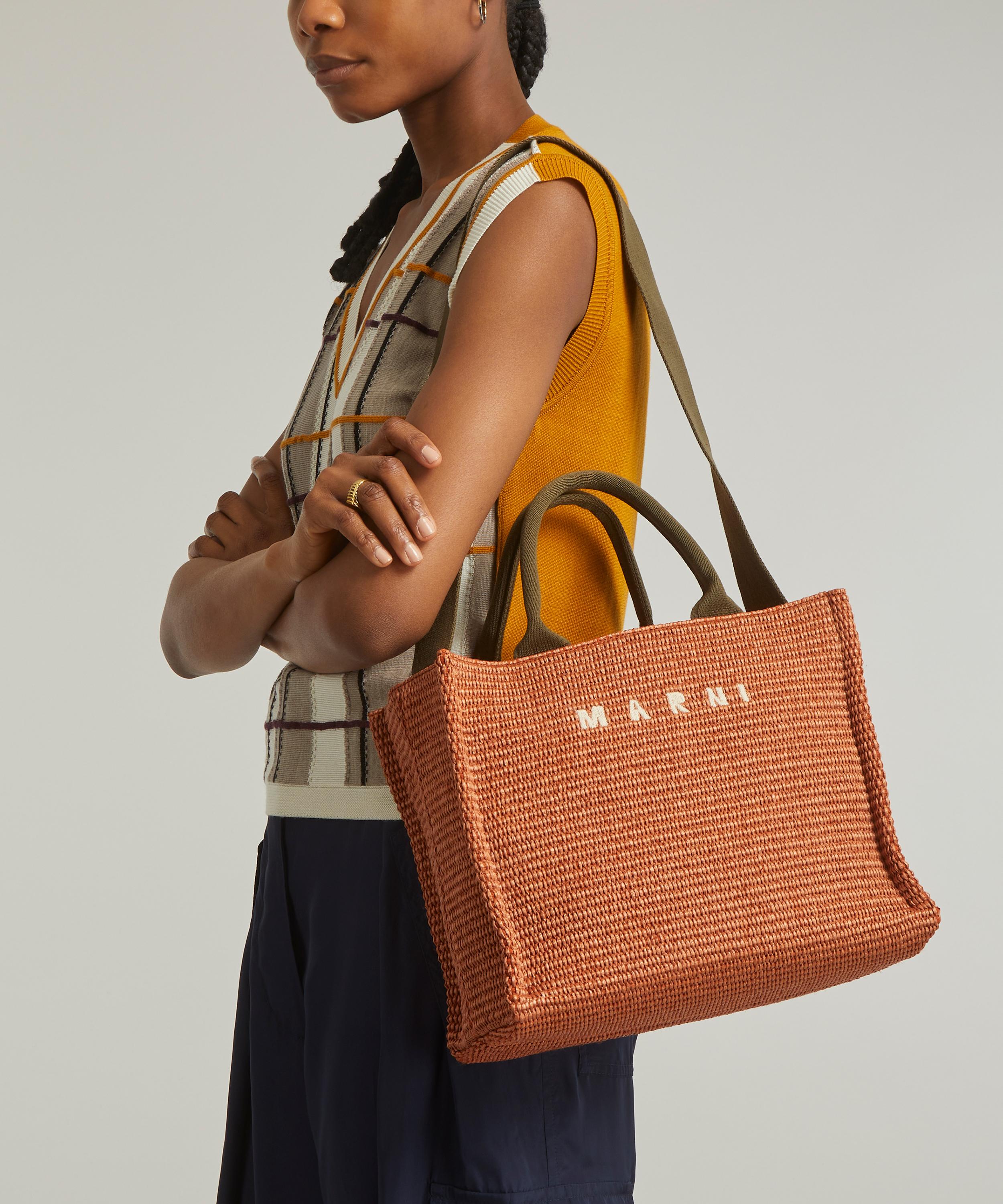 Italian fashion house Marni presents the mini basket tote bag, crafted from a raffia-effect weave set to infuse your off-duty edit with an artisanal flair.