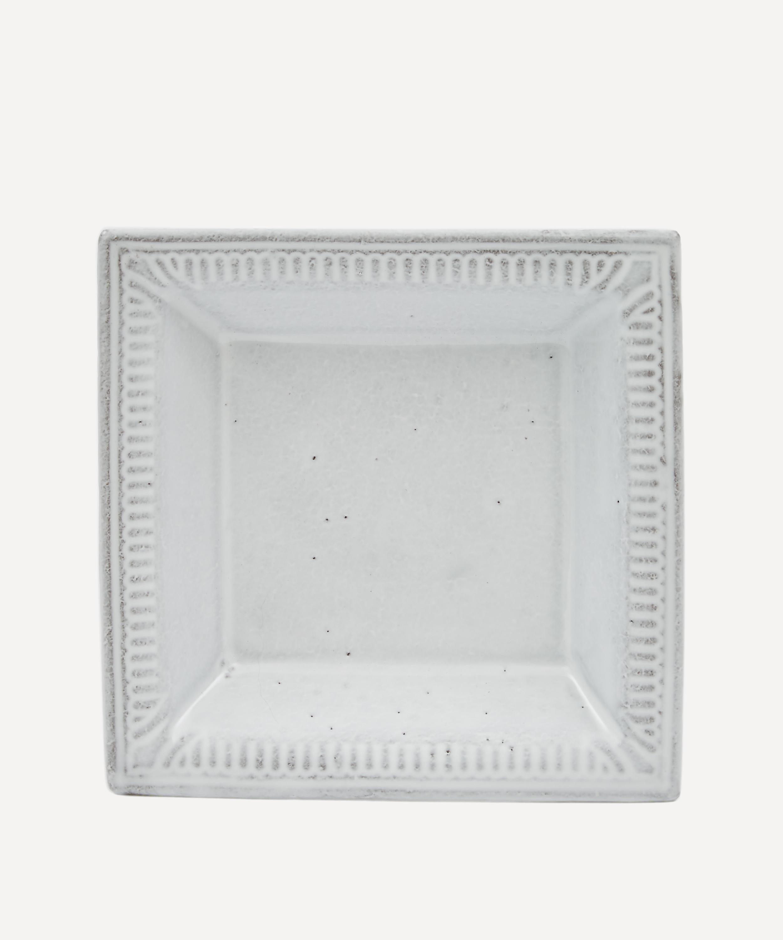 Votary of pre-industrial fabrication, Astier de Villatte is celebrated for being the one and only studio in Paris to hold and harbour the traditions of artisanal ceramic production. Restoring the ancestral systems of moulding and stamping, the Claudine dish is made using techniques from the Middle Ages which involve moulding a sheet of handmade clay, double firing the ‘biscuit’ piece and glazing the product in white enamel – a lengthy process that requires a drying time of up to one month. Characterised by a small, square silhouette, exposed clay and a decorative ringed rim, the dish is engraved with the brand’s signature crest – depicting an interlacing A & V – alongside the initials of one of the 40 master artisans who created it. Each handmade piece tells a beautiful story, it romances and imparts a sense of nostalgia into its owner. Display it alongside other dishes in the collection to breathe an air of authenticity into your table setting.