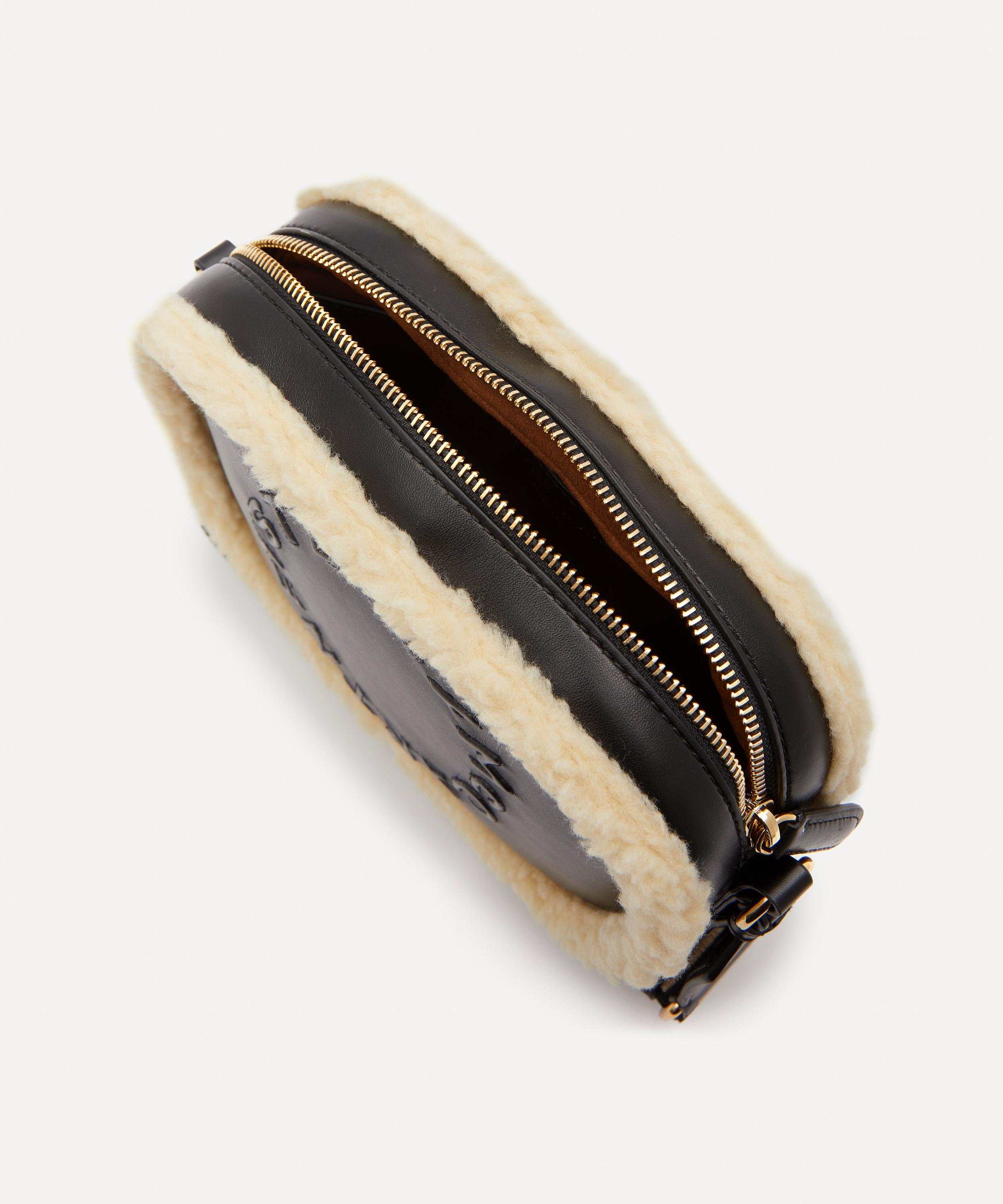 Consciously crafted from vegan leather with a faux teddy trim, this style presents a casual silhouette that can be worn cross-body or over the shoulder. Complete with an internal slip pocket and a detachable logo strap, this piece will make a versatile addition to any accessory edit.