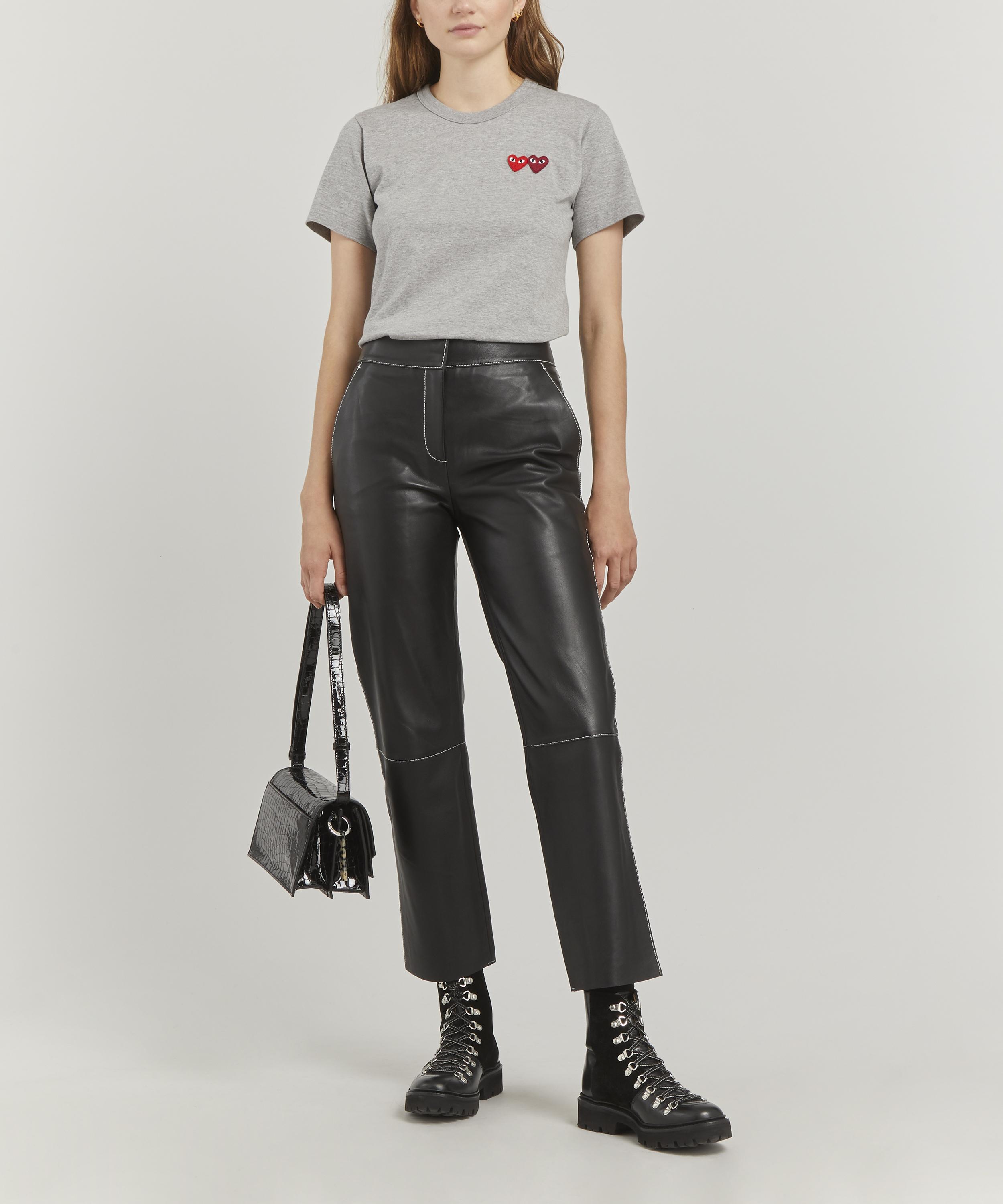 Comme des Garçons PLAY creates well-tailored wardrobe basics – often the brand’s ubiquitous heart-with-eyes logo patch can be spotted peeping from the piece. This short-sleeve t-shirt is cut from cotton in a crew-neck style. The heart logo appears doubled up at the chest - pair with cropped leather trousers and white sneakers.