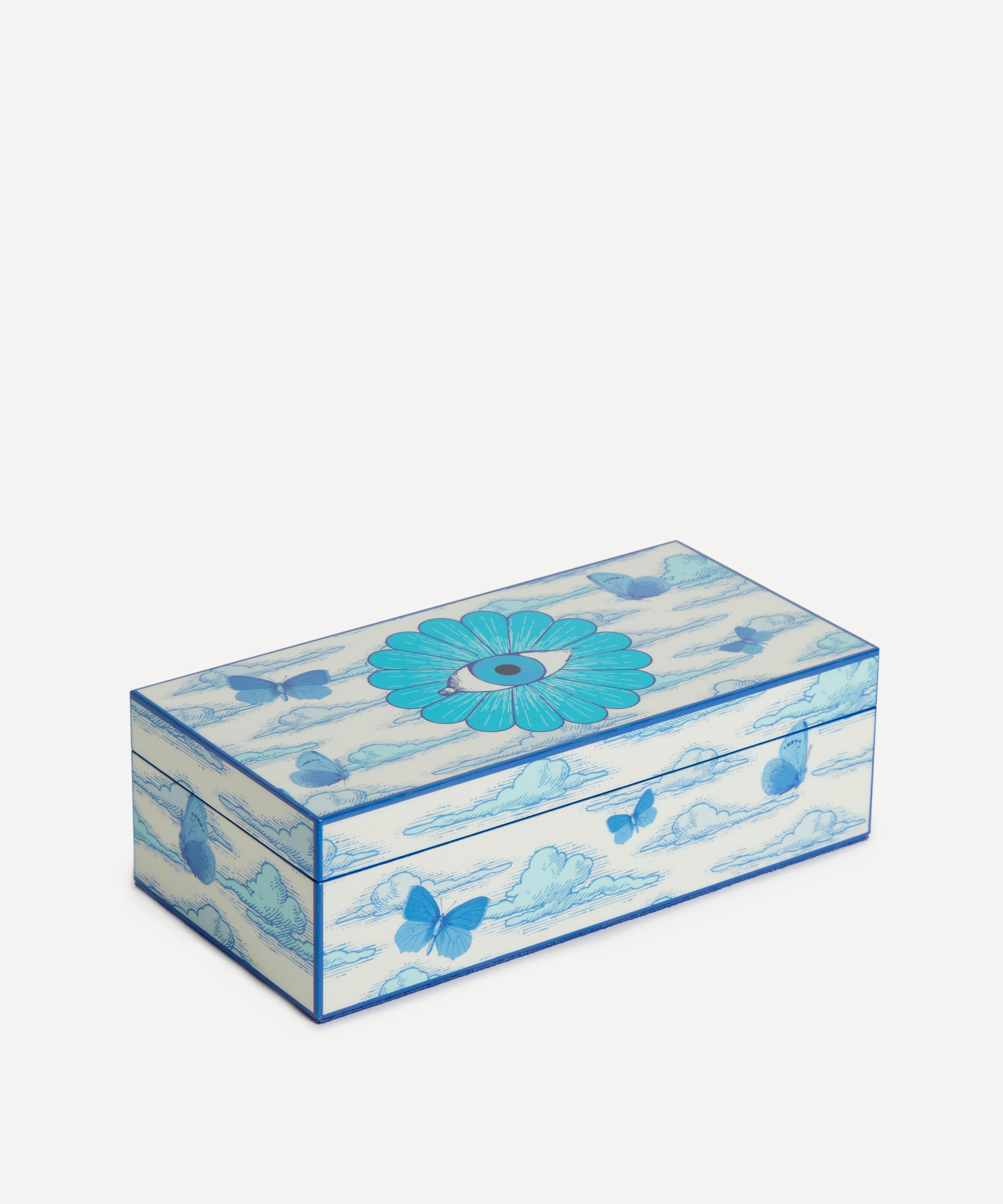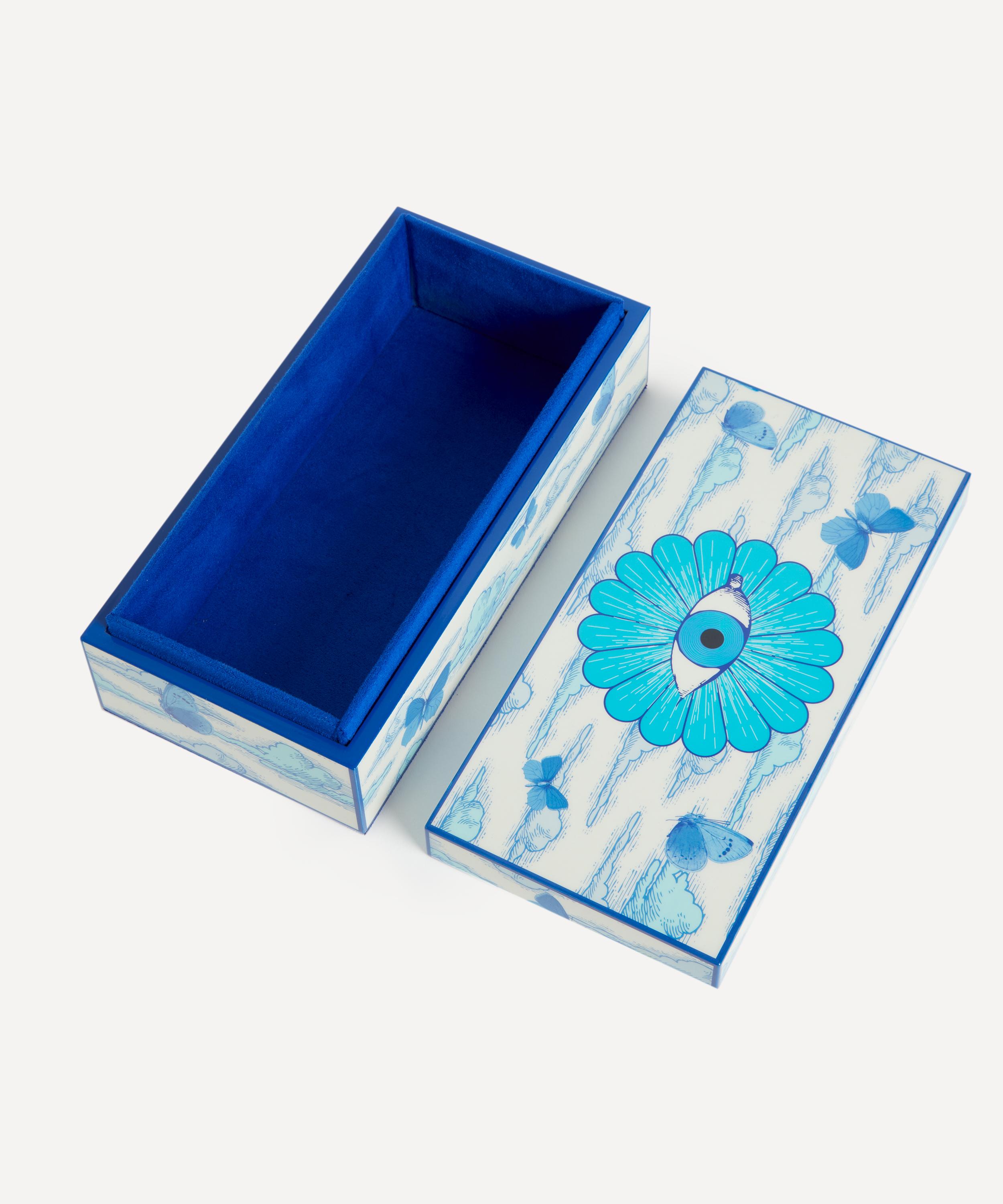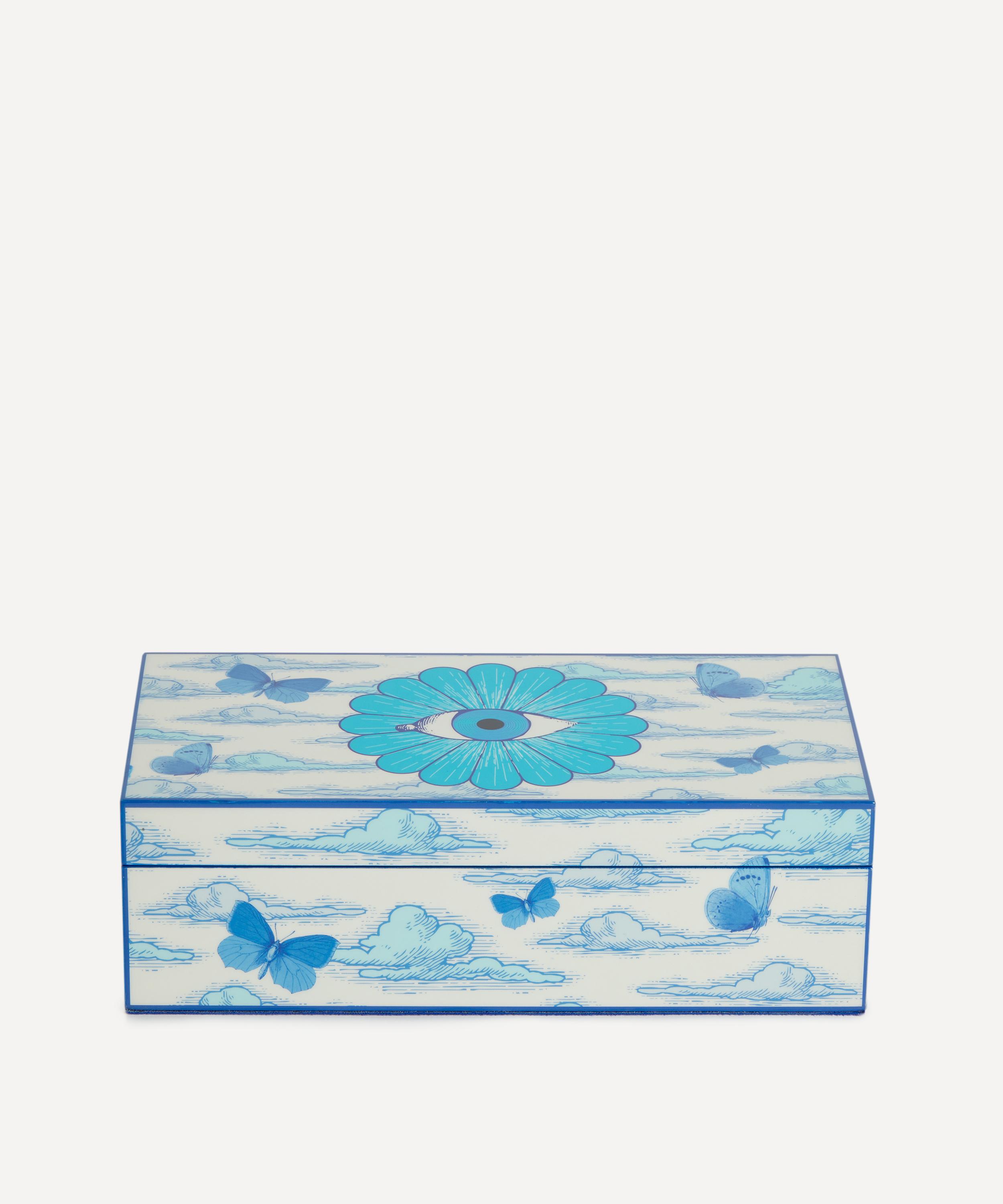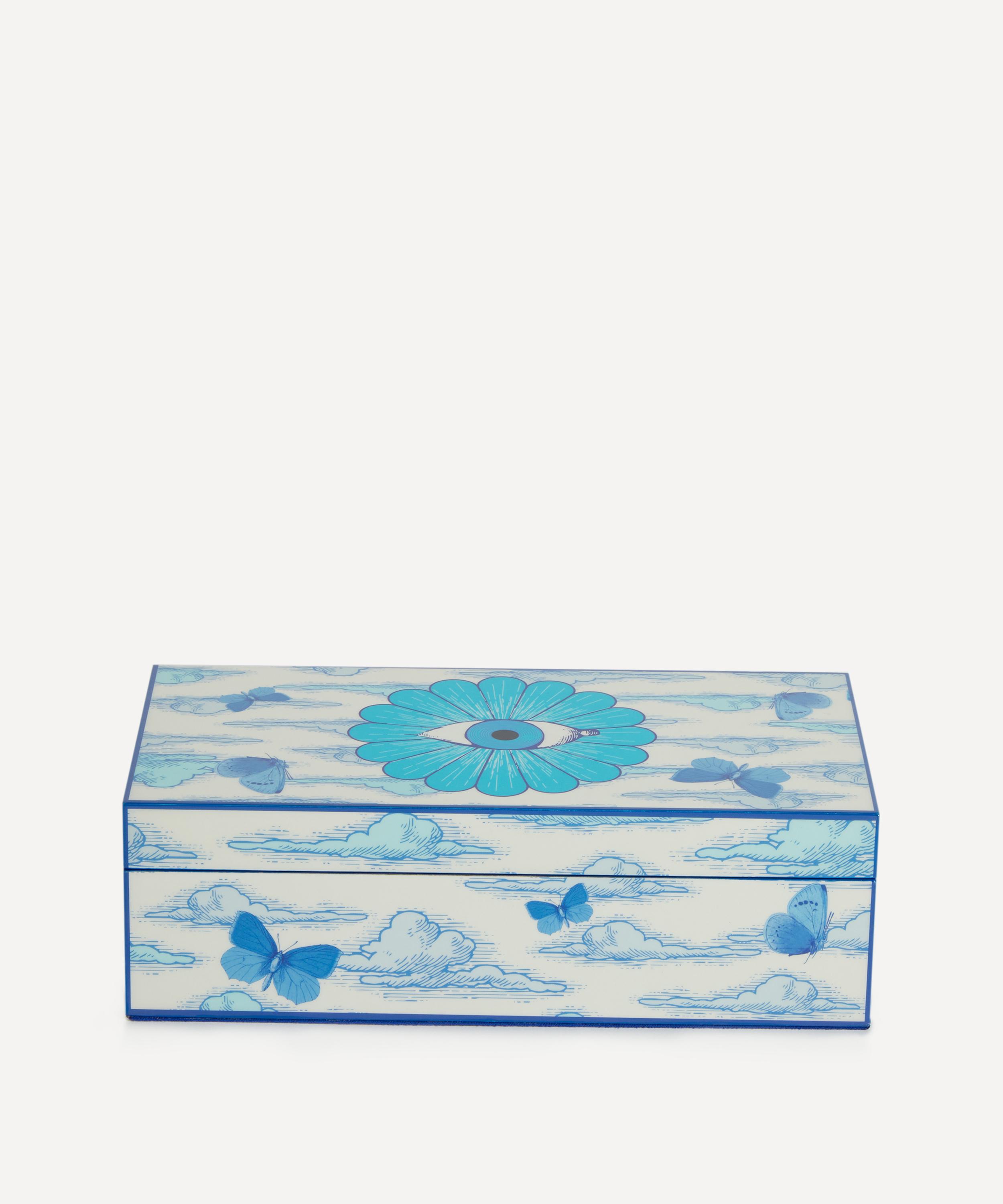 Presenting a mesmerising delft-toned dreamscape, this surreal box is crafted from glossy lacquer and finished with a luxe blue velvet lining. This head-turner makes a perfect hostess gift, or fill with trinkets and treasures for a statement focal point to elevate somewhat ordinary interiors.