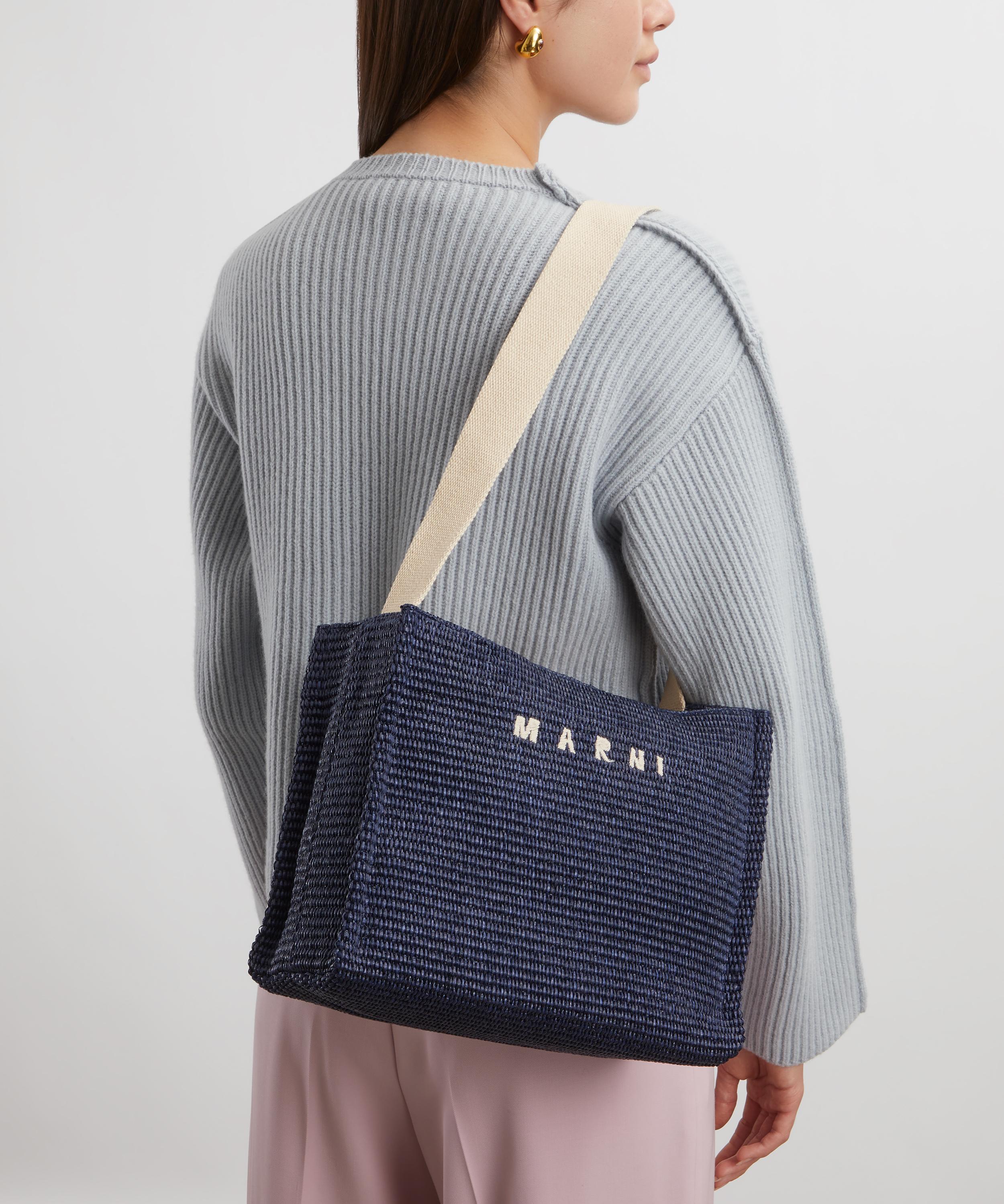 Italian fashion house Marni presents the East West tote bag, a mini shopper crafted from a raffia-effect weave set to infuse your off-duty edit with an artisanal flair.