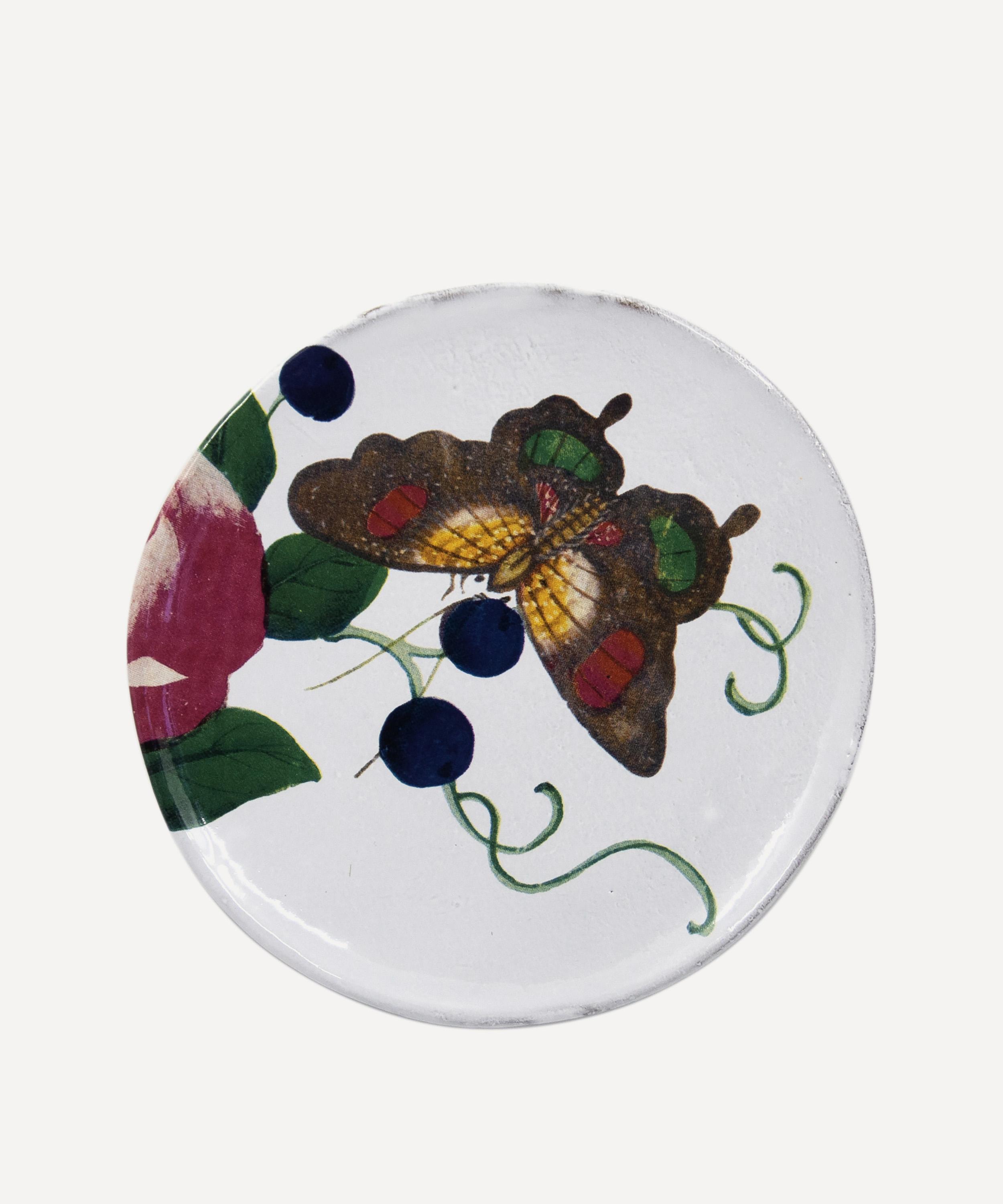 Votary of pre-industrial fabrication, Astier de Villatte is celebrated for being the one and only studio in Paris to hold and harbour the traditions of artisanal ceramic production. Restoring the ancestral systems of moulding and stamping, this plate is made using handcrafting techniques from the Middle Ages which involve moulding a handmade sheet of clay, double firing the ‘biscuit’ piece and glazing the product in white enamel – a lengthy process that involves a drying time of up to one month. Characterised by a charming botanical scene to the centre, this plate is engraved with the brand’s signature crest - depicting an interlacing A & V - alongside the initials of one of the 40 master artisans who created it. Each handmade piece tells a beautiful story, it romances and imparts a sense of nostalgia into its owner. Arrange alongside glazed bowls and plates in the collection to breathe an air of authenticity into your table setting.