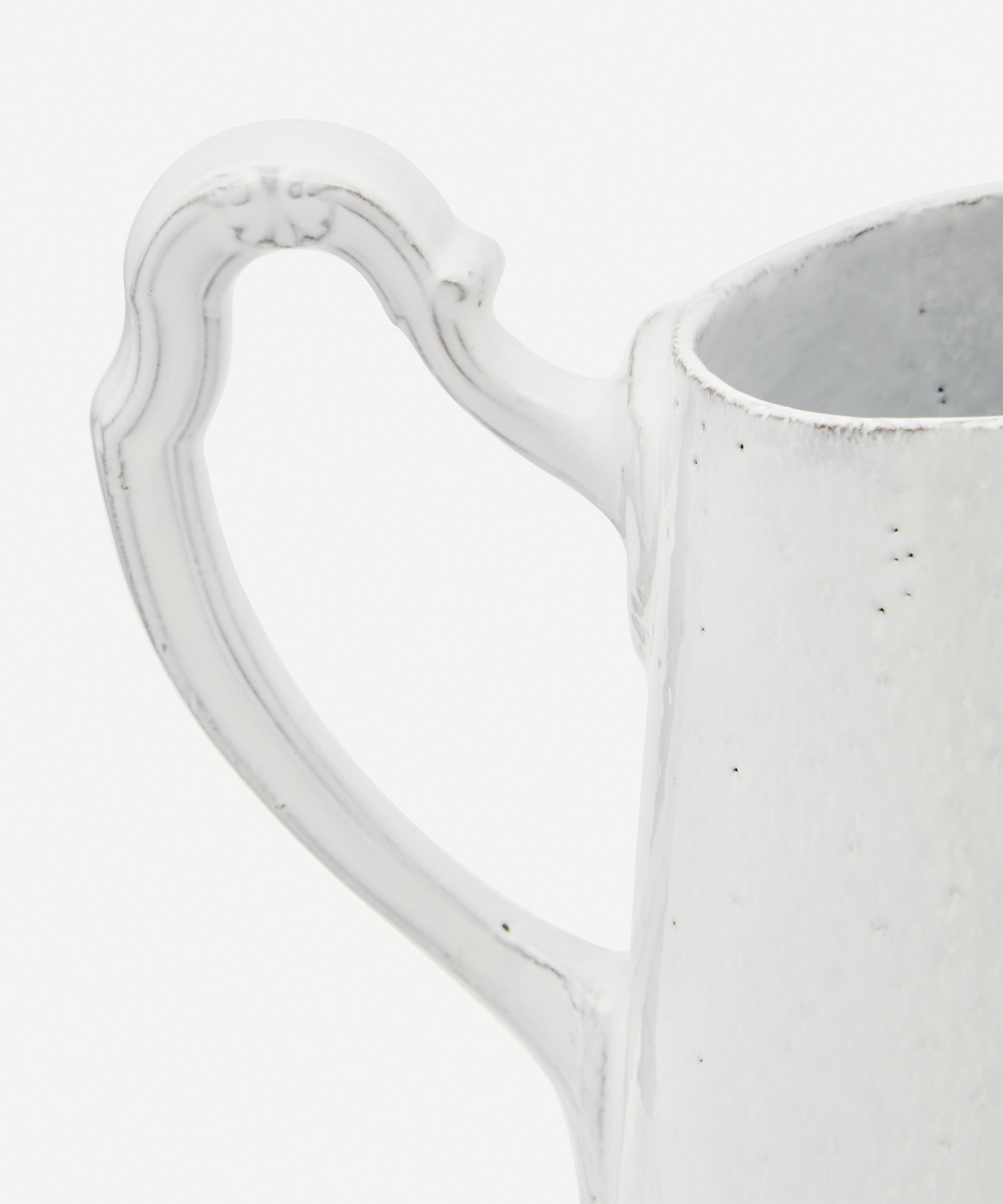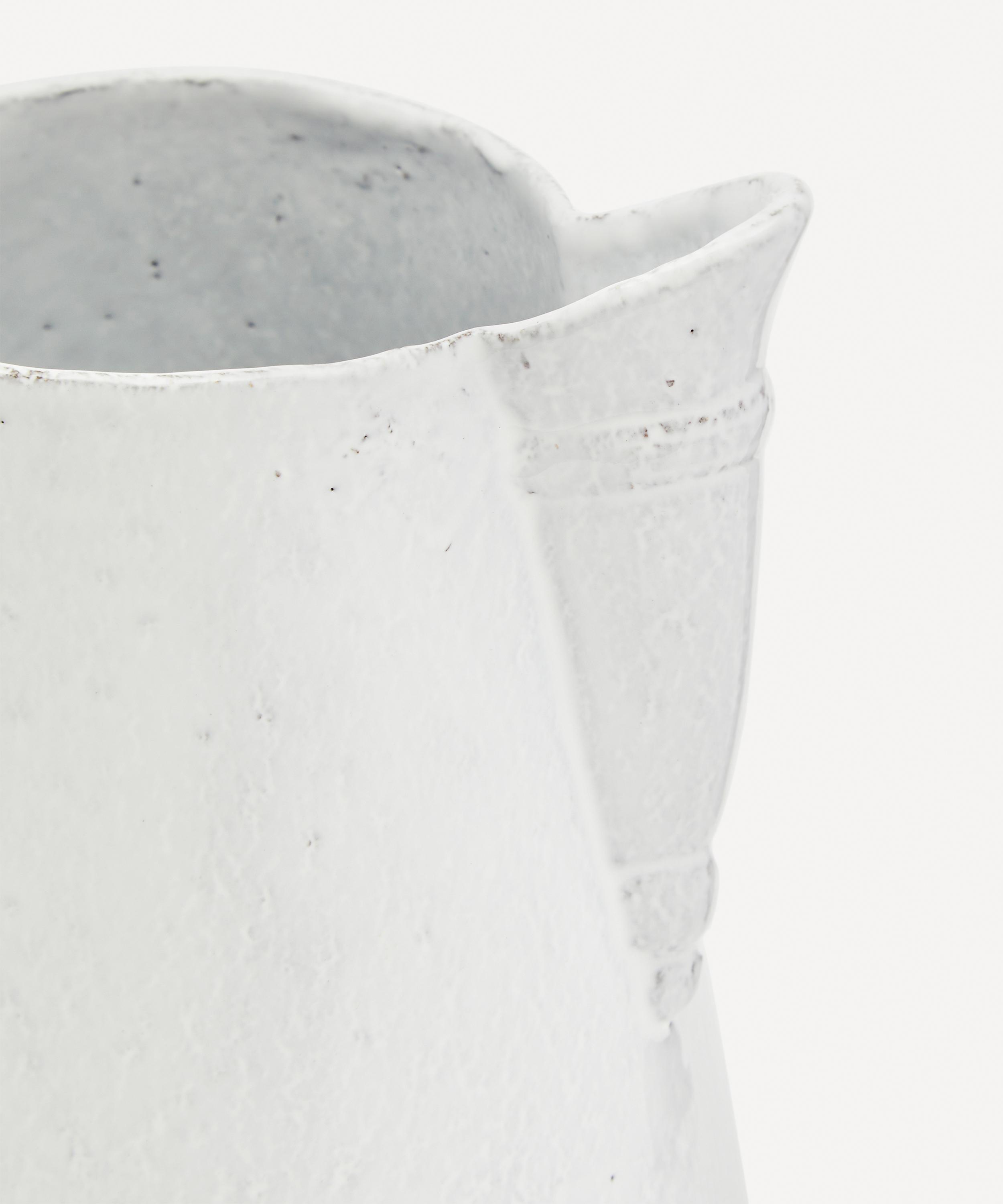 Votary of pre-industrial fabrication, Astier de Villatte is celebrated for being the one and only studio in Paris to hold and harbour the traditions of artisanal ceramic production. Restoring the ancestral systems of moulding and stamping, the Louis XV pitcher is made using techniques from the Middle Ages which involve moulding a sheet of handmade clay, double firing the ‘biscuit’ piece and glazing the product in white enamel – a lengthy process that requires a drying time of up to one month. Characterised by intricate indentations, small holes and a sharp spout, this perfectly imperfect jug is engraved with the brand’s signature crest - depicting an interlacing A & V - alongside the initials of one of the 40 master artisans who created it. Each handmade piece tells a beautiful story, it romances and imparts a sense of nostalgia into its owner. Arrange with other serveware in the collection to breathe an air of authenticity into your dining collection.
