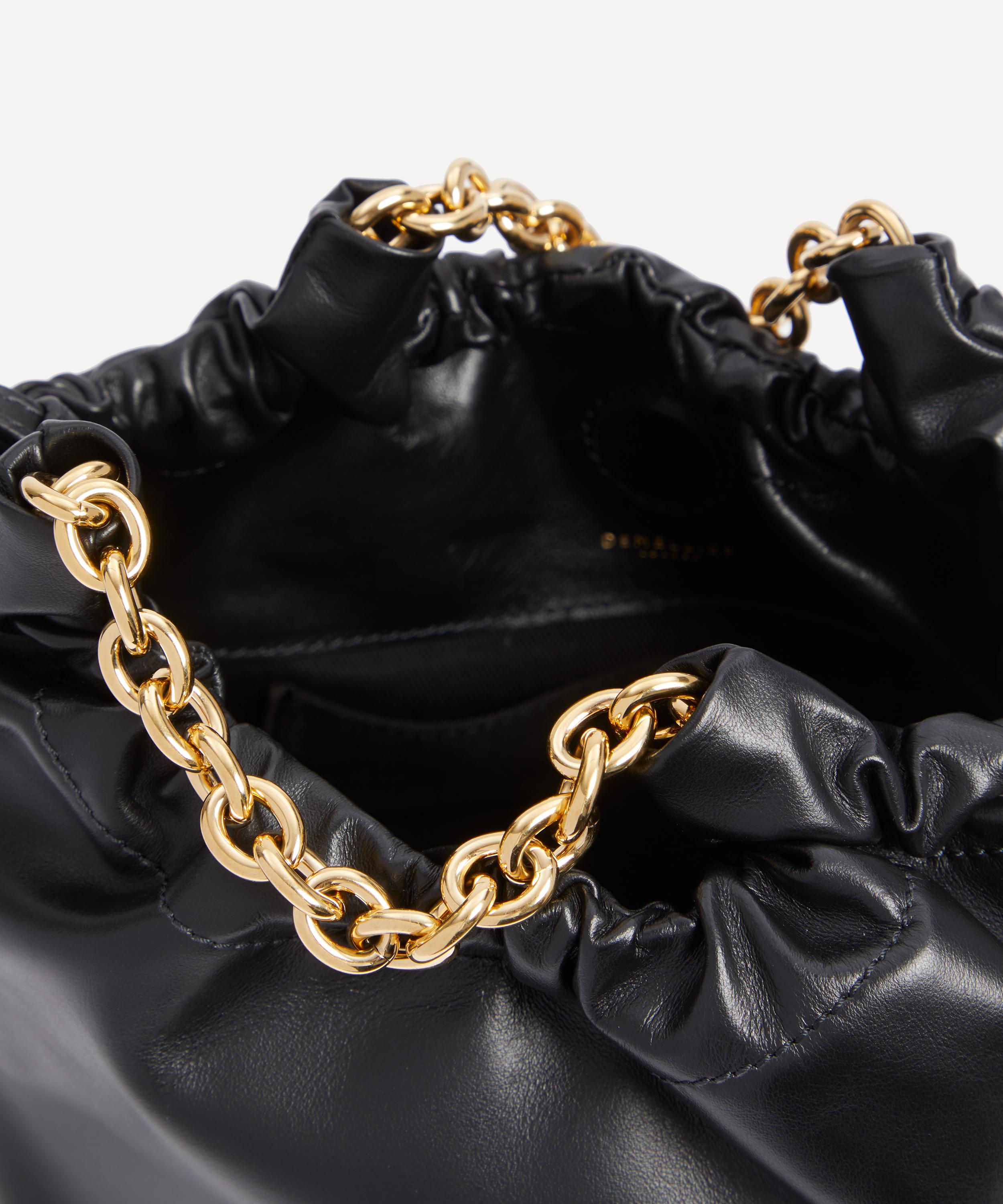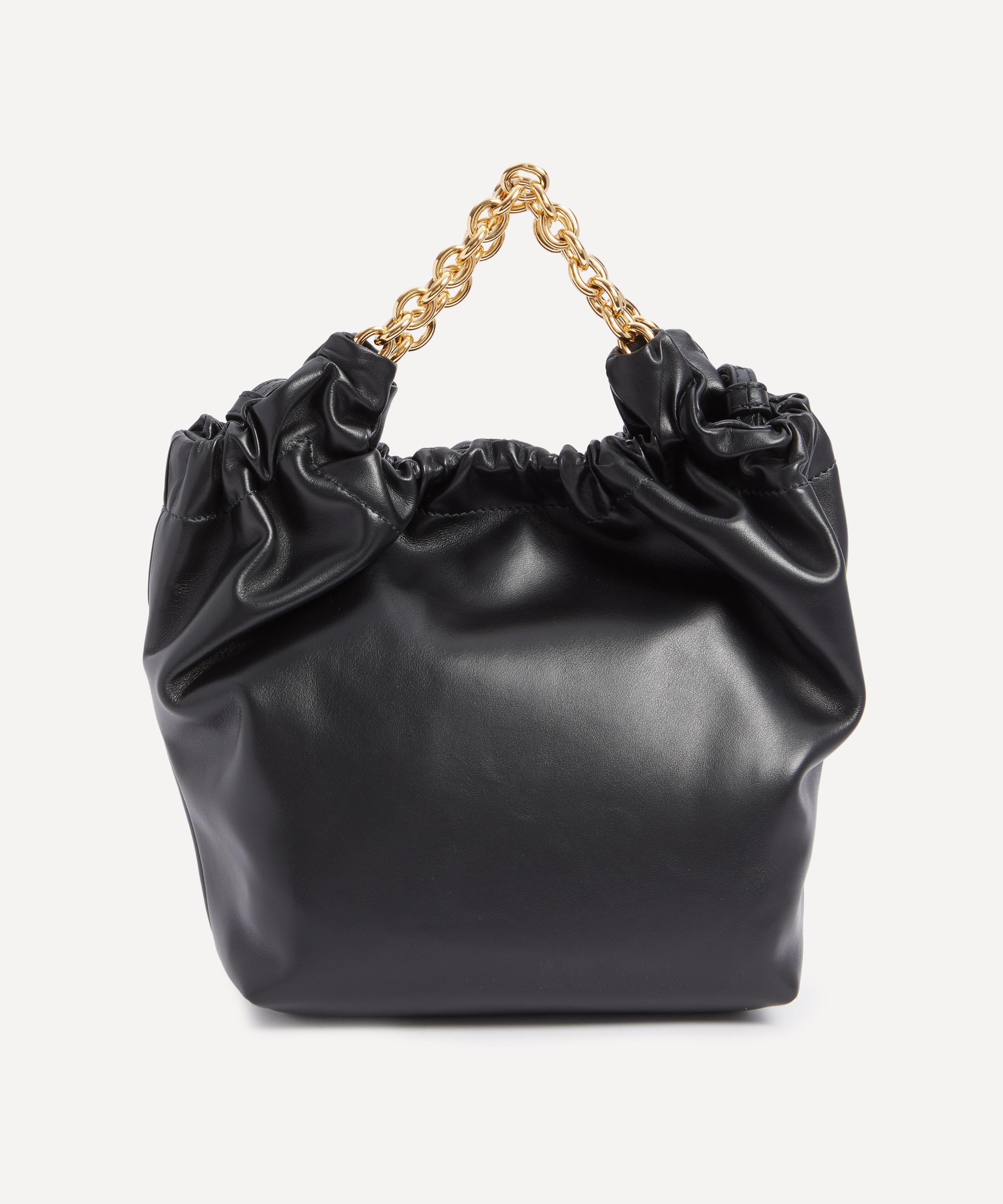 Showcasing a modern yet timeless slouchy silhouette with ruched details across the top, the elegant gold-tone chain top handle allows for easy carrying. The perfect size to carry all your essentials, its roomy interior includes an internal magnet closure as well as a zip pocket.