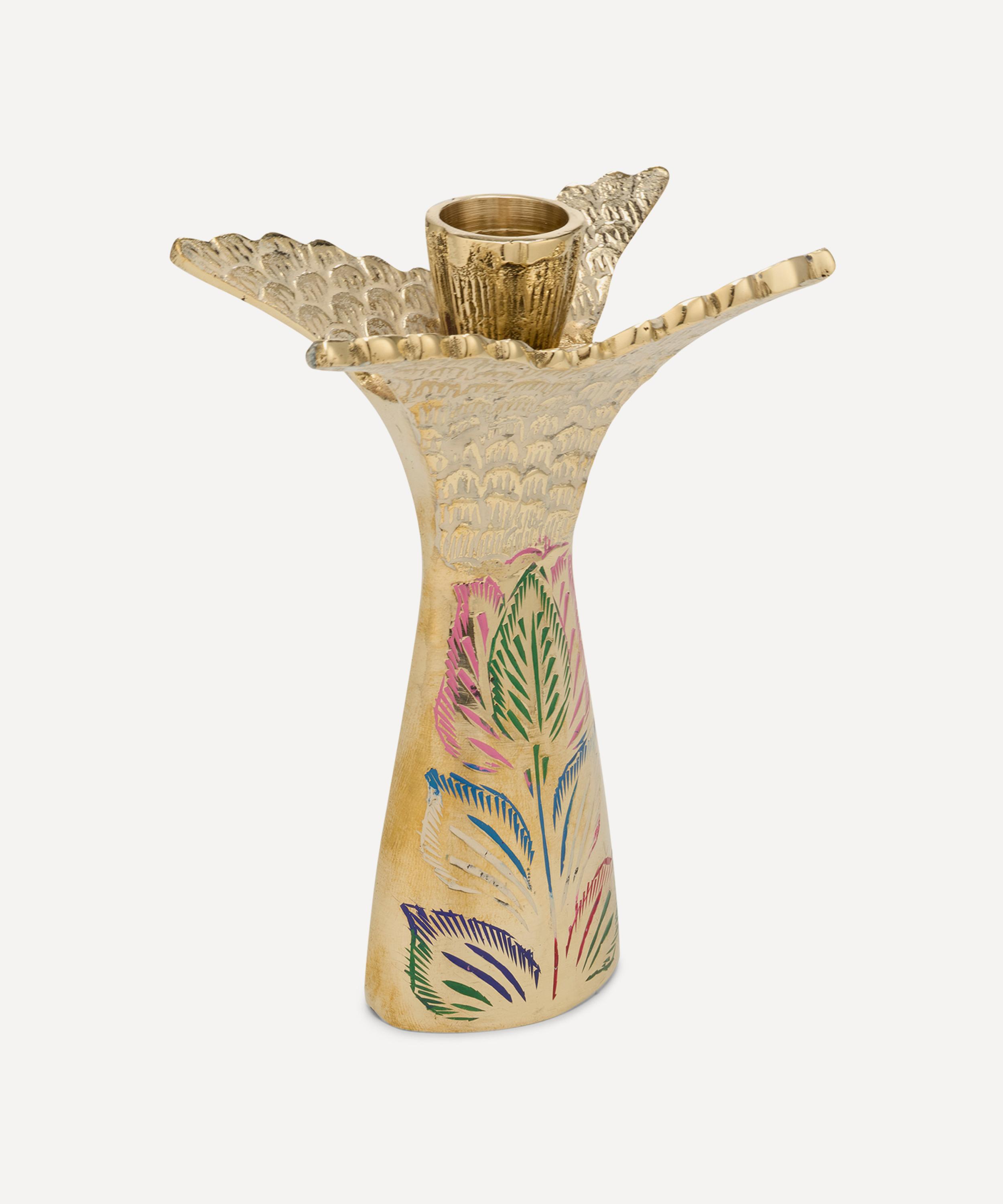 This candle holder from Doing Goods is made from gleaming gold-tone brass and depicts a sculptural fish tail with floral detailing for an intricate finish. Crafted by artisans from a workshop in India, it embodies the Netherlands-based brand’s passion for global treasure-hunting and supporting local communities. Place it on a mantel or sideboard for a dash of ornate, glimmering elegance.