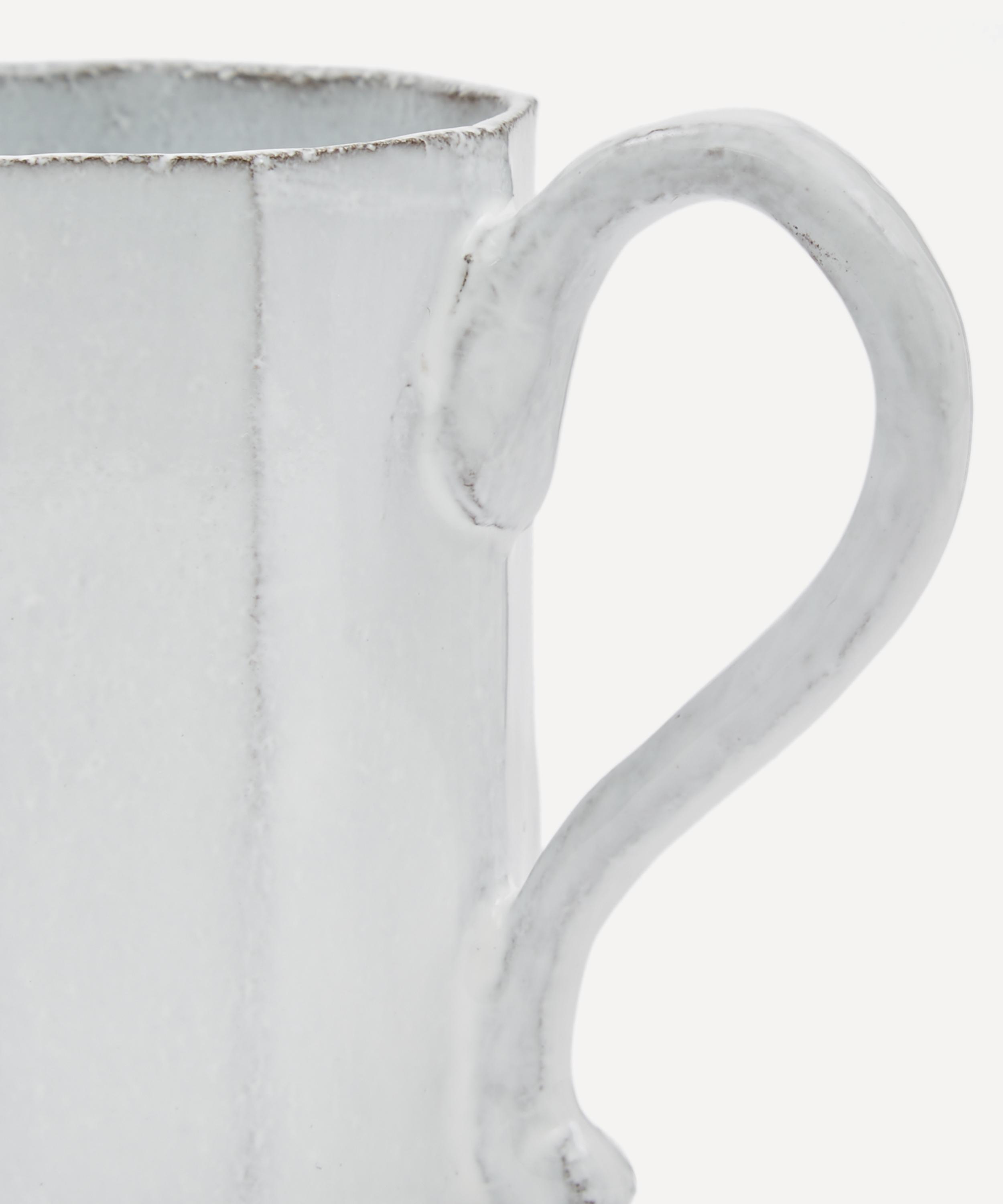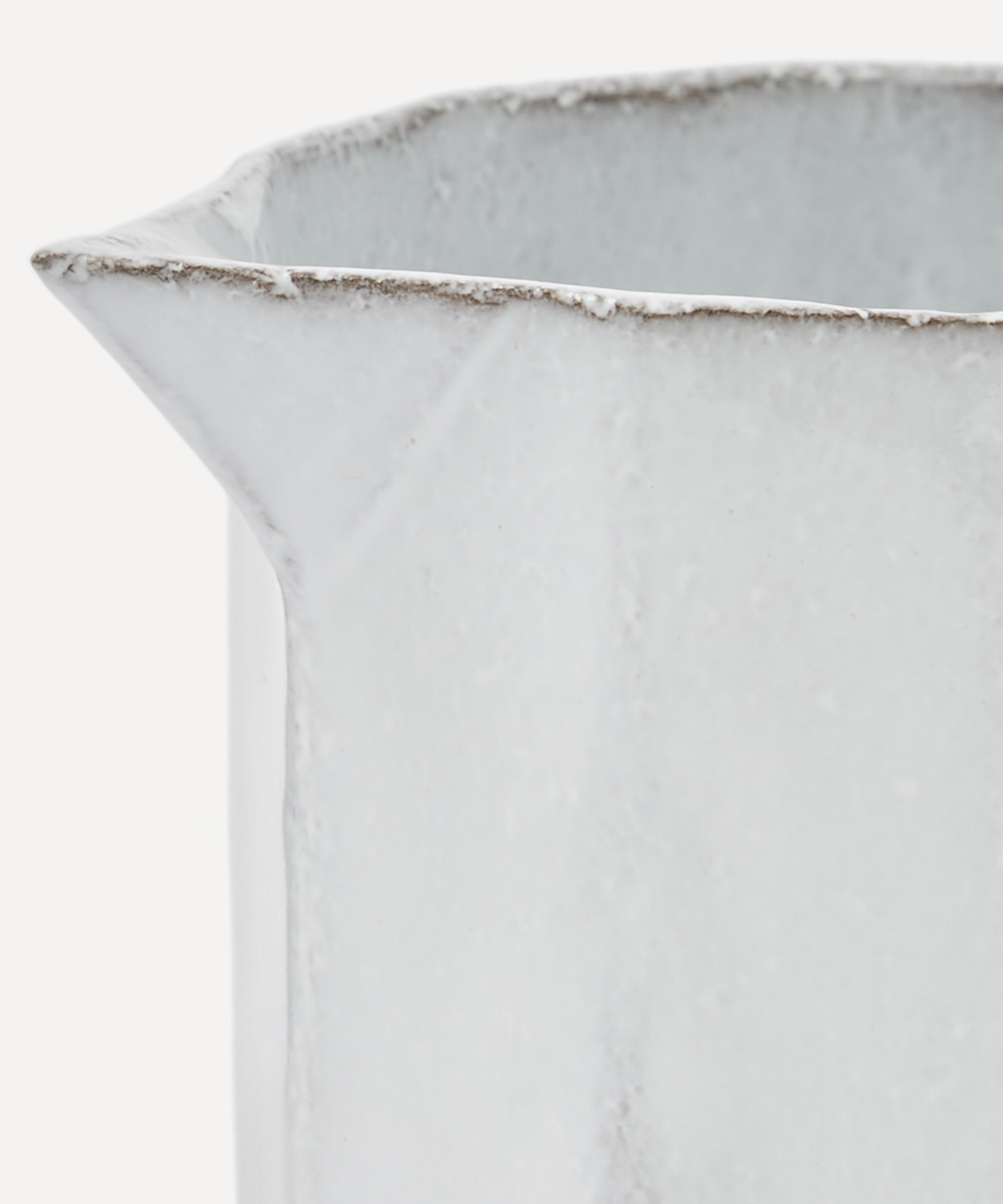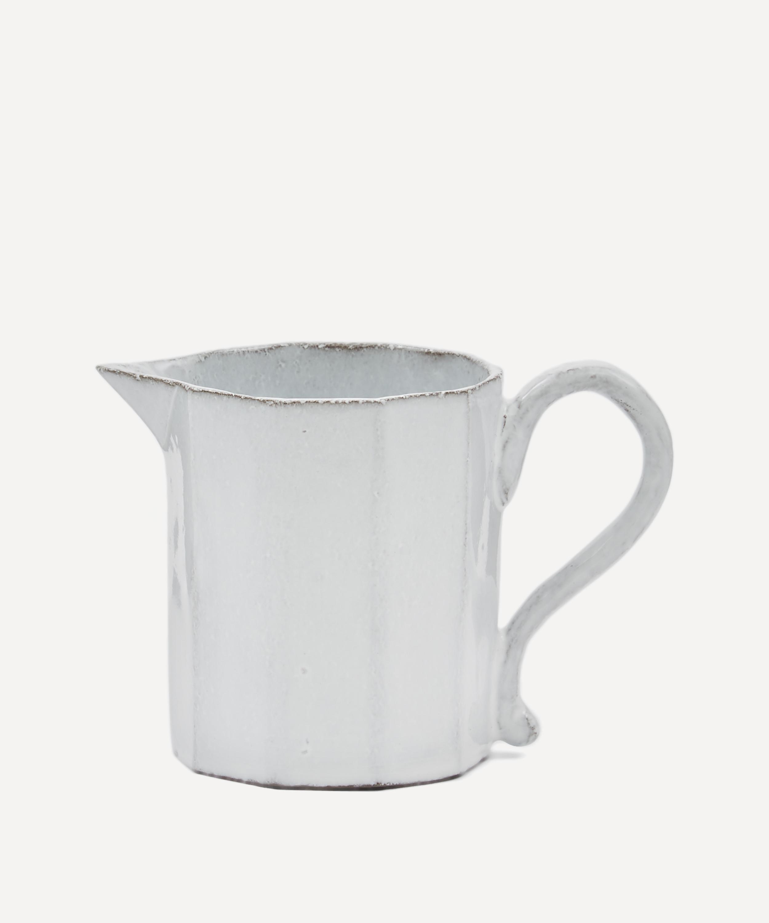 Votary of pre-industrial fabrication, Astier de Villatte is celebrated for being the one and only studio in Paris to hold and harbour the traditions of artisanal ceramic production. Restoring the ancestral systems of moulding and stamping, the Octave pitcher is made using techniques from the Middle Ages which involve moulding a sheet of handmade clay, double firing the ‘biscuit’ piece and glazing the product in white enamel – a lengthy process that requires a drying time of up to one month. Characterised by exposed clay, a multi-faceted silhouette and a flawlessly formed handle, the jug is engraved with the brand’s signature crest – depicting an interlacing A & V – alongside the initials of one of the 40 master artisans who created it. Each handmade piece tells a beautiful story, it romances and imparts a sense of nostalgia into its owner. Display alongside other pieces from the Octave range to breathe an air of authenticity into your table setting.