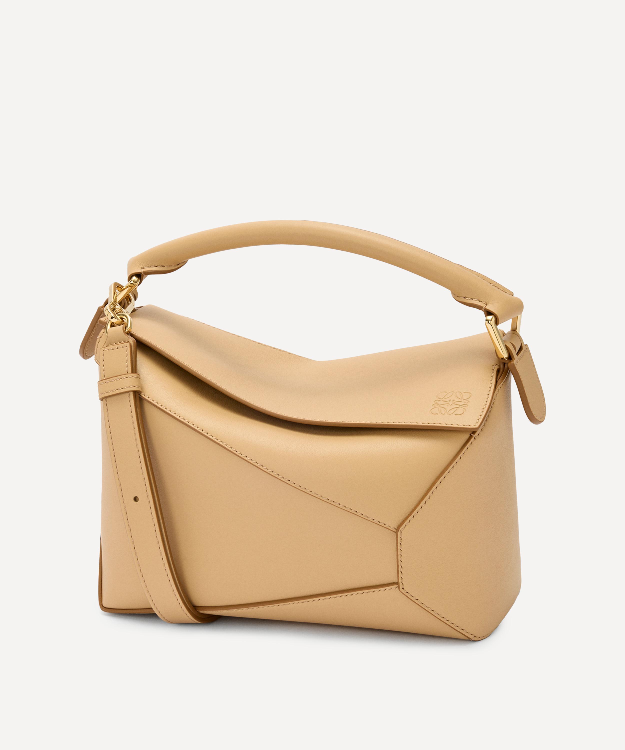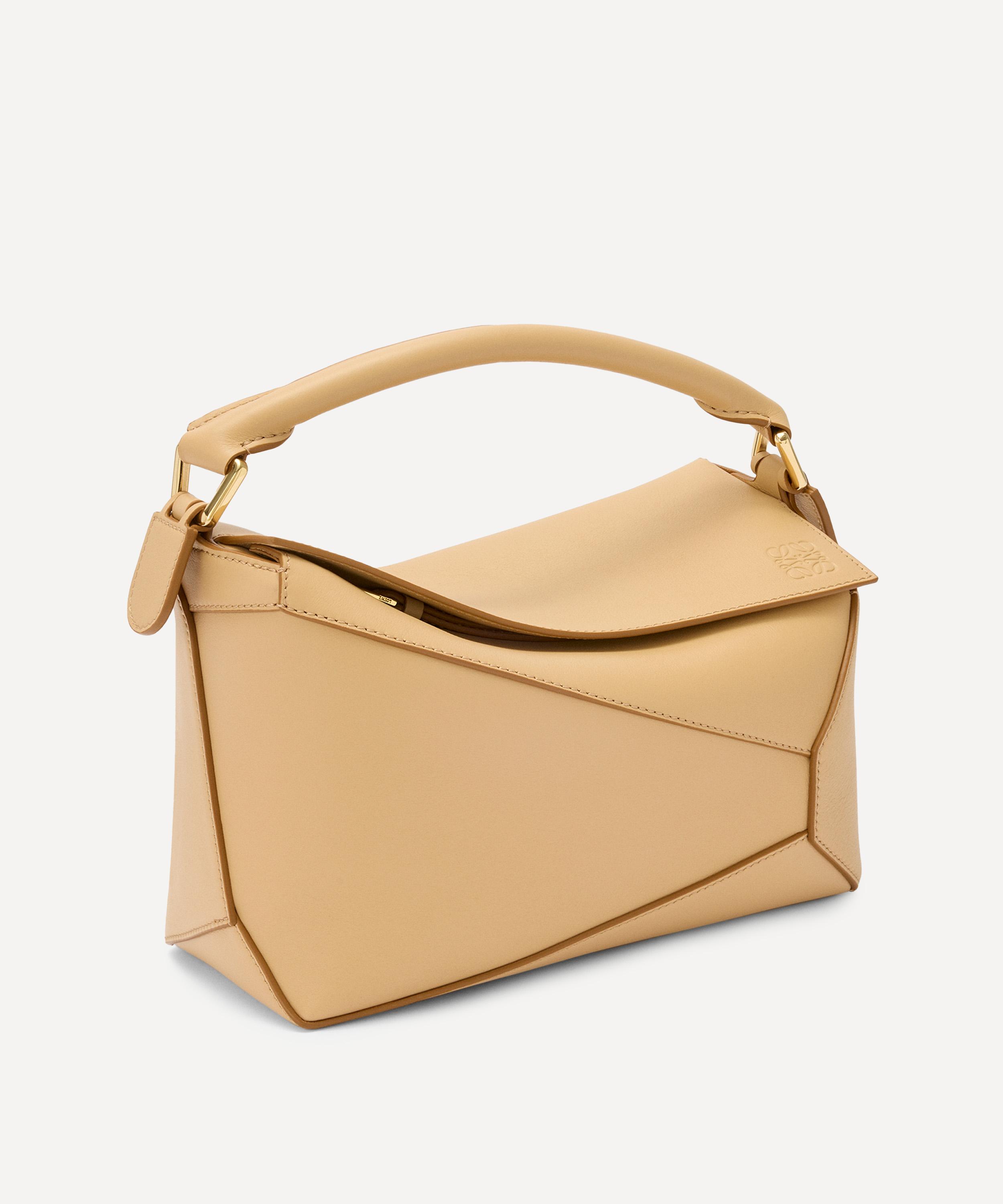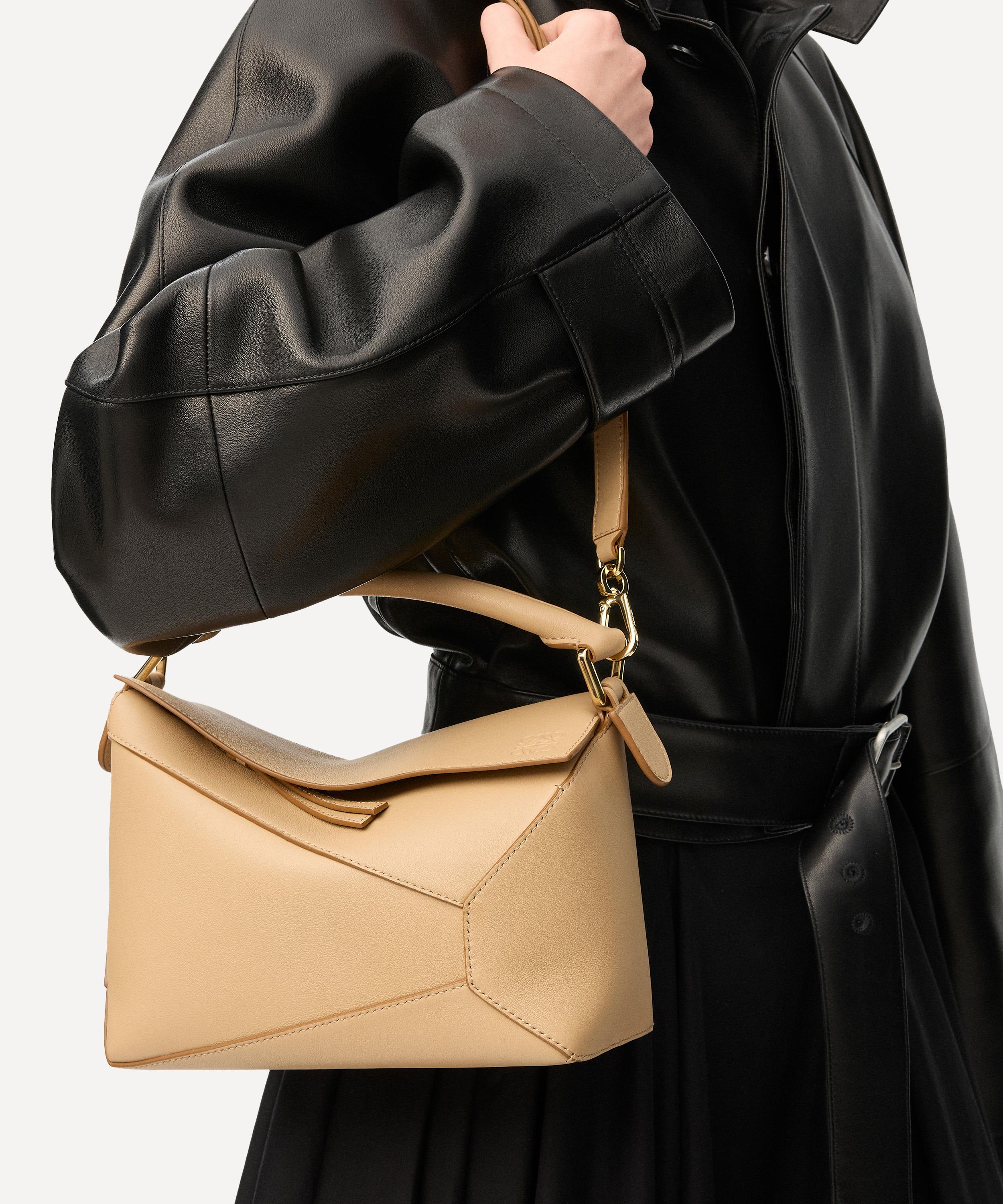 The iconic Puzzle top handle bag from Spanish fashion house Loewe showcases an innovative folding design that can be adapted for any outfit or occasion.
