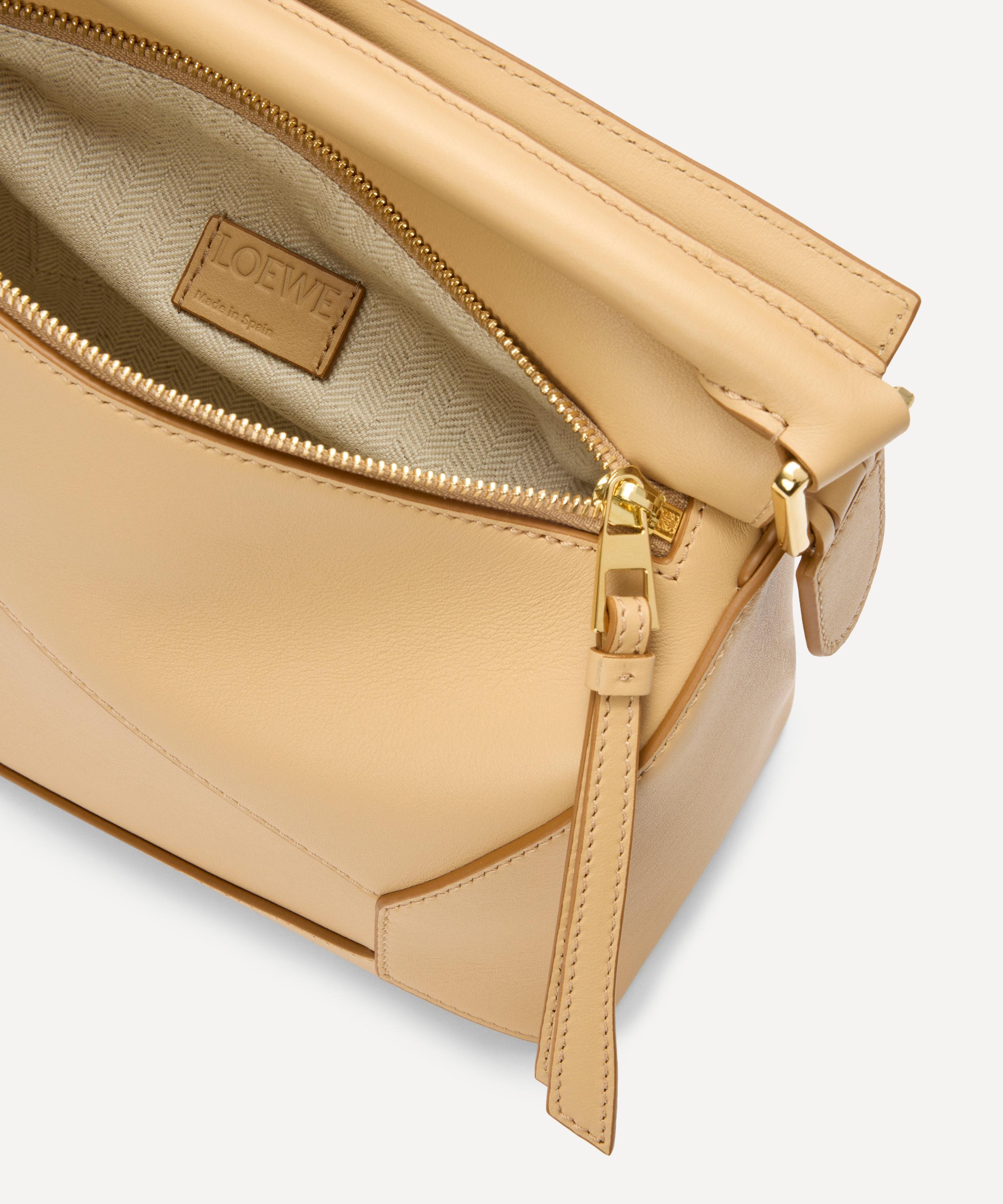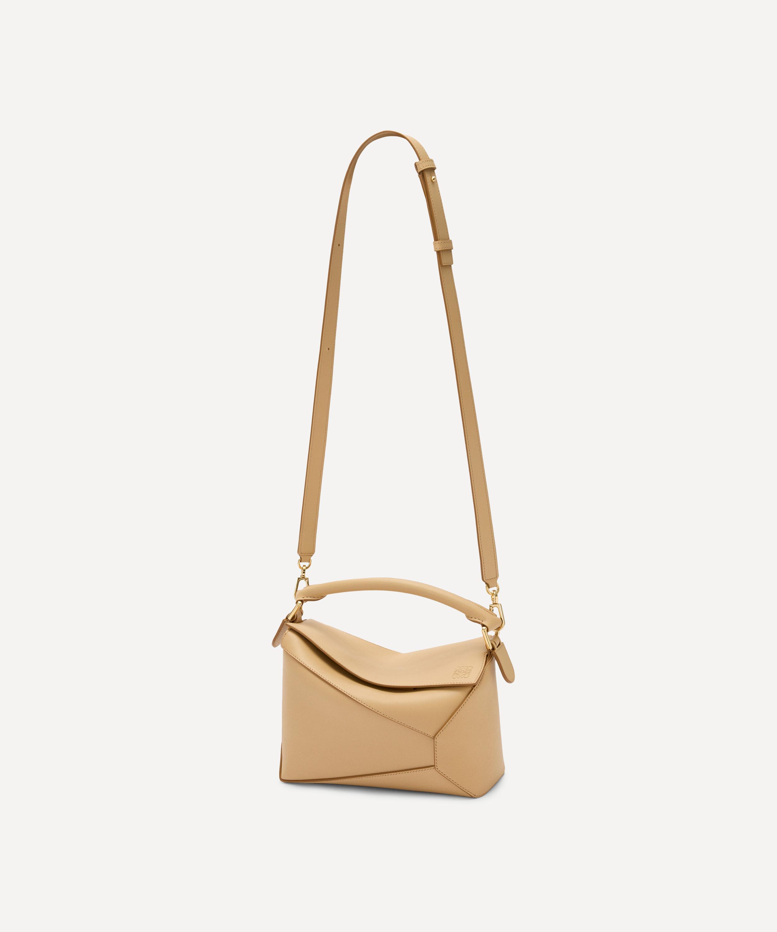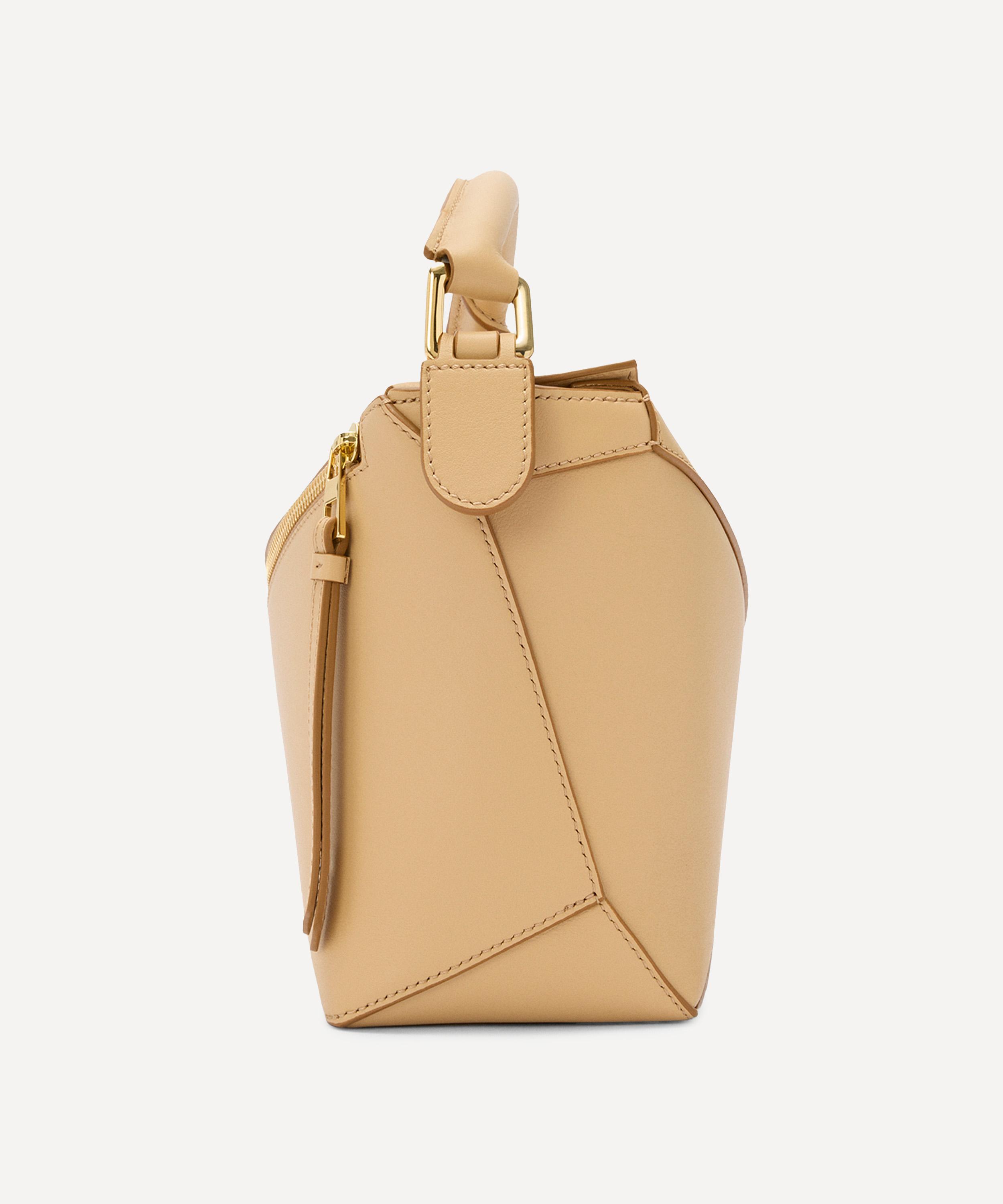 The iconic Puzzle top handle bag from Spanish fashion house Loewe showcases an innovative folding design that can be adapted for any outfit or occasion.