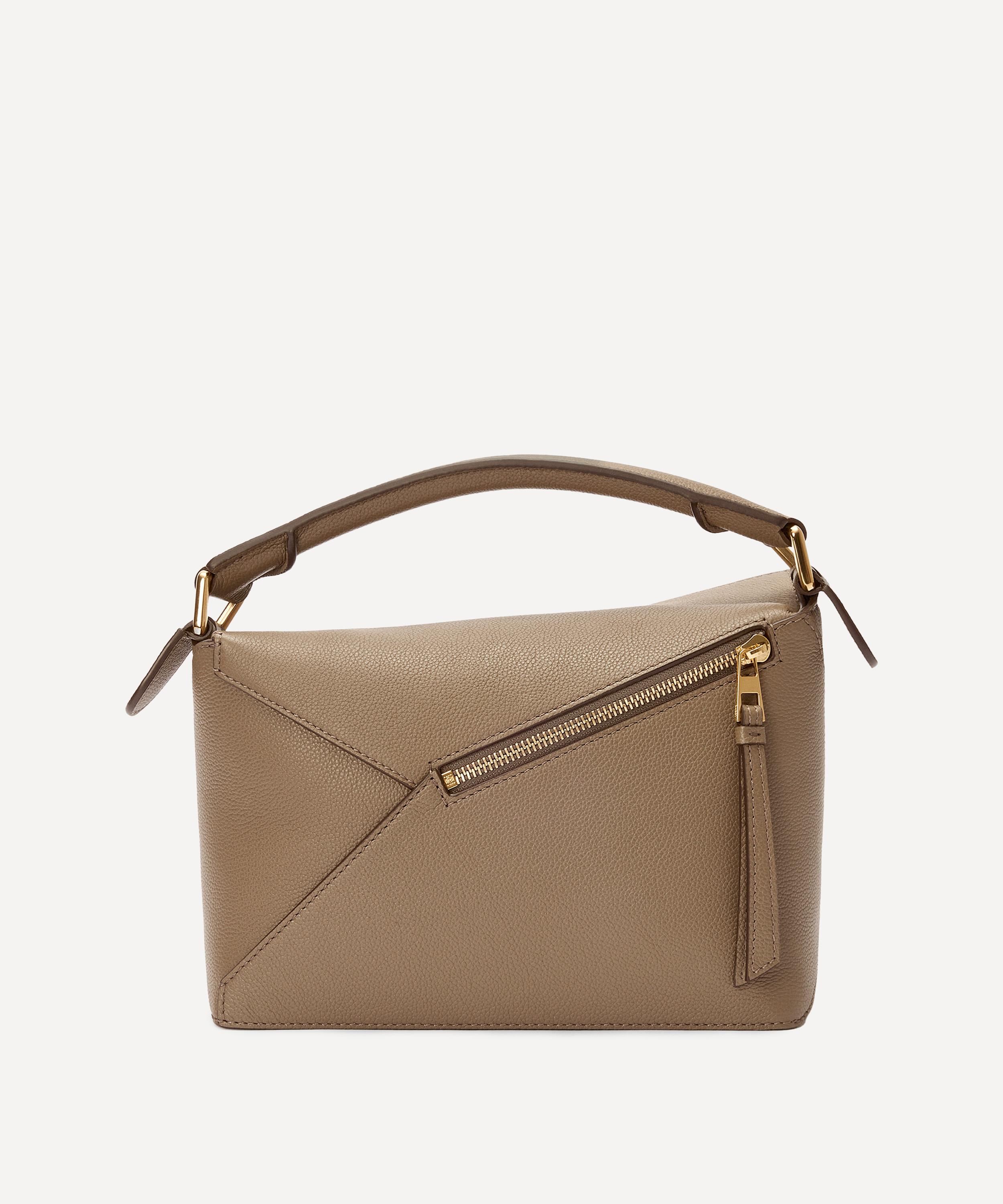 The iconic Puzzle top handle bag from Spanish fashion house Loewe showcases an innovative folding design that can be adapted for any outfit or occasion.