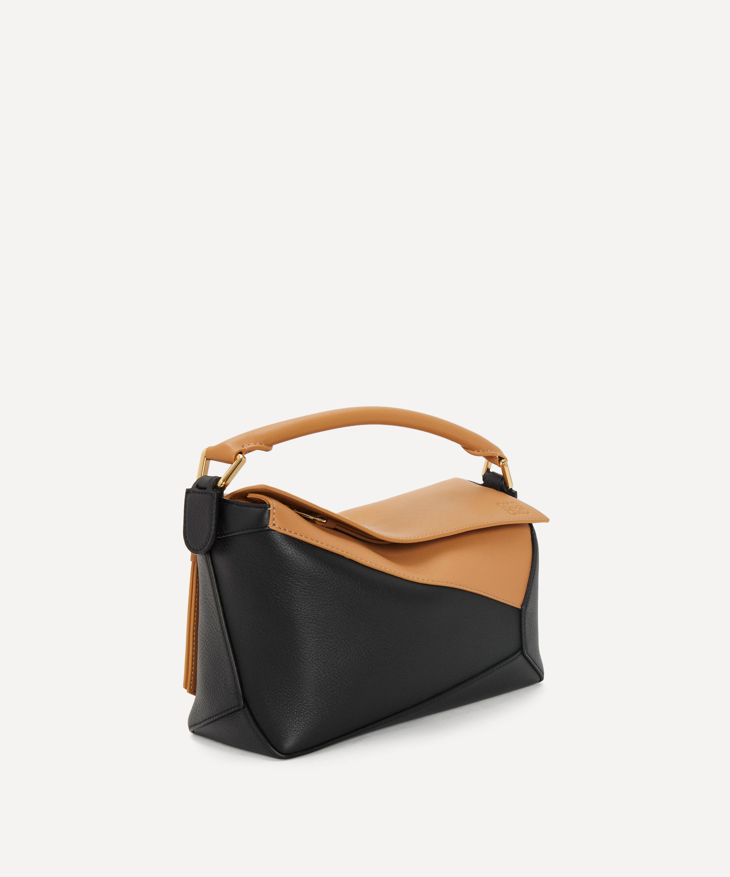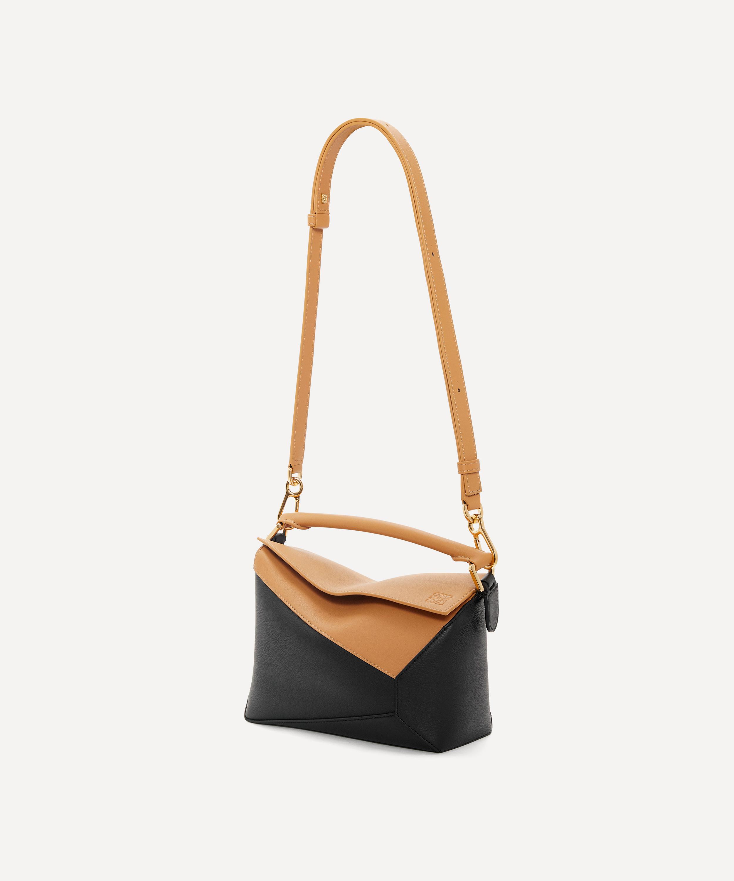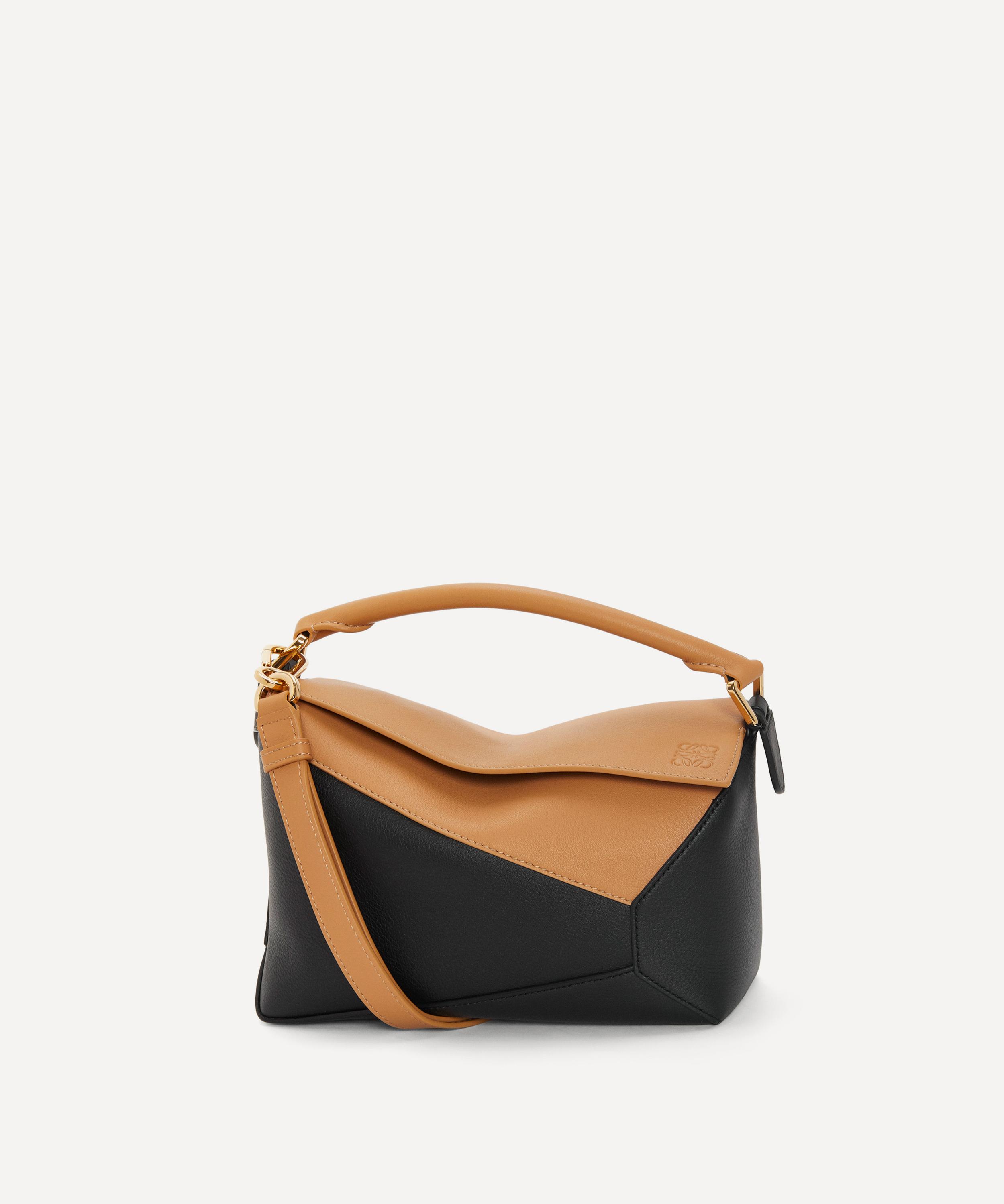 Designed by Jonathan Anderson, the iconic Puzzle shoulder bag from Spanish fashion house Loewe showcases an innovative folding design that can be adapted for any outfit or occasion.