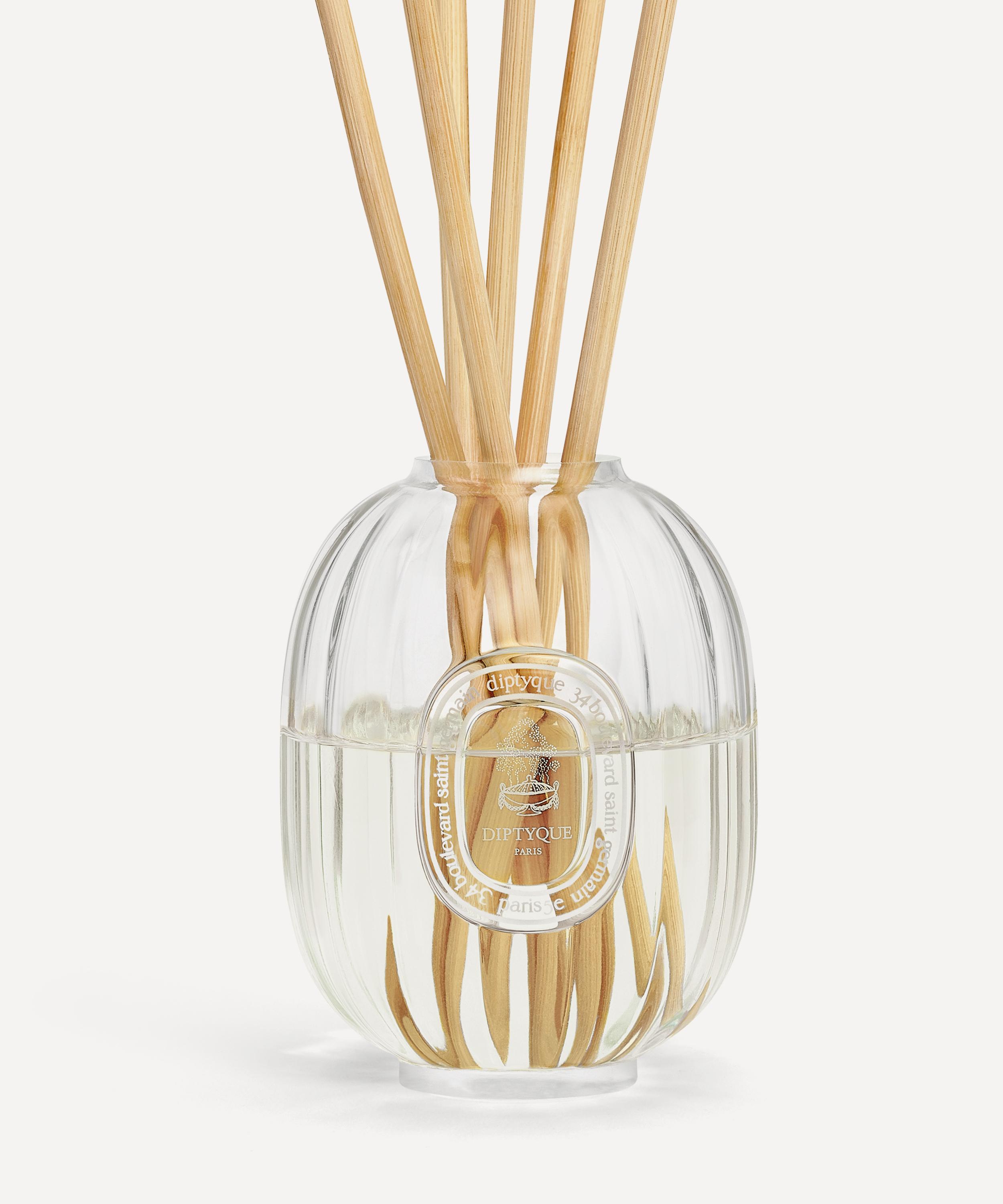 Designed to mimic the French Maison's iconic branding, this infinitely refillable oval vessel has been decorated with the Diptyque signature, framed with emblematic lines that create dancing reflections, bringing the object to life as the fragrance accords fill your home – place on a cabinet, coffee table or mantle to add a refined touch to interiors.