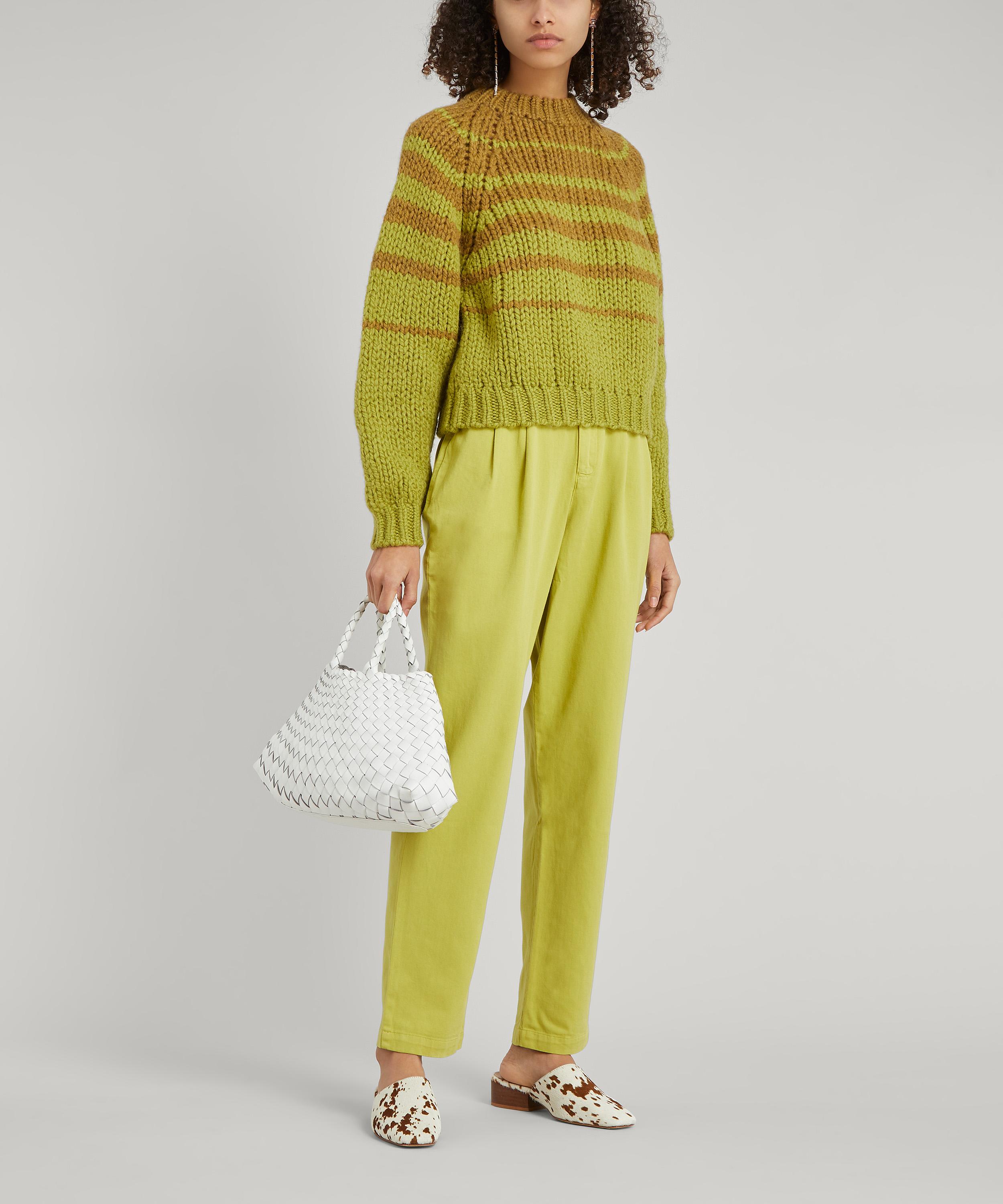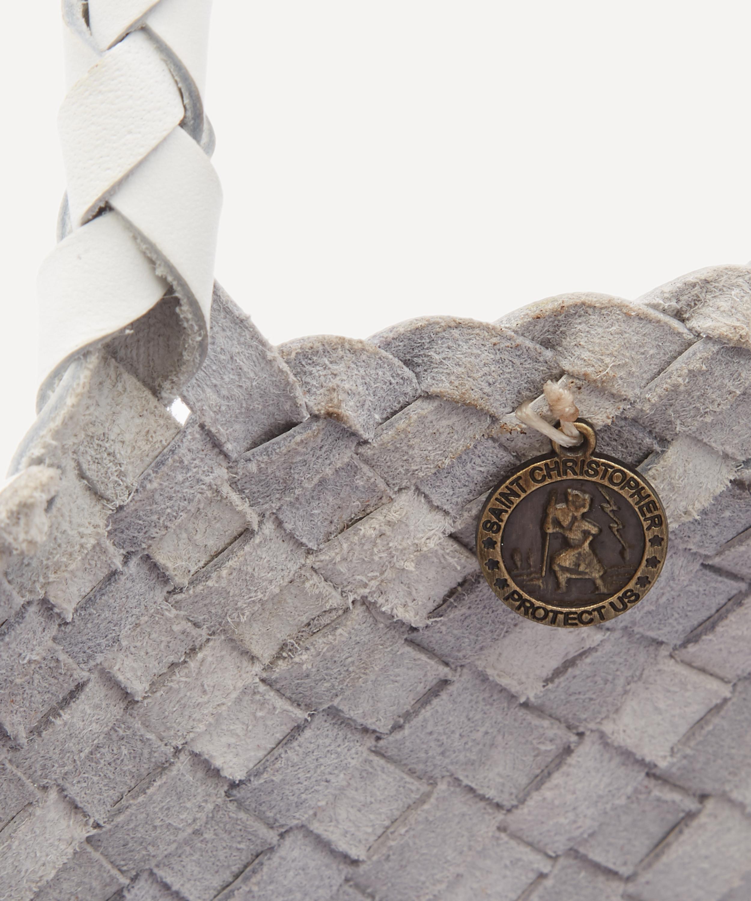 Every Dragon Diffusion accessory is woven from strands of coloured leather by a small team of artisans who create each piece by hand using traditional basket-weaving techniques over a period of several days. This bag takes on a small silhouette with a spacious main compartment and two woven top handles. The perfect pick for avid adventurers, each one is finished with a gold-tone metal charm engraved with the name of Saint Christopher, the patron saint of travellers, as a small token for safe travels.