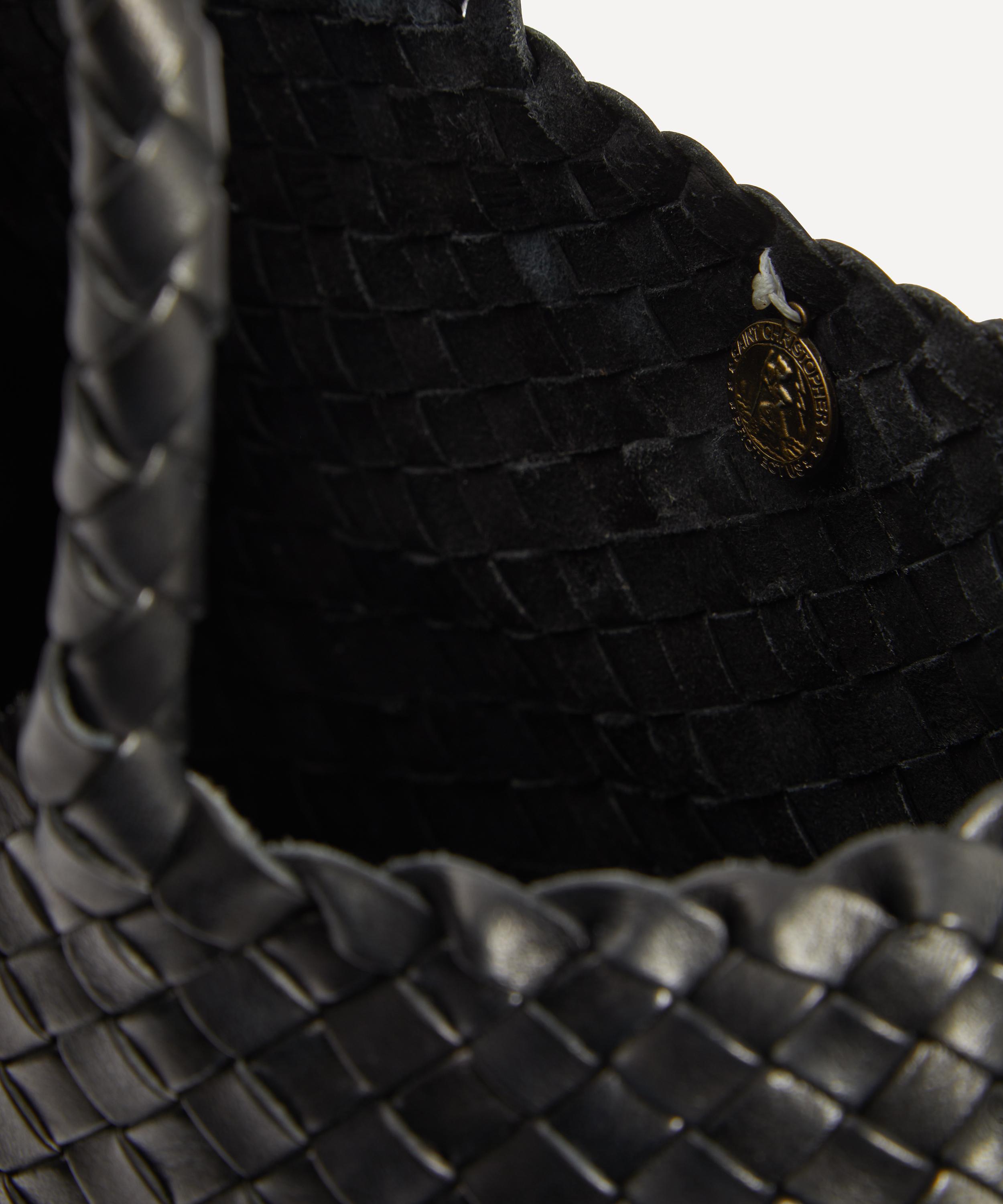 Every Dragon Diffusion accessory is woven from strands of coloured leather by a small team of artisans who create each piece by hand using traditional basket-weaving techniques over a period of several days. This bag takes on a small silhouette with a spacious main compartment and two woven top handles. The perfect pick for avid adventurers, each one is finished with a gold-tone metal charm engraved with the name of Saint Christopher, the patron saint of travellers, as a small token for safe travels.