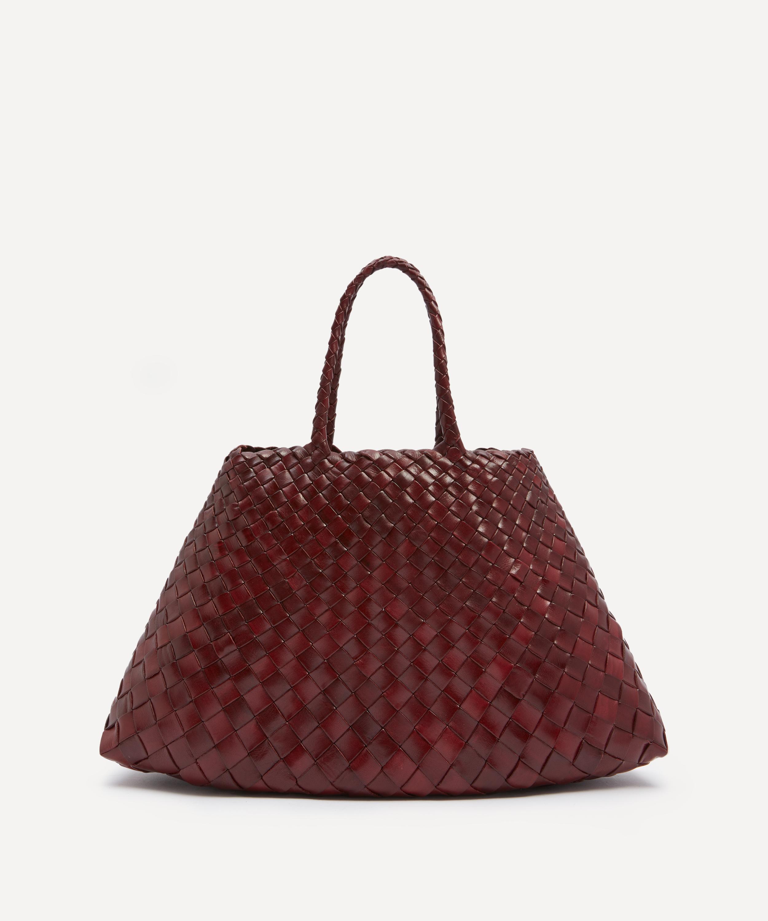 This small Santa Croce tote bag from Brussels-based brand Dragon Diffusion showcases the label's signature woven leather construction.